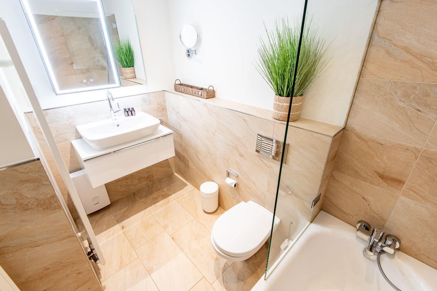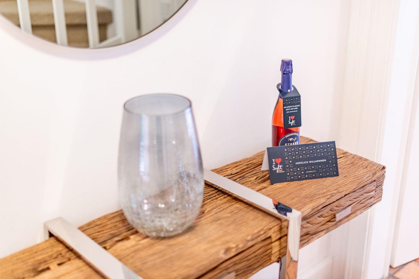 Zwei hochwertig ausgestattete Badezimmer, beide mit Dusche, WC und Fön, sowie eines zusätzlich mit Badewanne, sorgen für höchsten Komfort. Ein Gäste-WC bietet zusätzliche Bequemlichkeit. Nach einem langen Tag auf Sylt lädt die hauseigene Sauna im Wellnessbereich zum Entspannen und Erholen ein.