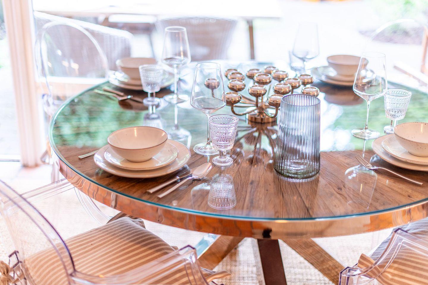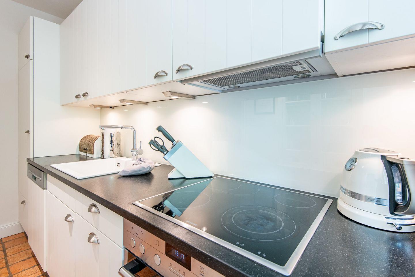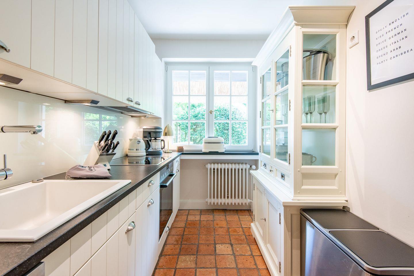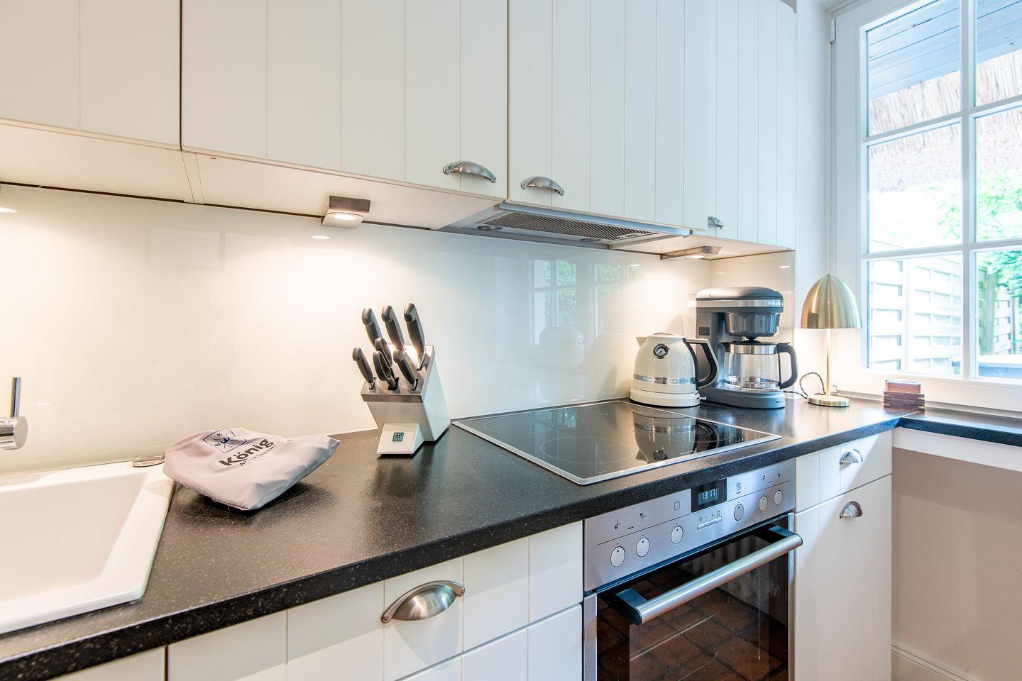 Die moderne, voll ausgestattete Küche ist ein Highlight des Hauses und bietet alles, was Sie zur Zubereitung köstlicher Mahlzeiten benötigen. Dank der hochwertigen Ausstattung wird das Kochen zu einem echten Vergnügen. Der angrenzende Essbereich bietet Platz für gesellige Runden.