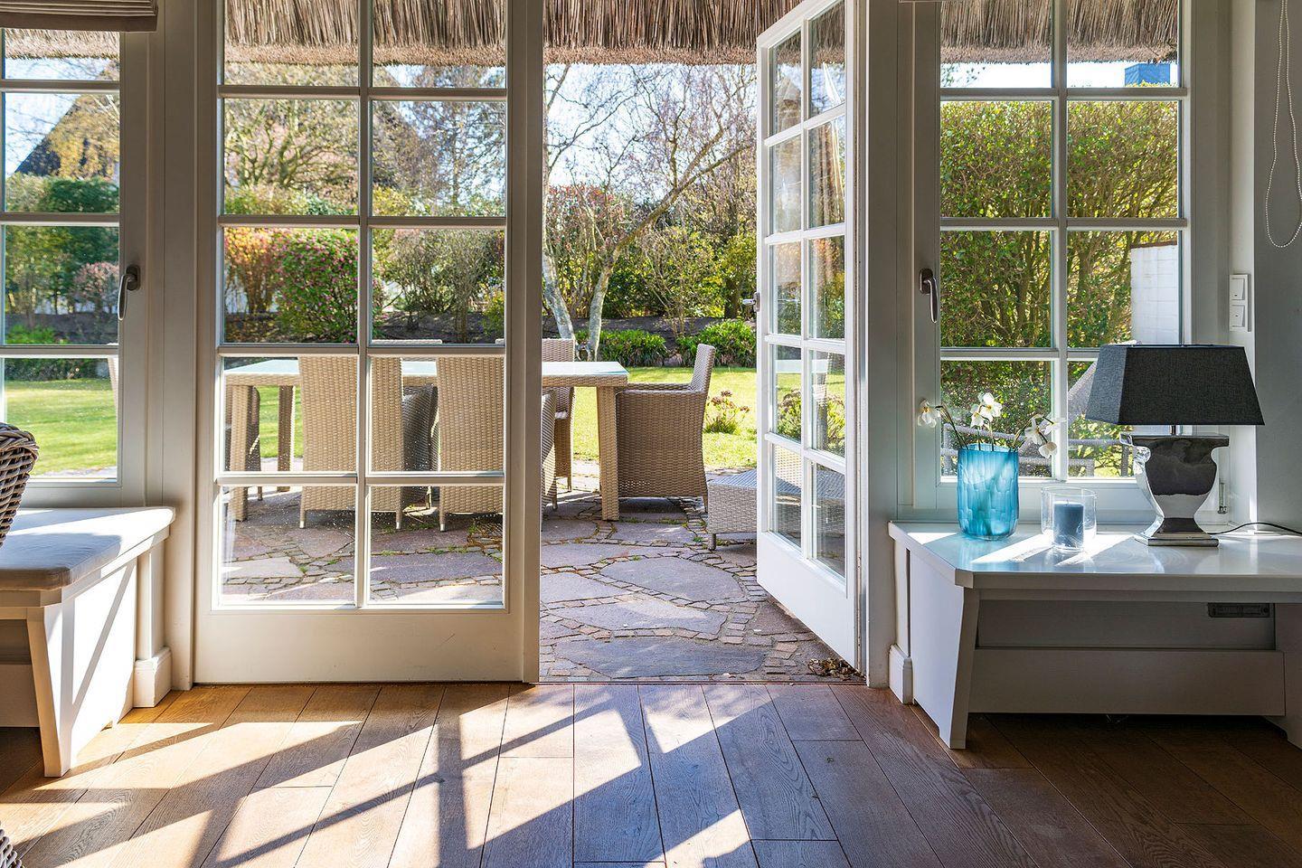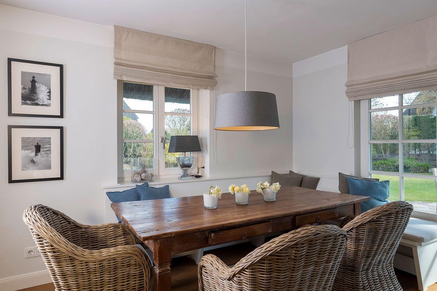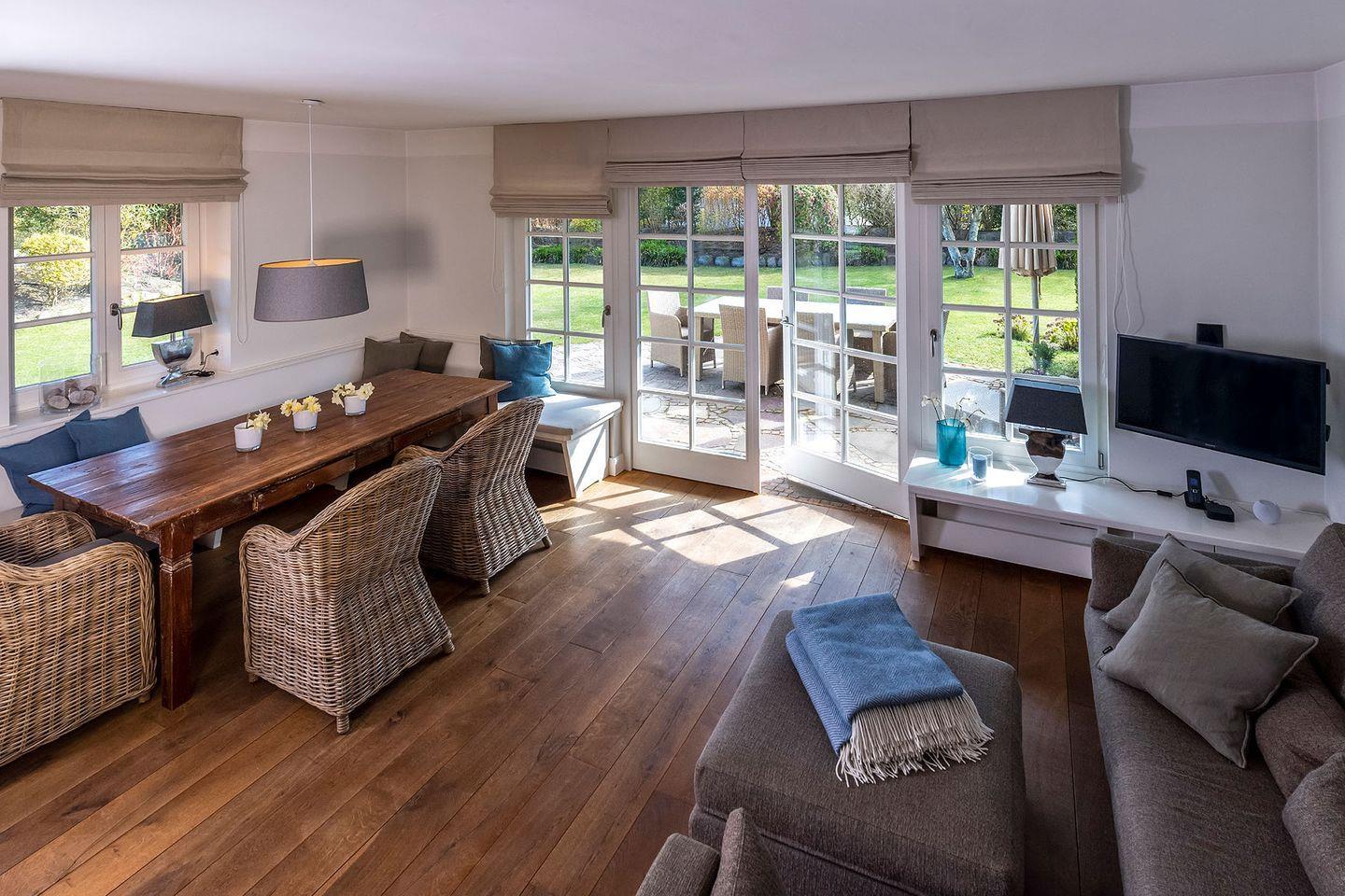 Das exklusive 5-Sterne Ferien Domizil im Benendikenwai 7 in Keitum erstreckt sich über zwei Ebenen und bietet auf 100 m² in moderner Ausstattung viel Platz für maximal vier Personen. Das helle und offene Wohnzimmer mit Essplatz am Kamin als Mittelpunkt sowie die moderne Küche vermitteln ein Gefühl anspruchsvollen und zeitgemäßen Wohnens. Die Köche des Hauses müssen sich ebenso wenig der Gemeinschaft entziehen, wie die am alten Esstisch im Gespräch oder im Spiel vertieften Gäste. Der offene Raum schafft Verbindung. Das Domizil liegt in unmittelbarer Nähe des BENEN-DIKEN-HOF und begeistert unter anderem durch seinen großzügigen Wohnbereich. Die nach Südosten ausgerichtete Terrasse erweitert den Wohnbereich zu den Sonnenplätzen im Garten. Geschmackvolle Gartenmöbel auf der in Naturstein ausgeführten Terrasse laden zum Genießen und Entspannen ein. Gäste, die die Angebote des Hotels – wie die Nutzung des Wellness-Bereiches, der Massagen und der Beauty – intensiver buchen möchten, haben von hier aus eine gute Anbindung zur Hotelanlage.