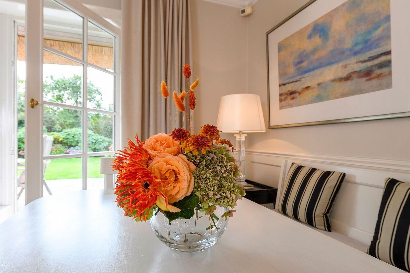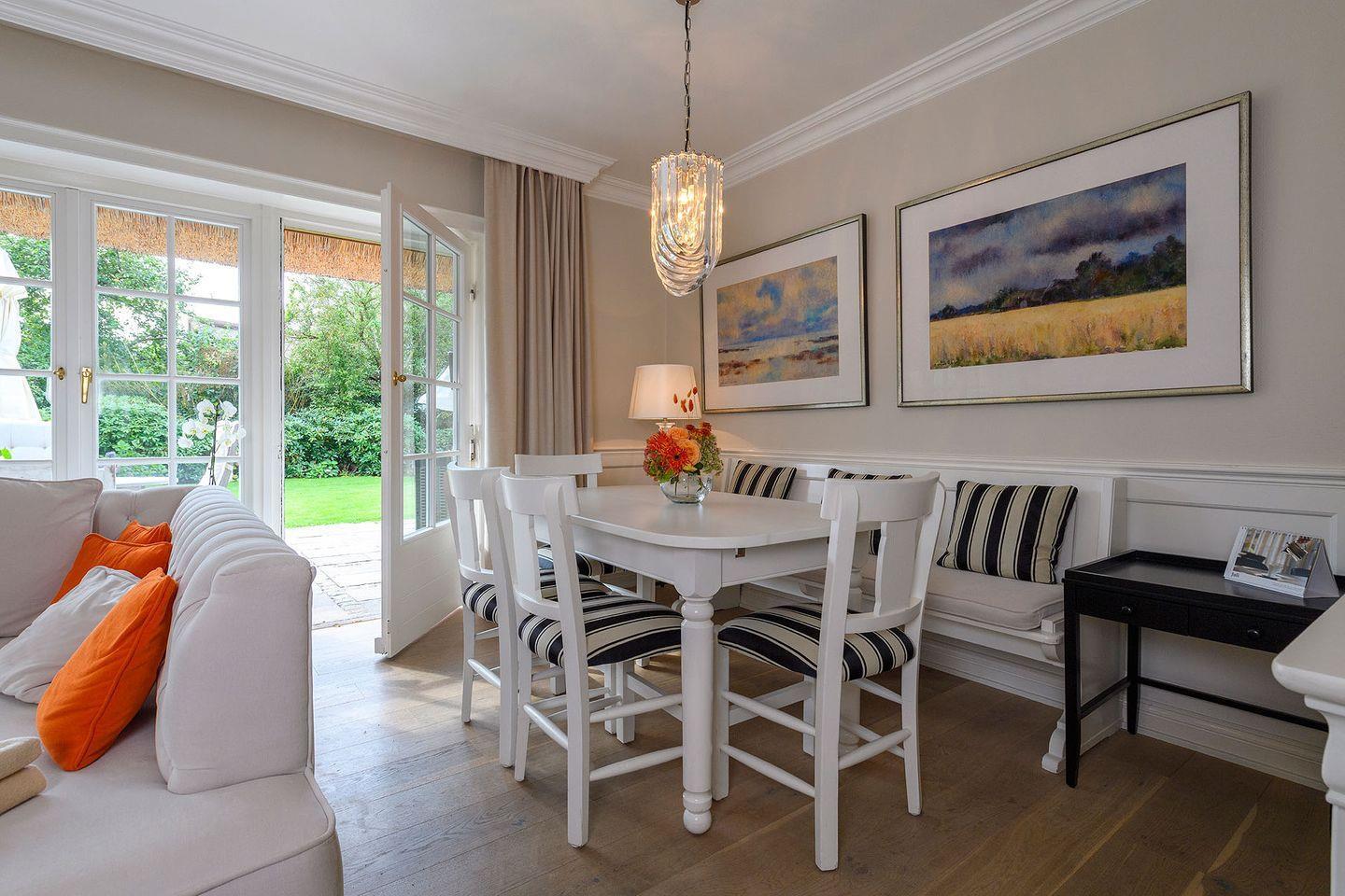 Das exklusive 4-Sterne Ferien Domizil im Gaat 26 in Keitum gehört seit Frühjahr 2014 zum Portfolio des Benen-Diken-Hofs. Es bietet anspruchsvolle Gemütlichkeit gepaart mit französischem Flair. Maximal drei Personen finden auf zwei Ebenen und 115 m² ausreichend Platz. Beigetöne in vielen Varianten, Hellblau und Rot – das sind die Farben der Wohnräume. Alles fügt sich wunderbar zusammen und lässt ein sehr angenehmes und entspanntes Wohnambiente entstehen. Das helle und offene Wohnzimmer mit großem Essplatz und Kamin öffnet sich zu der in Naturstein ausgeführten Terrasse. Der große, eingewachsene Garten lädt in aller Ruhe zum Träumen und Entspannen ein. Der hintere Teil des Gartens ist geprägt durch herrlich alten Baumbestand und bietet im Frühling und Sommer schöne Schattenplätze zum Verweilen. Das Gefühl von französischer Lebensart in Keitum entsteht spätestens am Abend, wenn man sich vor dem lodernden Kaminfeuer die schönsten Geschichten des Tages auf Sylt erzählt. Für alle Gäste stehen vor Ort zwei Golf-Bags mit einer Grundausstattung an Schlägern und Bällen bereit. Auf den vier unterschiedlichen Sylter Golfplätzen ist für jeden Anspruch gesorgt, denn auch Nicht-Mitglieder können hier ihr Handicap verbessern oder an einem Schnupperkurs teilnehmen. Dank den Kooperationsverträgen mit dem Marine-Golf-Club sowie dem Golf-Club Sylt freuen wir uns, unseren Gästen Vergünstigungen ermöglichen zu können.