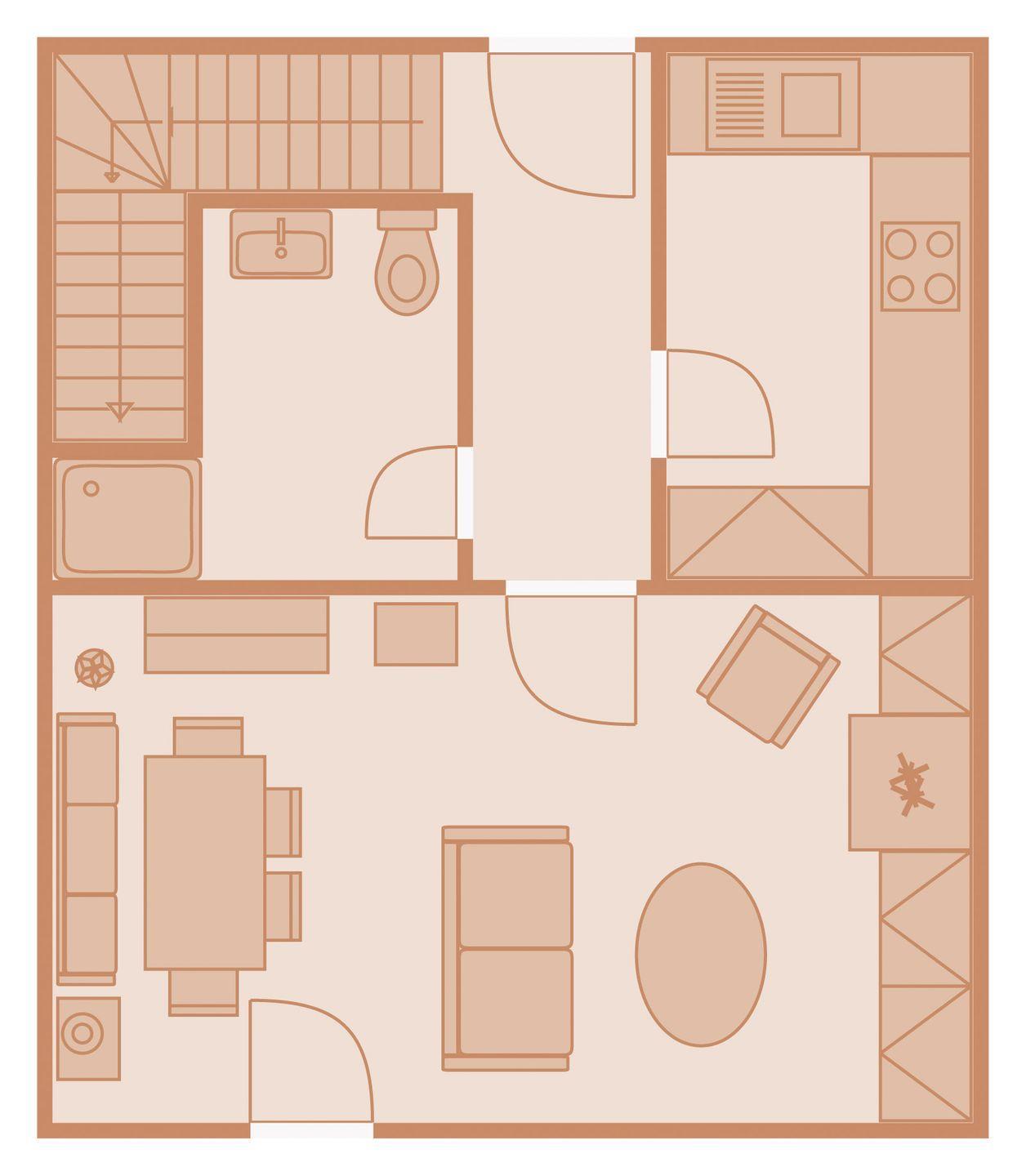 Das Ferien Domizil im Gaat 26 (ca. 115 m²) geht über zwei Etagen mit folgender Aufteilung: