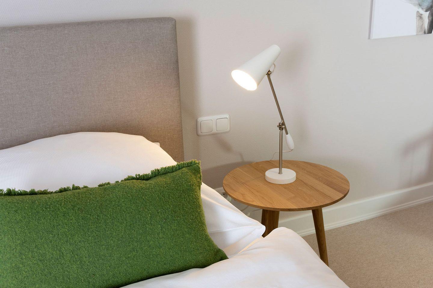 Das Ferien Domizil »Leichte Brise« befindet sich im Erdgeschoss des Groot's Hu¨s und bietet fu¨r maximal vier Personen ausreichend Platz, um gemeinsam auf zwei Ebenen und 112 m² entspannte Urlaubstage zu verbringen. Zwei jeweils an Wohn- und Schlafraum gelegene und nach Su¨den und Osten ausgerichtete Terrassen erweitern den Wohnbereich zum Gemeinschaftsgarten. Die Sonnenplätze sind jeweils mit Gartenmöbeln und Strandkorb ausgestattet.