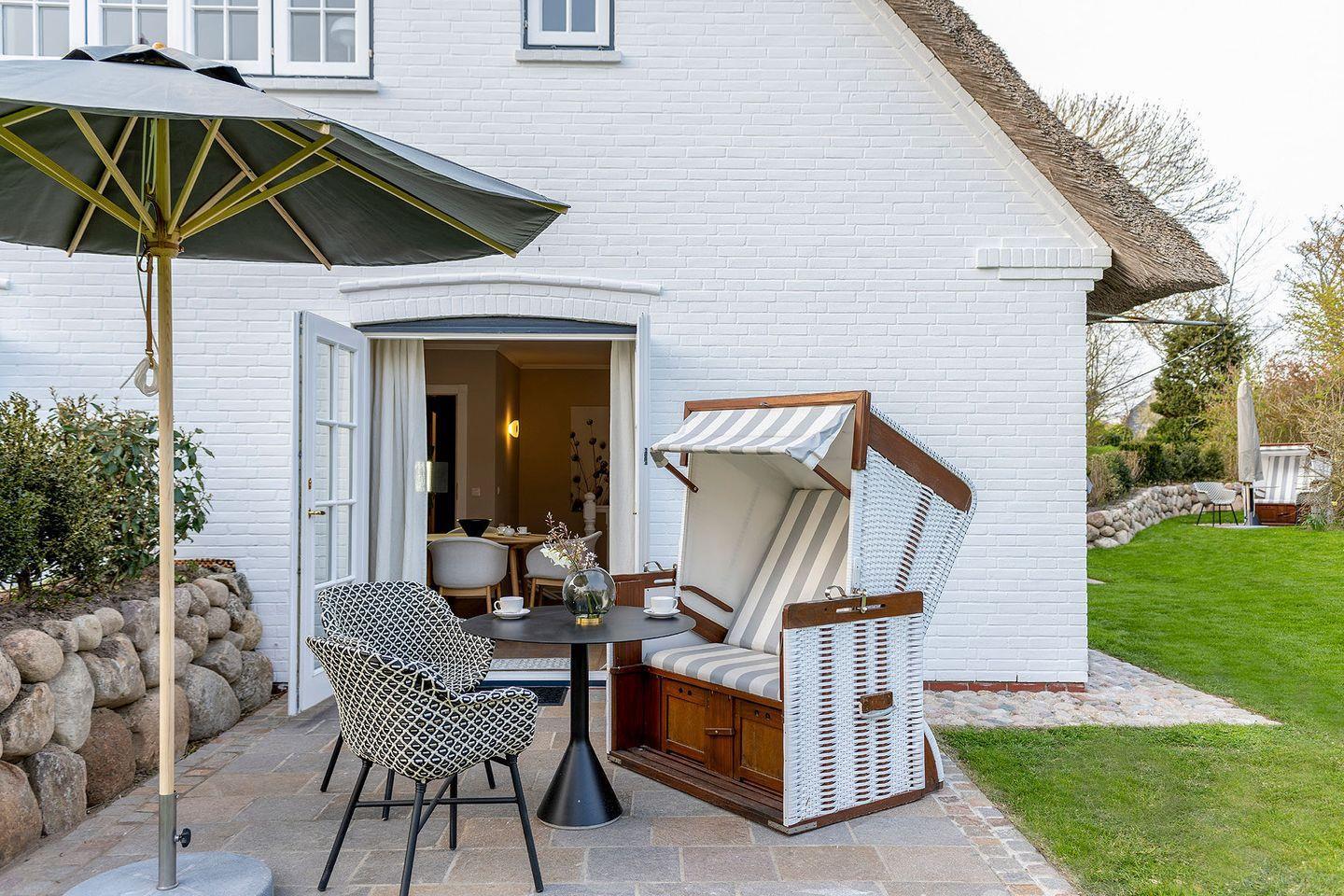 Das Groot's Hu¨s Mitten im Herzen des idyllischen Kapitänsdorfes Keitum, auf einem großen Grundstu¨ck mit altem Baumbestand, befinden sich die im Fru¨hjahr 2021 vollständig renovierten und im »Nordisch-Skandi-Style« eingerichteten Ferien Domizile des Groot's Hu¨s. In unmittelbarer Nähe gibt es eine Vielzahl attraktiver Geschäfte, Boutiquen und Kunsthandwerker. Auf einem Spaziergang durch das schöne Keitum erreicht man die nur 500 m entfernte Wattseite der Insel innerhalb weniger Minuten.