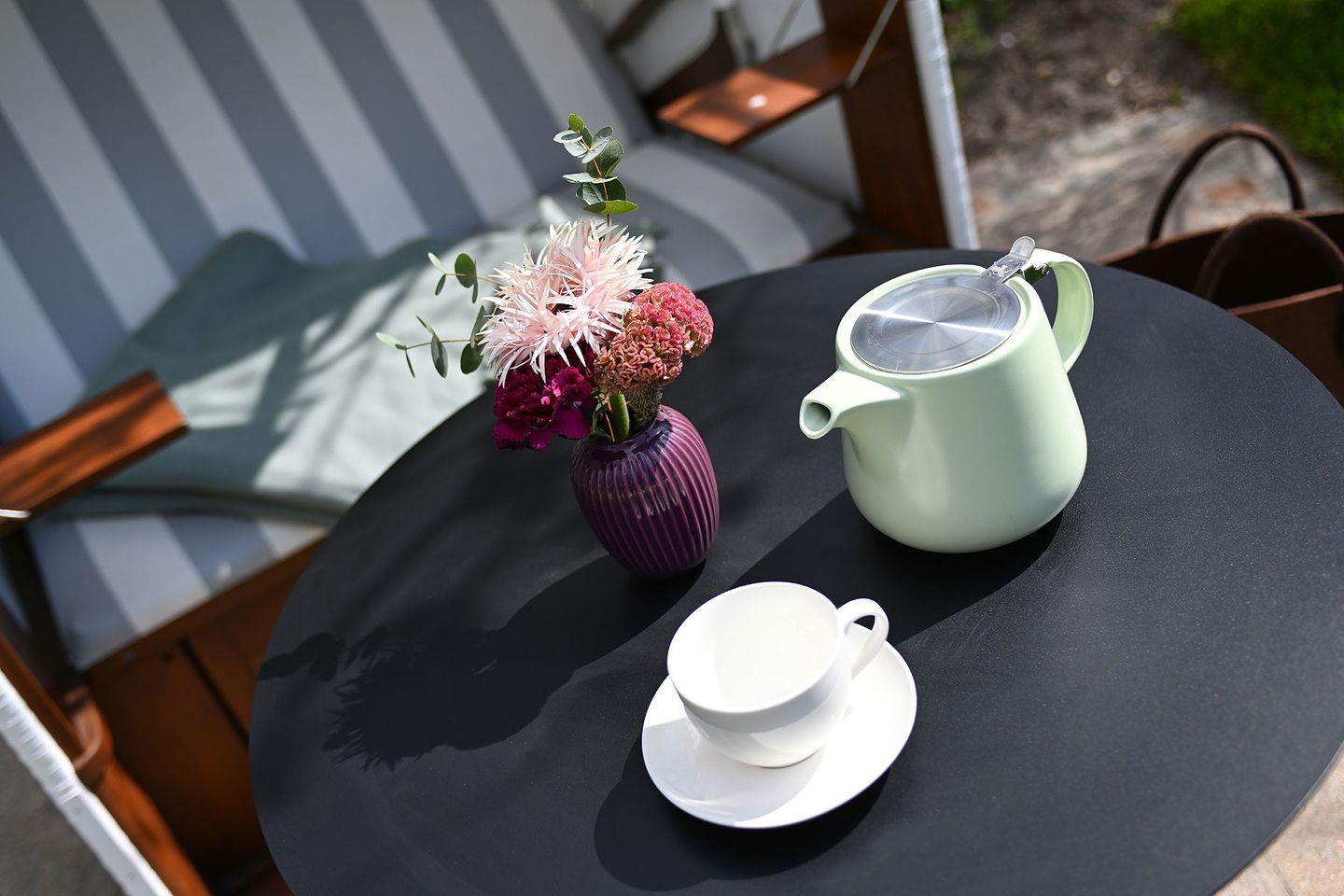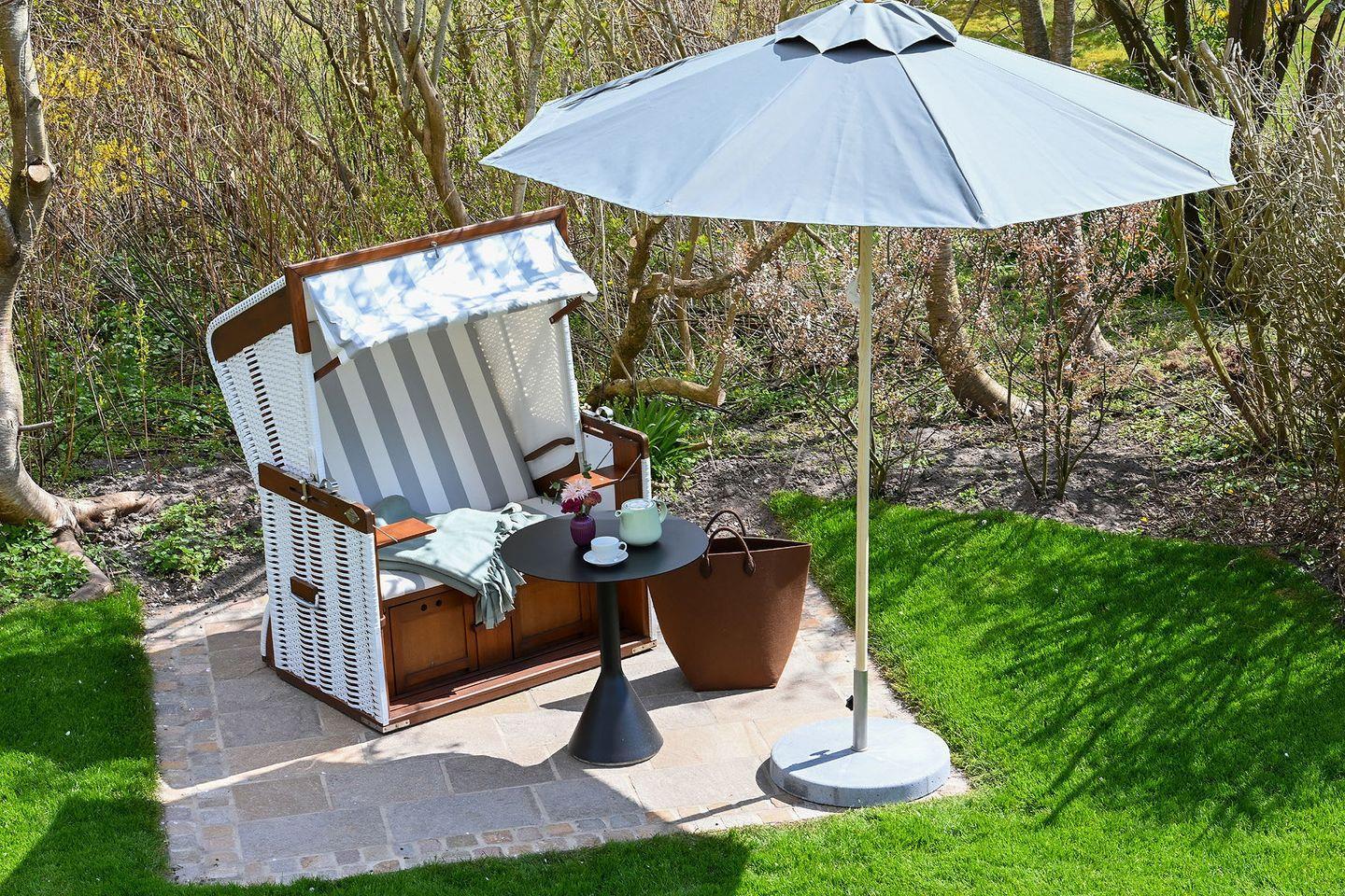 Im Garten steht ein Strandkorb inklusive Gartentisch zur Verfügung (Ostausrichung; April - Oktober).