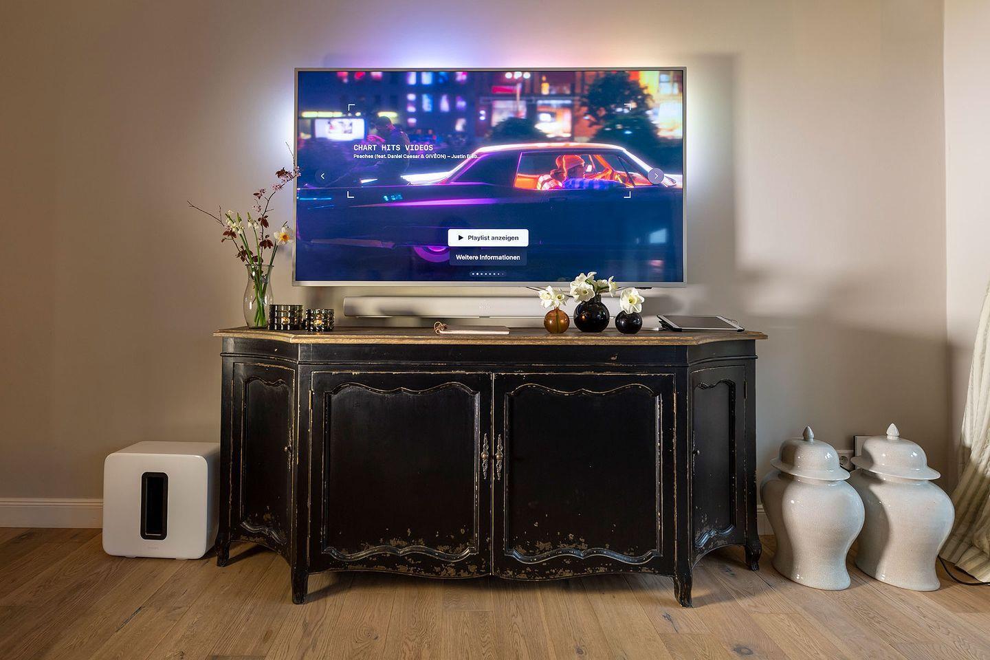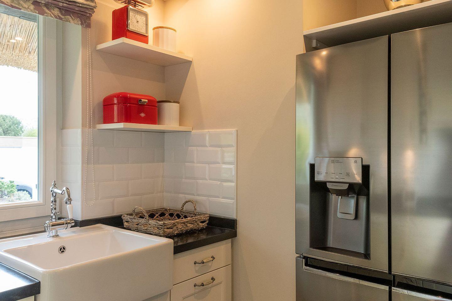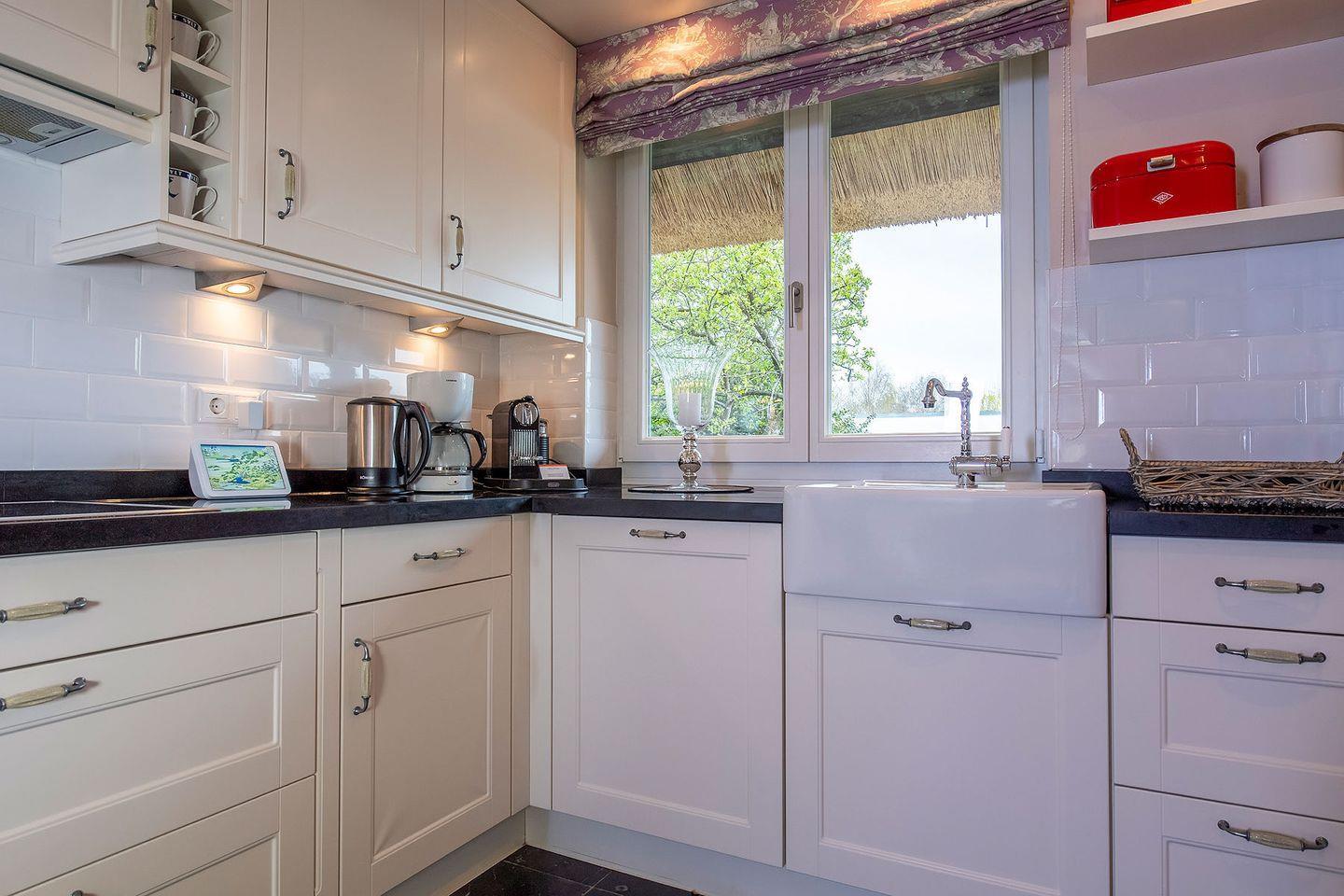 Die sehr umfangreich ausgestattete Ku¨che lässt keine Wu¨nsche offen, sodass gerne aufwendig gekocht und gegrillt werden kann. Der Frenchdoor-Ku¨hlschrank mit Eiswu¨rfel- und Frischwasser-Funktion sorgt dafu¨r, dass auch die Getränke die perfekte Temperatur haben. Ein großer massiver Holzesstisch lädt im maritim anmutenden Ambiente des Wohn- und Esszimmers zu geselliger Tafelrunde ein. Das Ferien Haus wartet mit allerlei technischen Besonderheiten auf. Das Philips Hue Lichtsystem, das u¨ber das hauseigene iPad steuerbar ist, beleuchtet in frei wählbaren Lichtfarben die Terrasse und Bäume im Garten und zaubert eine angenehme Atmosphäre. Fu¨r gute mediale Unterhaltung sorgt das Apple TV mit Sky und Bundesliga, Amazon-Prime und Netflix. Sonos Boxen im Wohn-Essbereich und auf der Terrasse bieten eine hohe Klangqualität und nahezu alle verfu¨gbaren Songs per Streaming fu¨r Musikliebhaber. Das ideale Domizil fu¨r alle Technikfans.