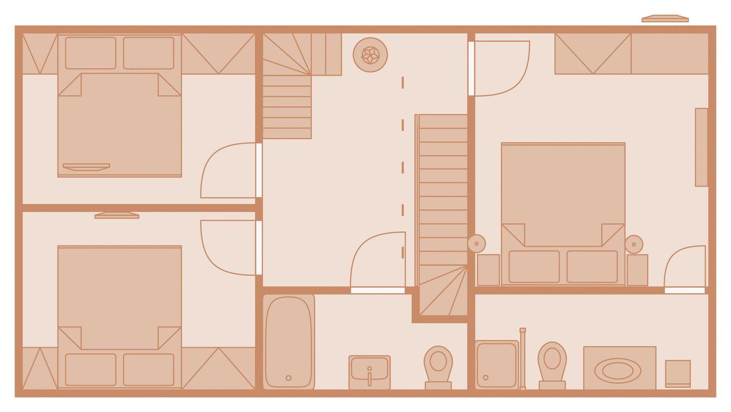 Obergeschoss: 1 Doppelzimmer mit ensuite Badezimmer mit Dusche und TV, 2 Grandlitzimmer mit TV, 1 Badezimmer mit Badewanne und WC