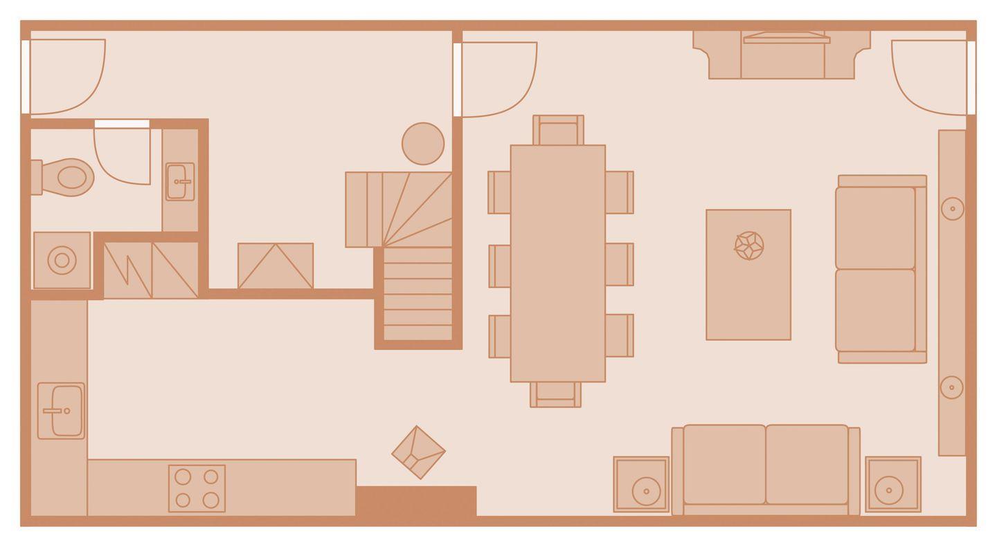 Das Ferien Domizil im Hingstwai 8 (ca. 110 m²) geht über zwei Etagen mit folgender Aufteilung: