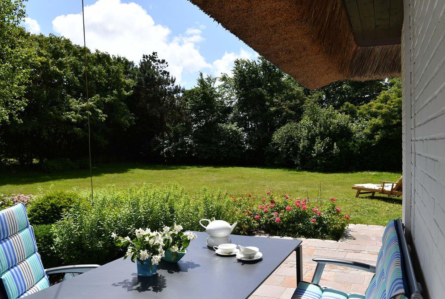 Das exklusive 5-Sterne Ferien Domizil im Lörkiwai 17 garantiert der ganzen Familie mit Hund oder Freunden einen entspannten und erholsamen Urlaub. Stilvoll luxuriös und mit Charme eingerichtete Räumlichkeiten bieten bis zu vier Personen auf 110 m² Wohnraum das perfekte Ambiente, das Leben zu genießen und den Alltag zu vergessen. Für freie Sicht, Tageslicht und Sonnenwärme sorgt eine große Fensterfront. An kalten Tagen verschafft der typisch friesische Kachelofen dem Wohn- und Essbereich eine Wohlfühlwärme und gemütliche Atmosphäre. Die mit Liebe zum Detail eingerichteten Räume sind mit kunstvollen maritimen Accessoires in den natürlichen Farben des Meeres gestaltet bis hin zu zauberhaften Elementen, welche dem Ferien Domizil ein einzigartiges Flair verleihen. Zwei Terrassen bilden den Übergang zwischen dem Wohnbereich und dem großzügig eingewachsenen Garten. Der 950 m² große Garten mit Sonnenliegen und Sylter Strandkorb lädt zum Verweilen und Genießen ein. Auf dem eingezäunten Gelände sind Hunde herzlich willkommen. Sie können sich vollkommen frei, ohne Leine bewegen und die Gegend erkunden. Das luxuriöse Feriendomizil befindet sich in unmittelbarer Nähe zum Benen-Diken-Hof und ist aufgrund seiner Lage ein idealer Ausgangspunkt, um das Kapitänsdorf Keitum und den Rest der Insel zu erkunden.