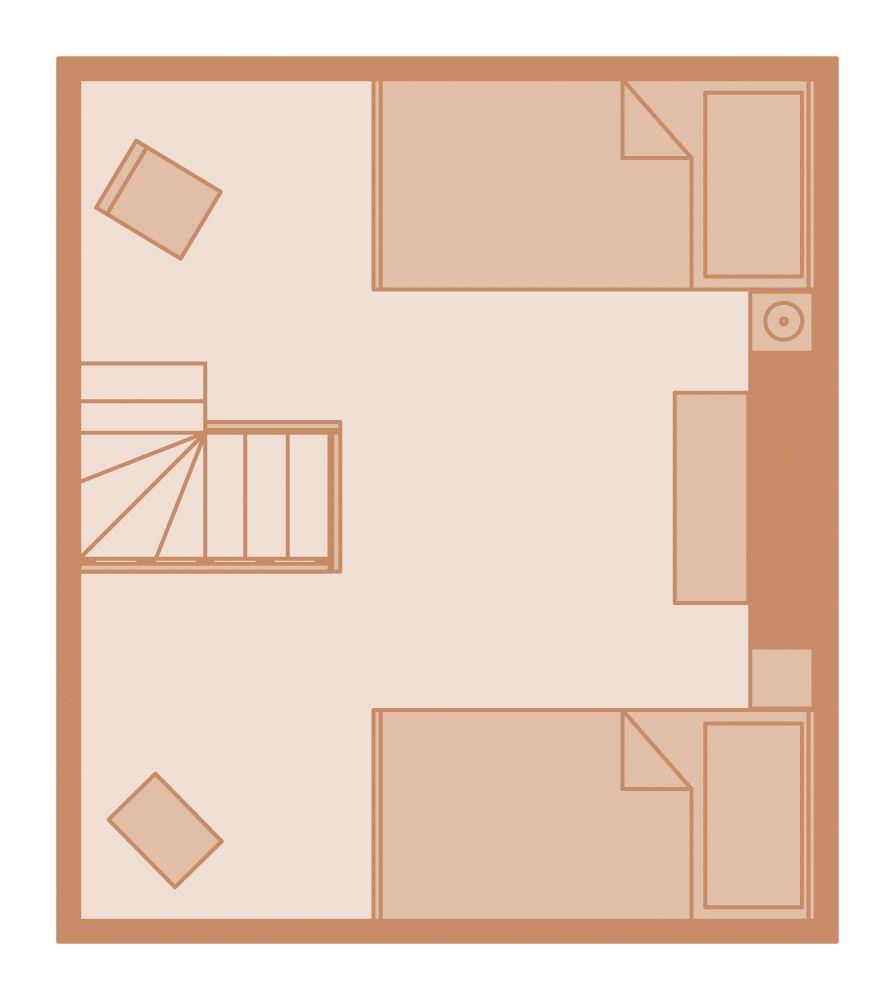 Spitzgiebel: Schlafzimmer mit 2 getrennt stehenden Einzelbetten
