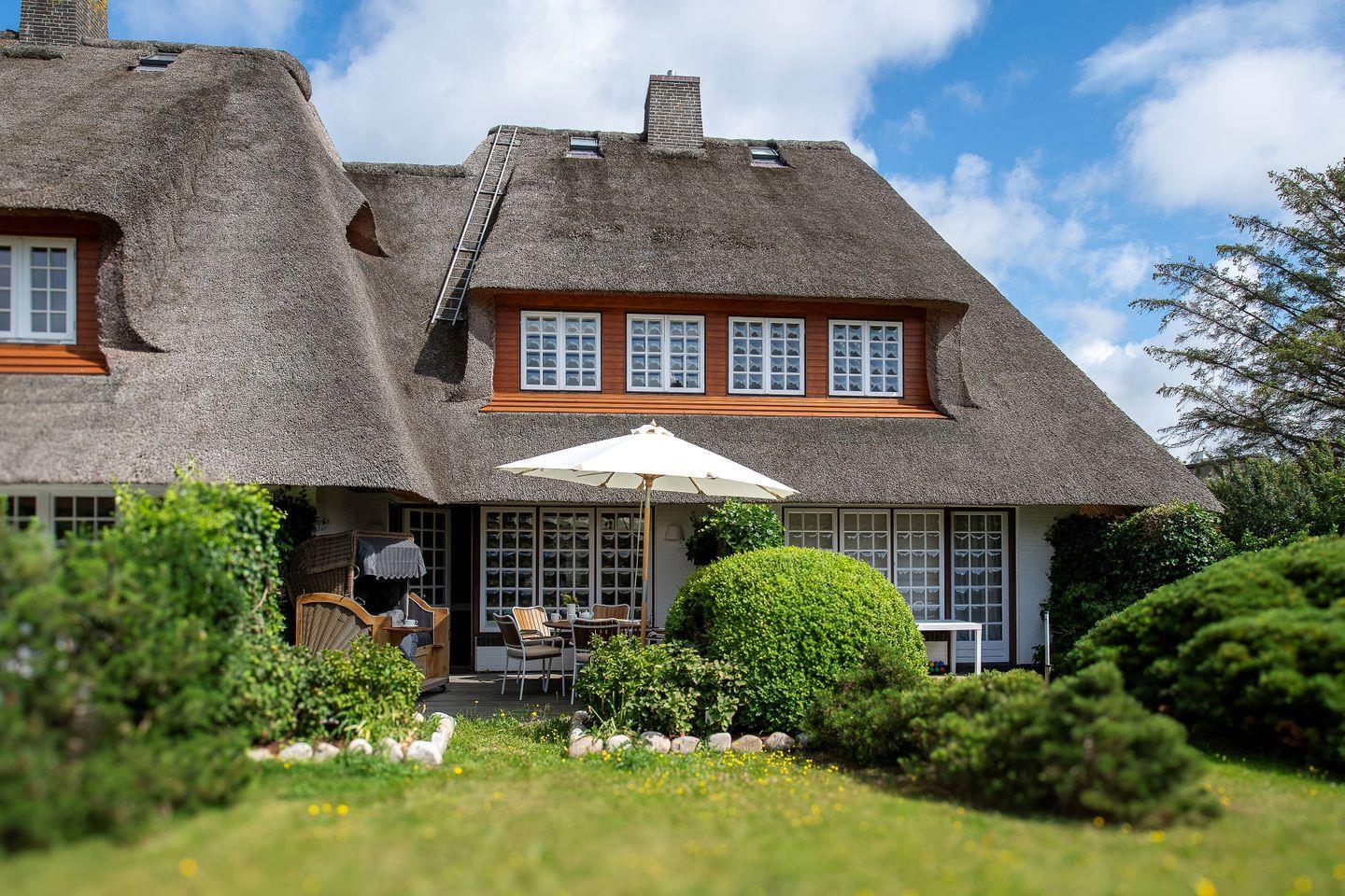 ›Haus Marla‹ – das exklusive Ferien Domizil im Westerhörn 30 in Keitum erstreckt sich über drei Ebenen und bietet auf 106 m² in moderner Ausstattung viel Platz für maximal vier Erwachsene und zwei Kinder. Besonders junge Familien werden sich hier wohlfühlen. Der Dachgiebel bietet mit zwei Einzelbetten einen gemütlichen Schlafbereich für Kinder.