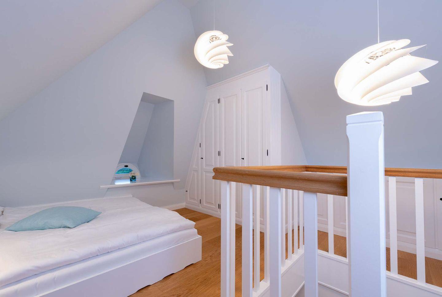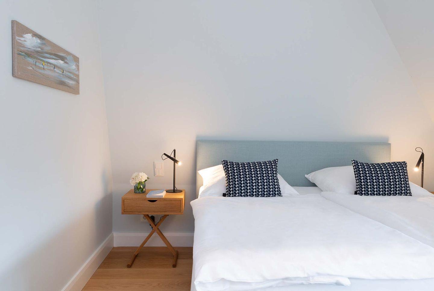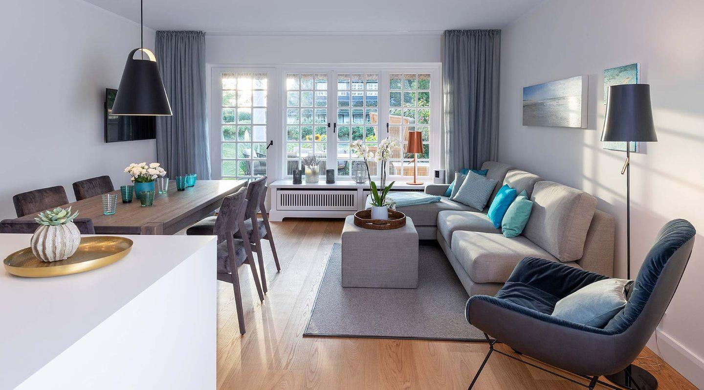 Das exklusive 5-Sterne Ferien Domizil im Westerhörn 16 in Keitum wurde im Sommer 2019 vollständig und hochwertig renoviert und gehört seitdem zum Portfolio des Benen-Diken-Hofs. Es bietet anspruchsvolle Wohnkultur kombiniert mit modernem Badambiente. Vier Personen finden auf drei Ebenen und 105 m² ausreichend Platz. Im sympathischen Ferien-Apartment hat alles seinen Platz. Es bietet mit einem durchdachten Raumsystem viel Platz für seine Bewohner und für Mitgebrachtes. Im offenen Wohn- und Essbereich befindet sich ein großzügiger Esstisch und eine kuschelige Wohnlandschaft. Die offene Küche zeugt von moderner Raumgestaltung und bietet mit ihrer Ausstattung alles für ein gemeinsames Kochvergnügen. An kalten Tagen spendet ein Kachelofen angenehme Wärme. Wände in pastelligen Türkis- und Blautönen verwandeln die Schlafräume in den beiden oberen Etagen in Inseln der Ruhe. Das klare und pure Raumkonzept setzt sich auch hier fort. Die nach Süd-Westen ausgerichtete in Naturstein ausgeführte Terrasse öffnet den Wohnbereich zu den Sonnenplätzen im 200 m² großen Garten. Es ist ein wunderbarer, sonnenbeschienener Rückzugsort mit Gartenmöbeln und Strandkorb. Hier lässt sich die Freiheit, die eines großen Gartens zu eigen ist, finden und intensiv genießen.