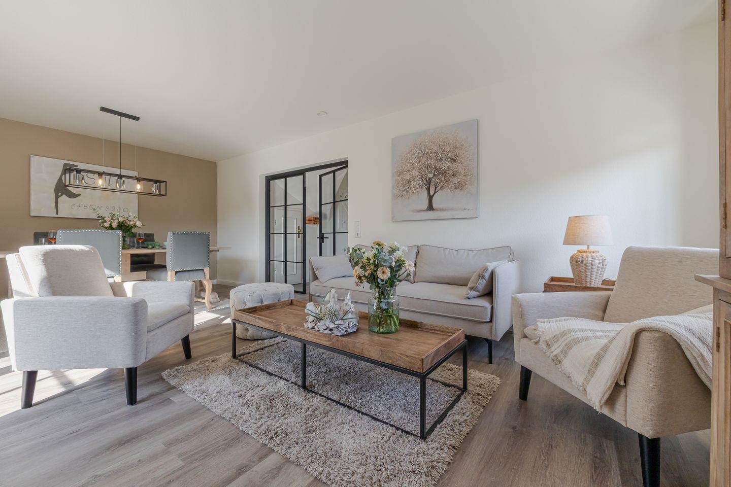 Tauchen Sie ein in die entspannte Atmosphäre unseres liebevoll renovierten "Baileys Hüs" im malerischen Keitum auf Sylt. Diese exklusive Ferienwohnung wurde im Frühjahr 2025 mit viel Liebe zum Detail komplett renoviert und bietet auf 82 m² und zwei Ebenen ausreichend Platz für bis zu 4 Personen. Die offene Raumgestaltung mit warmen Farben und hochwertigen Tischlerarbeiten schafft ein behagliches Ambiente. Zwei komfortable Schlafzimmer mit Boxspringbetten (180x200 cm und 160x200 cm) und Fliegengittern sorgen für erholsame Nächte. Der großzügige Wohnbereich mit gemütlichem Sofa und einem 50-Zoll-TV lädt zum Entspannen ein. Für gemeinsame Mahlzeiten steht ein großer Esstisch bereit, und die moderne, offene Küche ist bestens ausgestattet – inklusive Nespresso-Maschine, Siemens-Geräten und allem, was das Herz eines Hobbykochs begehrt.