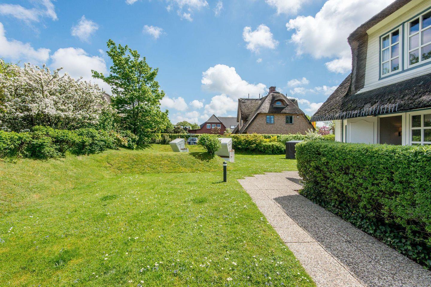 Die Wohnung liegt in unmittelbarer Nähe zum Keitumer Wattenmeer, nur wenige Minuten von Einkaufsmöglichkeiten und einem Bäcker entfernt. Die charmante Umgebung lädt zu Erkundungstouren durch das grüne Keitum ein, wo Sie traditionelle Reetdachhäuser, kleine Cafés und Boutiquen entdecken können.