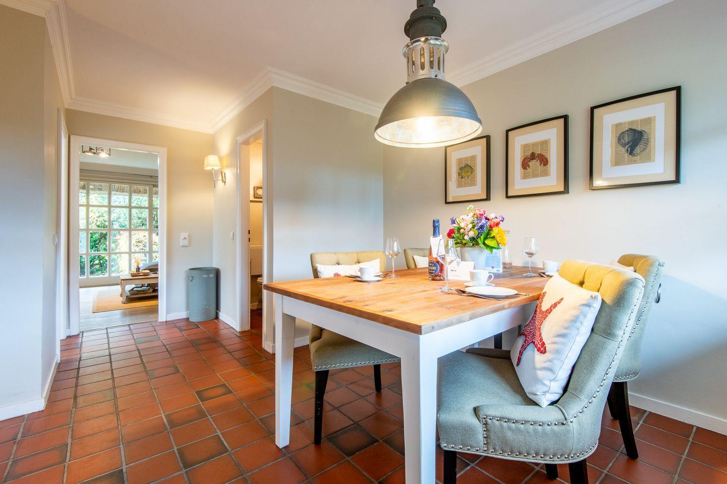 In der separaten, modernen Küche finden Sie alles, was Sie zum Zubereiten kulinarischer Köstlichkeiten benötigen. Mit Cerankochfeld, Geschirrspüler, Backofen und Nespresso-Maschine steht Ihnen hier jede Ausstattung zur Verfügung. Der angrenzende Essbereich mit einem großen Esstisch bietet Platz für gemeinsame Mahlzeiten und gesellige Stunden.