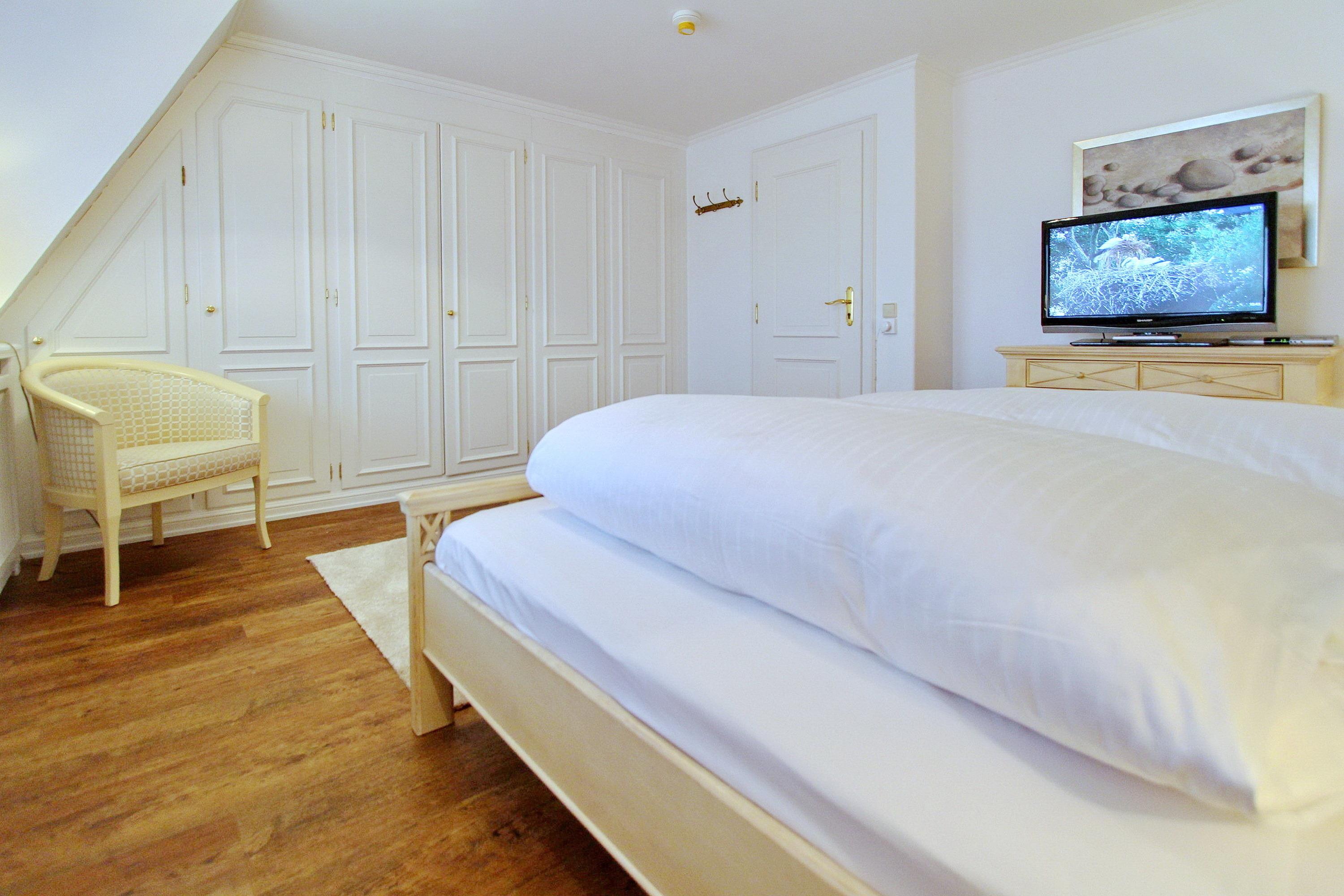 großer Schlafraum mit einem Doppelbett ( 2 Matratzen á 200 cm * 90 cm) und Flat-TV
