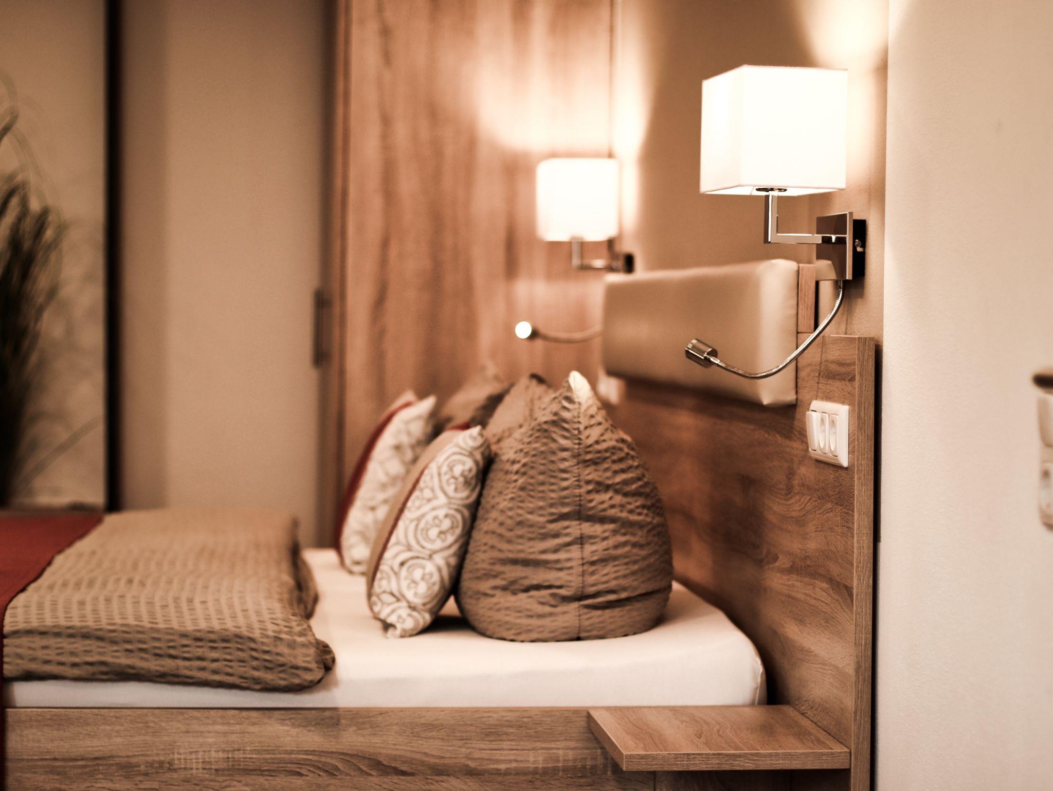Zweibettzimmer ca. 13 m², bietet Platz für 1- 2 Personen. Das Zimmer hat zwei auseinander stehende Betten, Kühlschrank, einen kleinen Schreibtisch mit Stühlen, sowie ein Flachbild-TV und WLAN. Bettwäsche, Fön sowie Handtücher vorhanden.