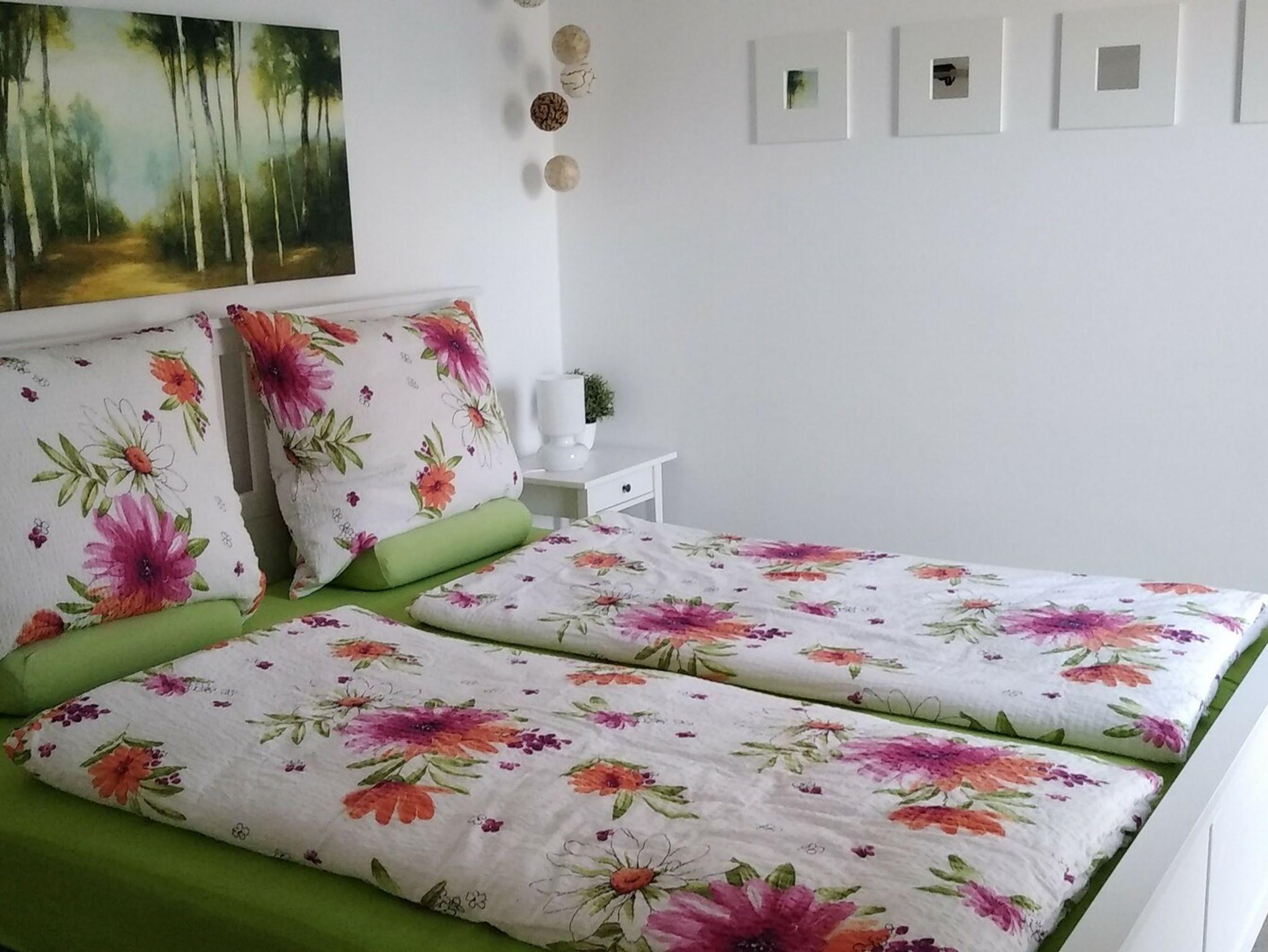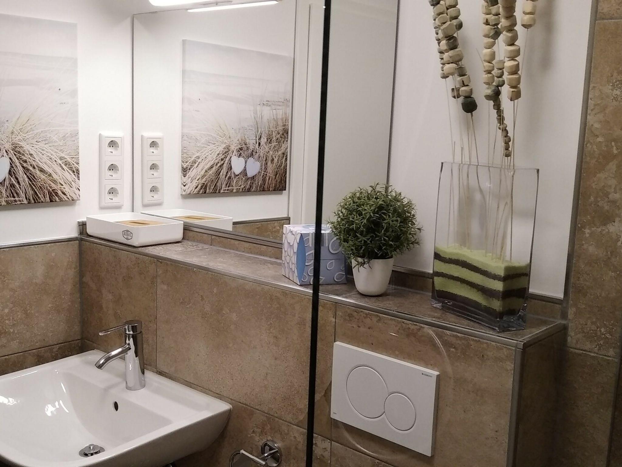 Auf Sie wartete eine neugebaute, barrierefreie Feriennwohnung mit 40m² Wohnfläche im Erdgeschoss mit Platz für 1-2 Personen, sie verfügt über einen separaten Eingang. Das gemütliche Wohnzimmer mit Couch und Ohrensessel mit Fußhocker lädt zum Verweilen ein. Die komplett ausgestattete Einbauüche mit Kühlschrank (***Sterne Kühlfach), Backofen, Cerankochfeld, Spülmaschine, Mikrowelle, Kaffeemaschine, Toaster, Wasserkocher, Stabmixer, Eierkocher und Handmixer lässt keine Wünsche offen. Die Ferienwohnung verfügt über ein Schlafzimmer mit einem Doppelbett und einem Zimmersafe. Das moderne Badezimmer mit Fußbodenheizung, Regenfalldusche, Waschbecken, WC, und Fön rundet das Gesamtbild ab.