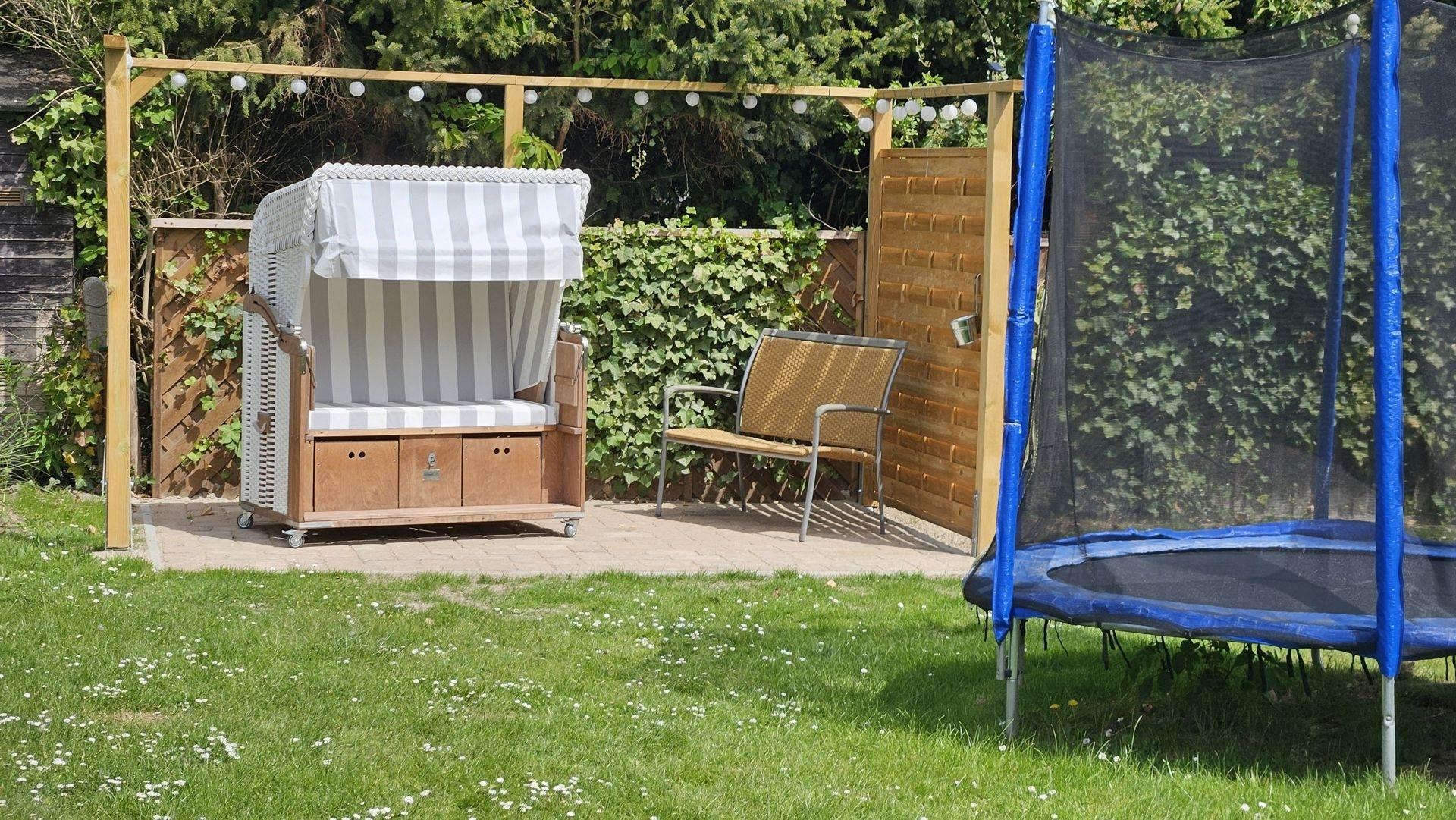 Trampolin im Gemeinschaftsgarten, Bollerwagen, Schaukel im Garten, Lego und Gesellschaftsspiele, Strand-Spielsachen, Fußballtor im Garten
