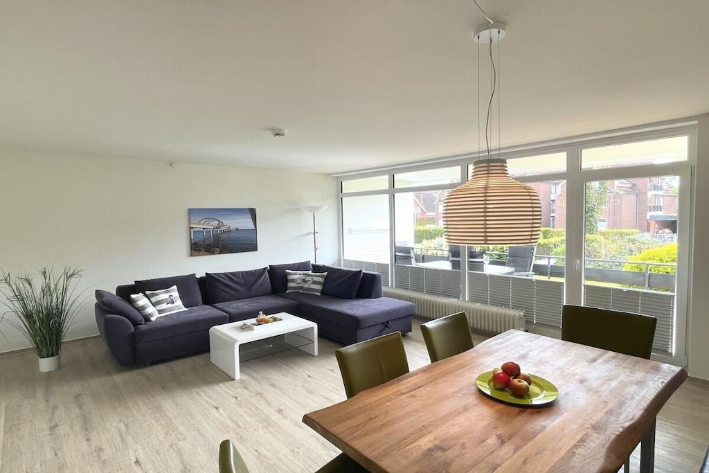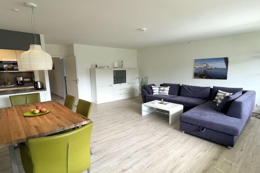 Unsere Ferienwohnung in Kellenhusen ist mit 72qm und 2,5 Zimmern perfekt ausgestattet für maximal 5 Personen. Das Elternschlafzimmer hat ein Boxspringbett (1,80×2,00m) und einen geräumigen Kleiderschrank. Das Kinderzimmer hat ein Doppelstockbett mit einer Liegefläche von 1,40×2,00m (unten) und einer Liegefläche von 1,00×2,00m (oben) und eine kleine Kommode. Beide Schlafzimmer sind mit Fliegen- bzw. Mückenschutz und Rolläden ausgestattet. Im Wohnzimmer gibt es ein gemütliches Sofa und einen 65-Zoll Fernseher sowie eine großzügige Essecke mit offener Küche. Diese bietet alles was für einen erholsamen Urlaub gebraucht wird: Kühlschrank mit Eisfach, Spülmaschine, Herd und einen kleinen Backofen, Kaffeemaschine, Wasserkocher, Toaster und Geschirr. Außerdem gibt es einen großen Balkon mit Süd-West-Ausrichtung. Im Badezimmer gibt es eine bodentiefe Dusche sowie ein WC und einen Handtuchheizkörper. Waschmaschine und Trockner stehen im Keller gegen Gebühr zur Verfügung Die Wohnung verfügt über einen PKW Stellplatz.