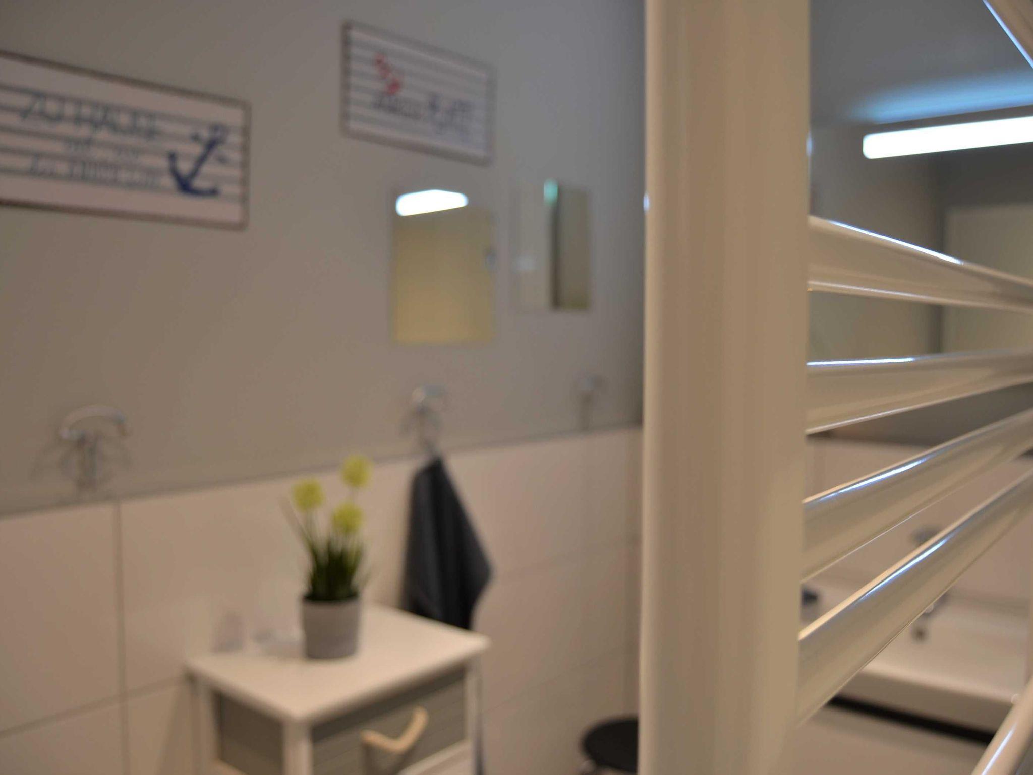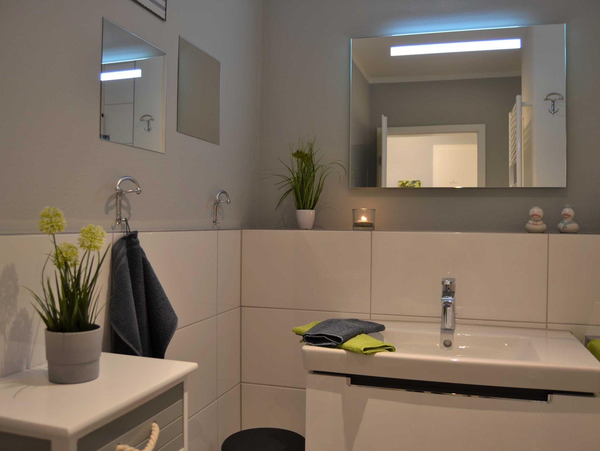 Besonders im Badezimmer weiß der Gast, die sich in der gesamten Wohnung befindende Fußbodenheizung zu schätzen.