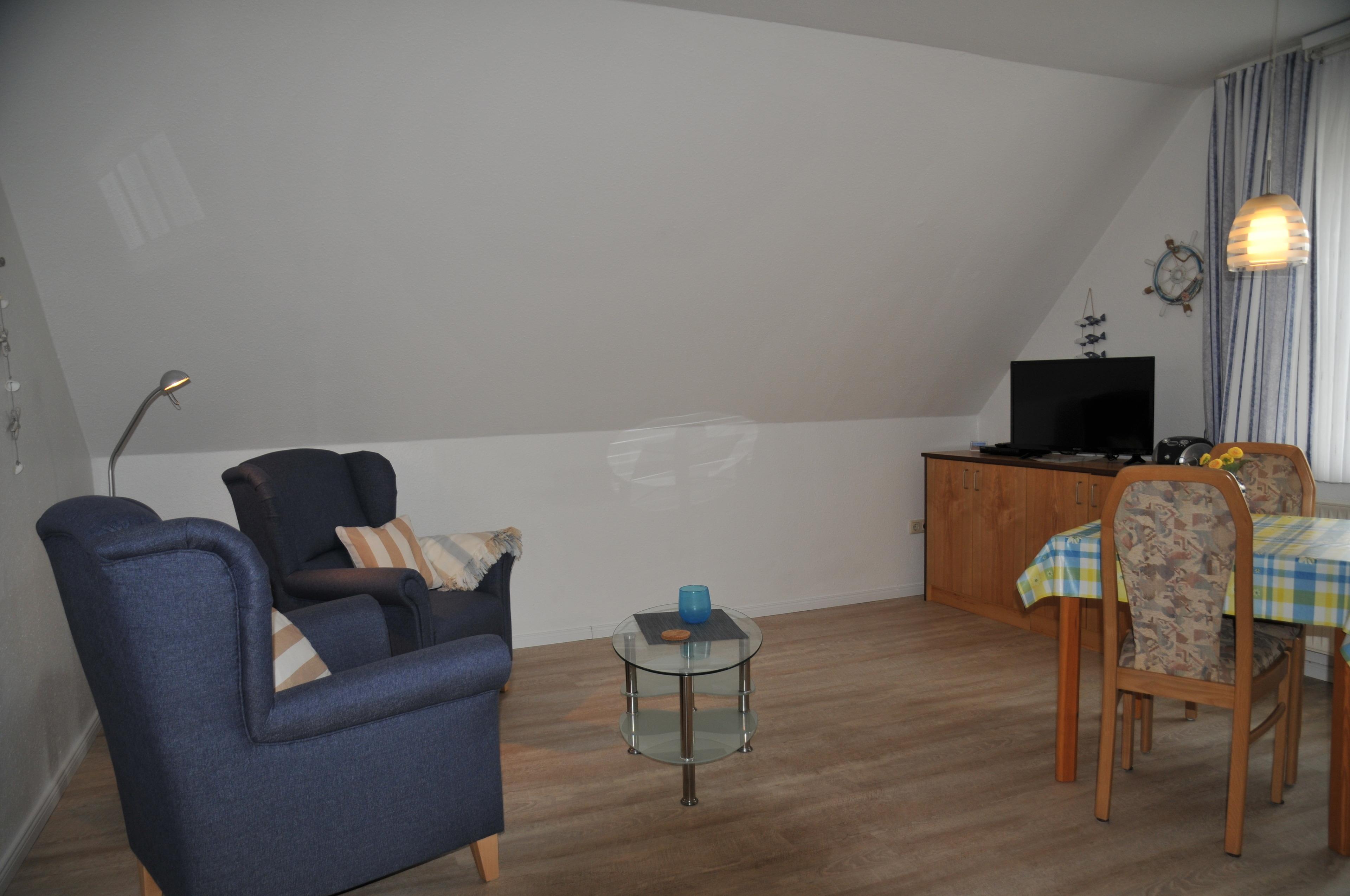 Das gemütliche 2-Raumappartement "Henk" im Obergeschoss ist die perfekte Unterkunft für alle, die zu zweit einen erholsamen Urlaub verbringen wollen. In dem Wohnraum mit vollständig eingerichteter Küchenzeile (Cerankochfeld, Backofen, Wasserkocher, Mixer, Kaffeemaschine, Kühlschrank mit Gefrierfach etc.) haben Sie genügend Platz, um einen entspannten Urlaubstag in den zwei gemütlichen Sesseln zu genießen. Hierfür steht ein CD-Radio und ein TV mit DVD-Player für Sie zur Verfügung.