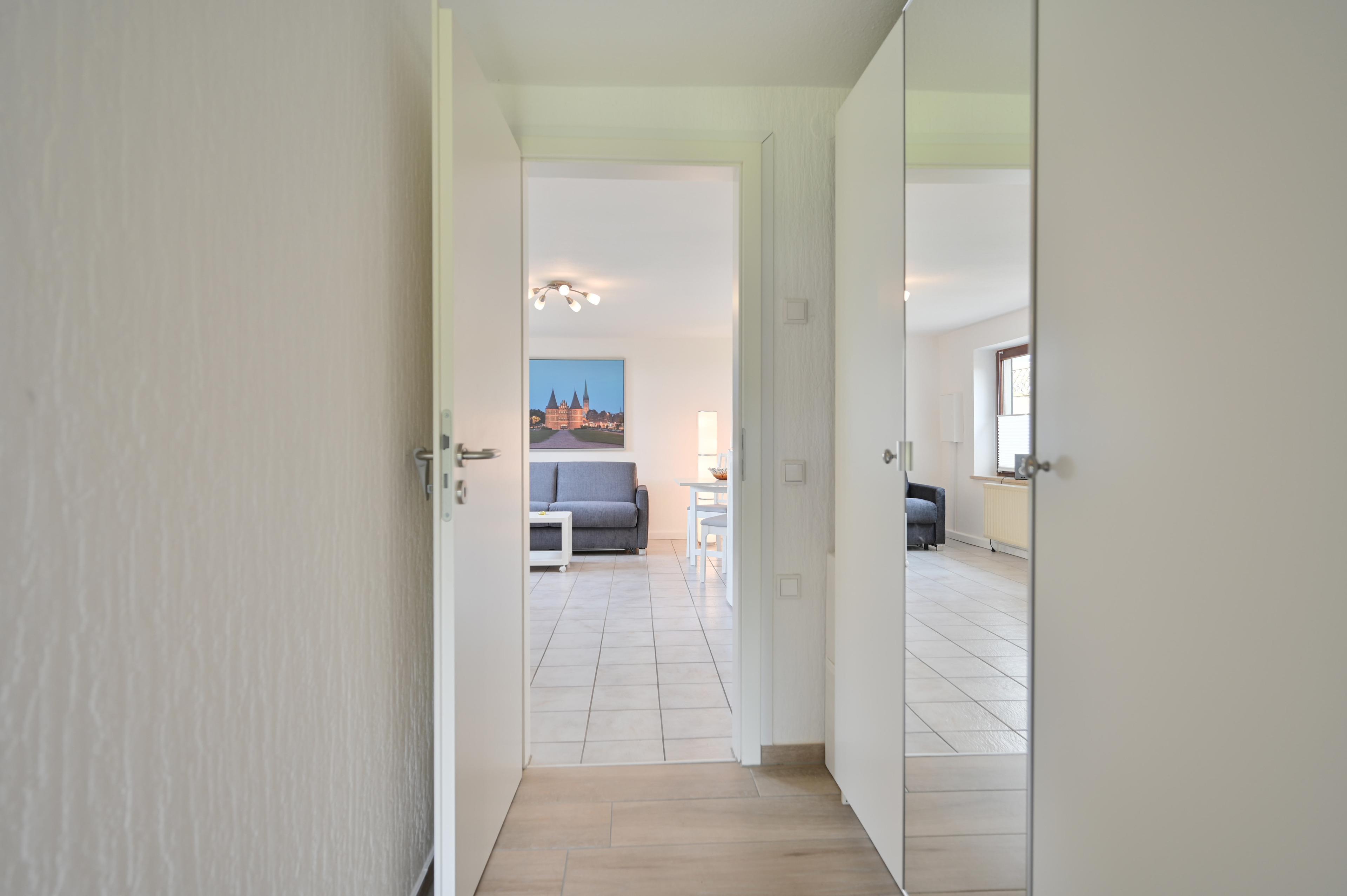 Von hier aus erreichen Sie das Schlafzimmer, den Eingang, die Terrasse und das Duschbad/WC.