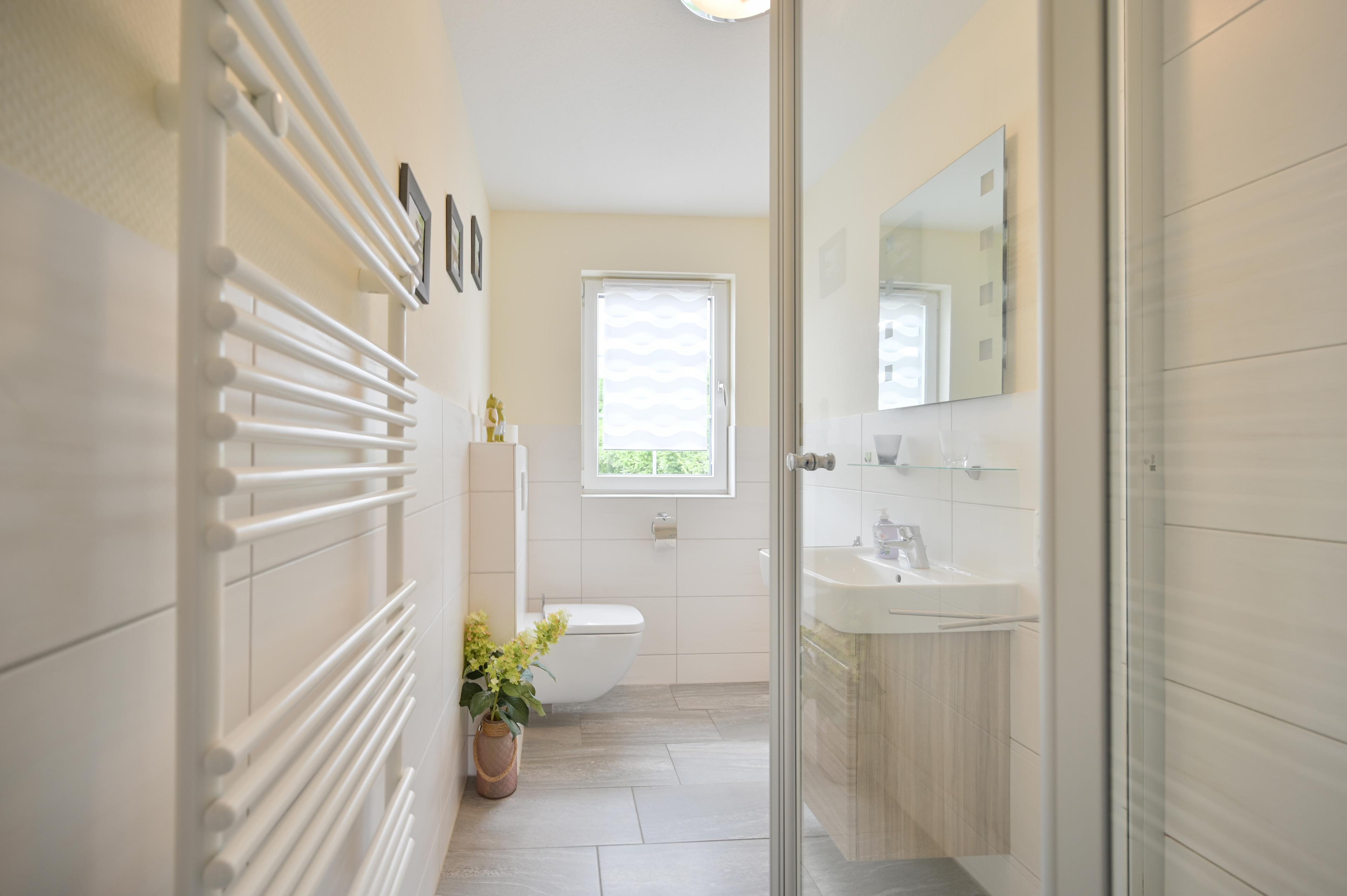 Das Badezimmer verfügt über ein Außenfenster zum Lüften und wurde im Jahr 2017 neu renoviert und besteht aus einer Dusche mit WC.