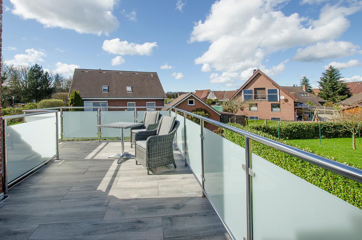 Der große Balkon bietet über den ganzen Tag die Möglichkeit das gute Wetter zu genießen.
