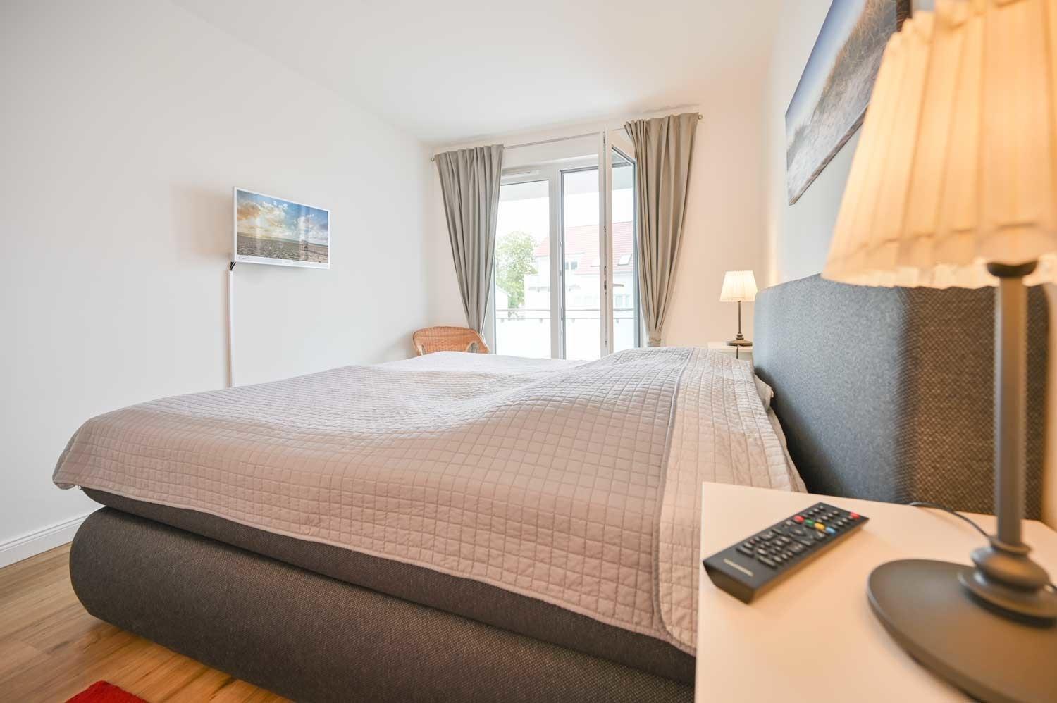Das große Schlafzimmer ist mit einem Boxspringbett 1,80 x 2,00 m. Bitte denken Sie an ein großes Bettlaken, da es sich um ein Boxspringbett ( 1,80 x 2,00 ) mit einer durchgehenden Matratze handelt. Einem sehr großem Kleiderschrank, einem zusätzlichen Tv und elekt. Aussenrollos optimal ausgestattet. Ein Babybett und ein Kinderhochstuhl steht für Ihre Jüngsten bereit.