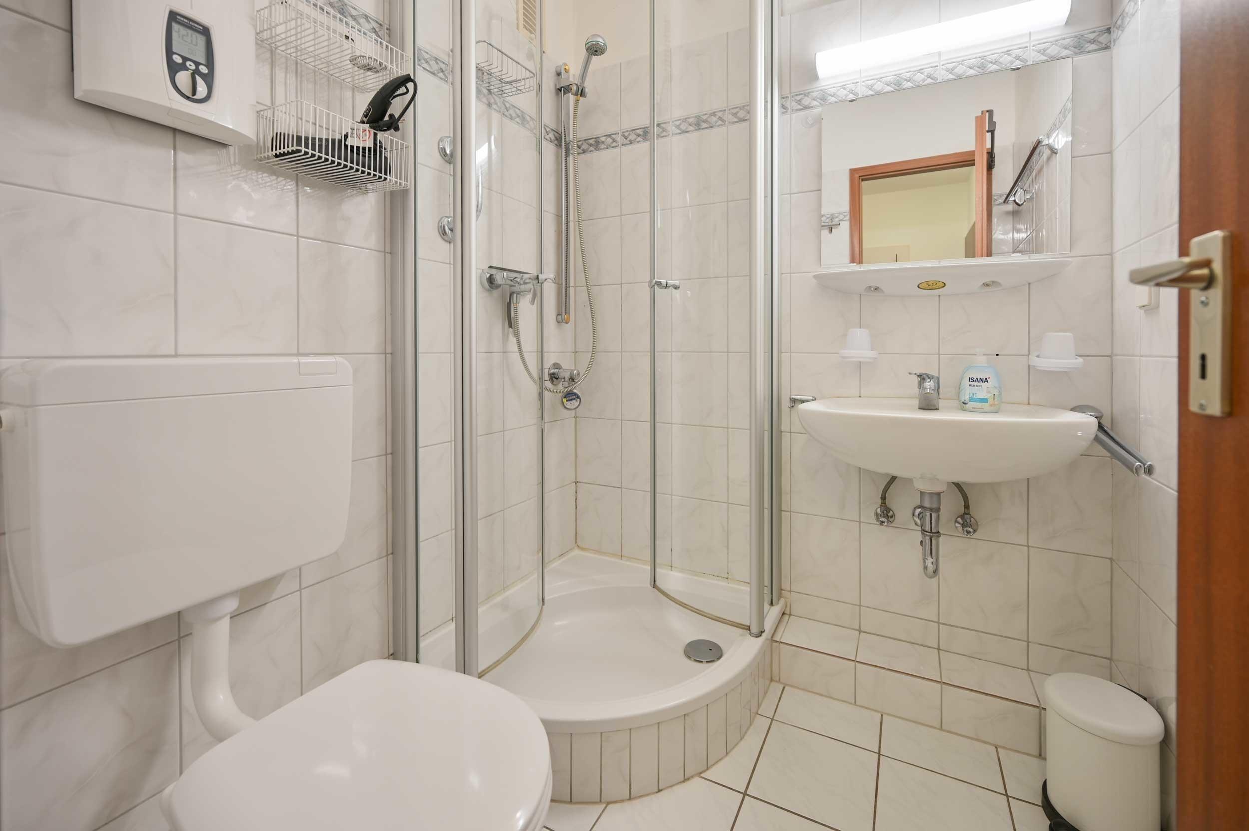 Für Ihre Hygiene finden Sie ein Dusch-Bad-WC. Auch dieser Raum ist hell und modern ausgestattet.