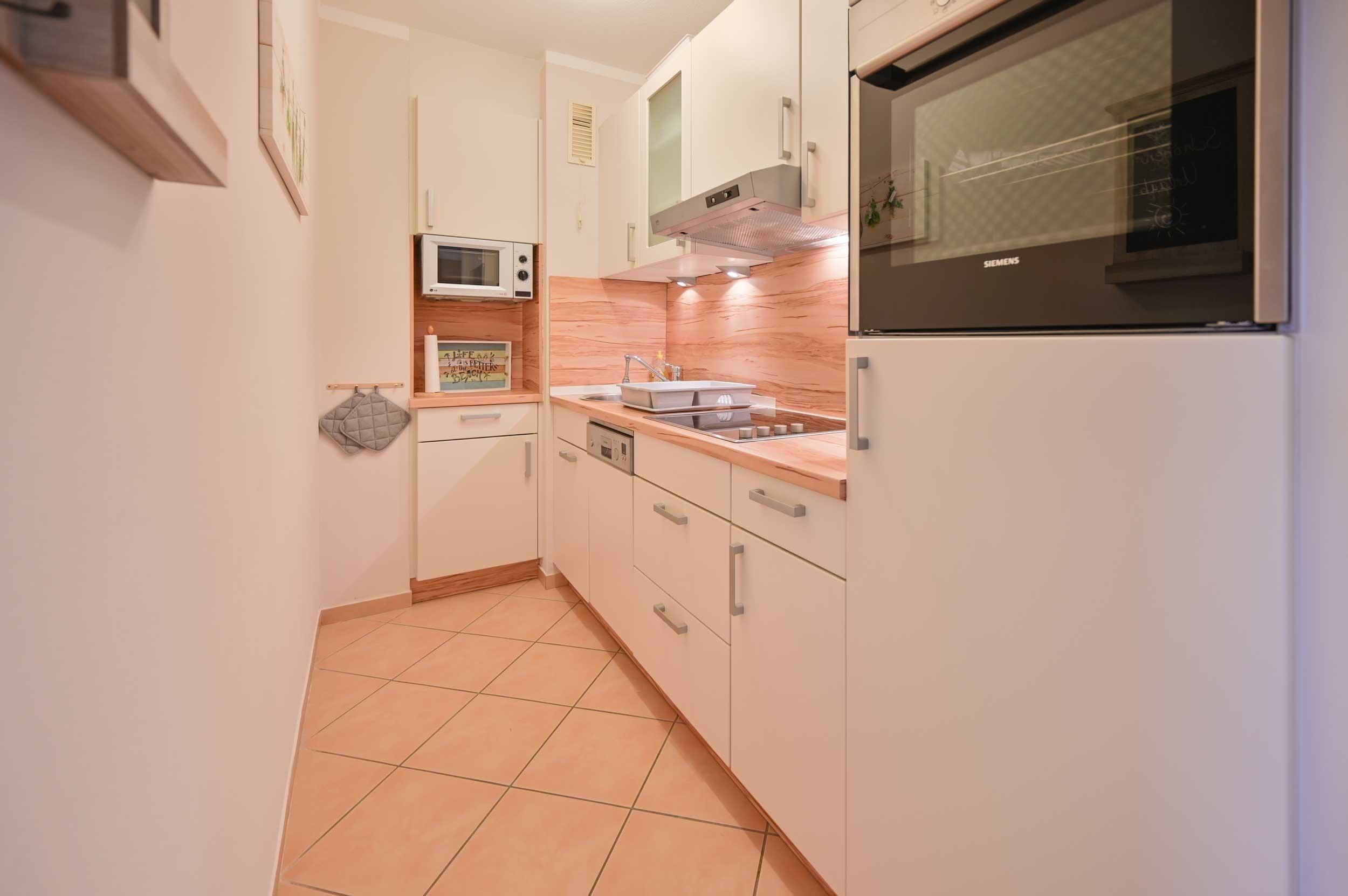 Die moderne und neue Einbauküche befindet sich separat vom Wohnbereich und verfügt über einen 4-Kochfelder-Ceranfeldherd, einen Backofen, eine Mikrowelle, eine Spülmaschine, eine Kaffeemaschine, einen Toaster, einen Wasserkocher und viele weitere Extras. Eine Kaffeemaschine und eine Senseo-Maschine steht Ihnen in der Küche zur Verfügung.
