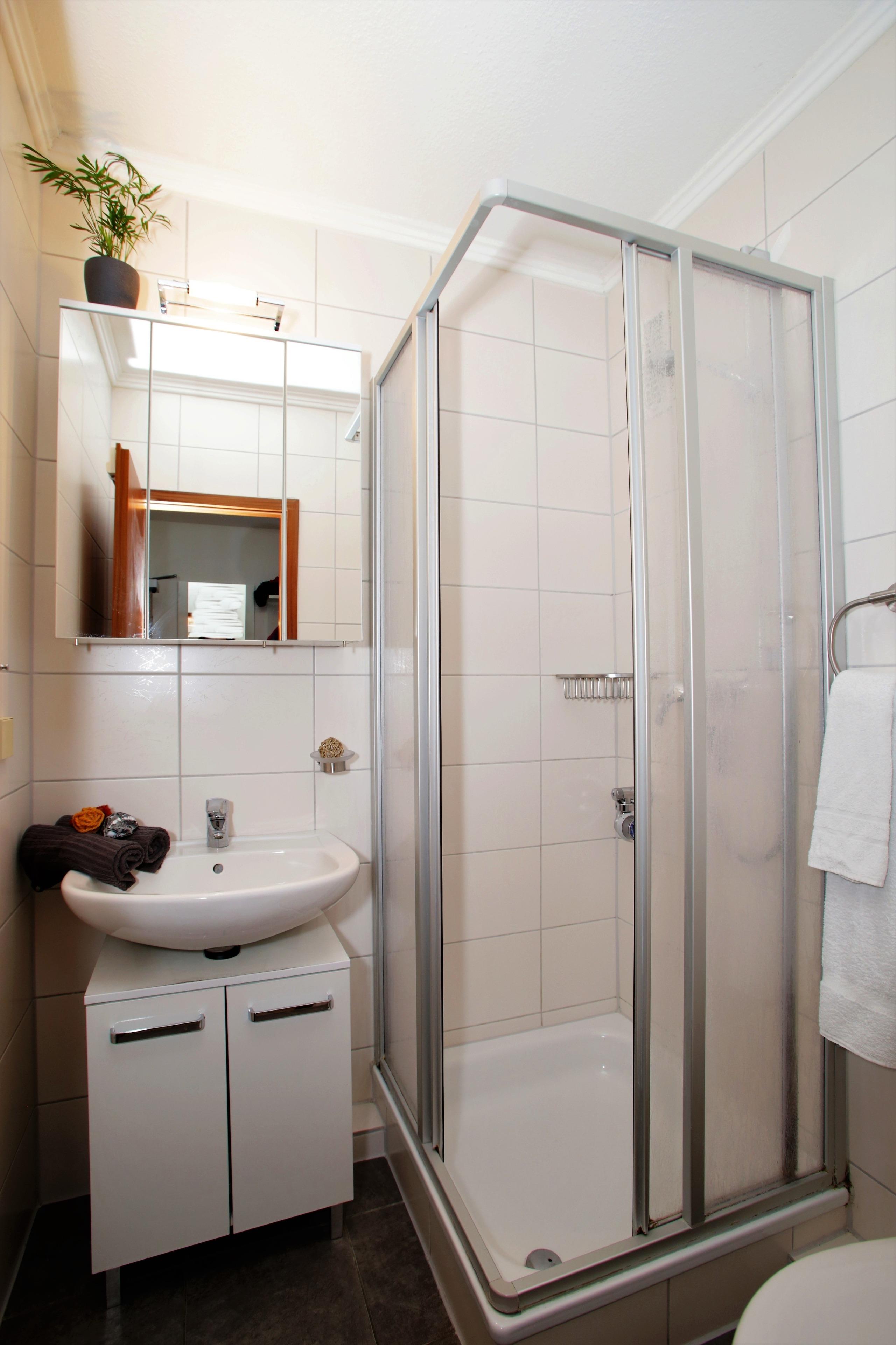 Des Weiteren ist die Ferienwohnung mit einem Dusch-Bad-WC ausgestattet, in dem Sie auch einen Fön vorfinden.