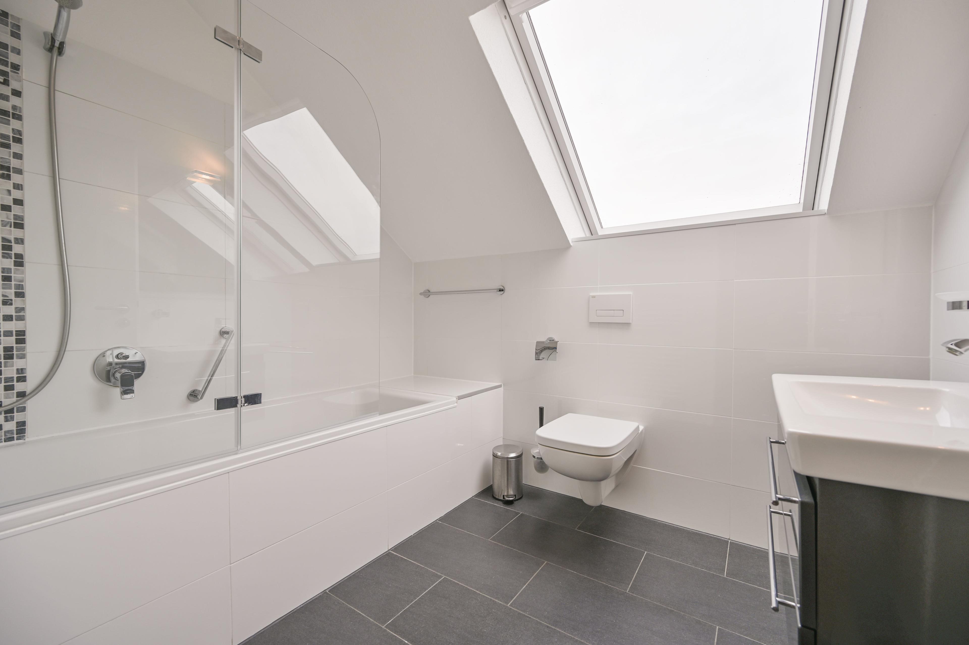 Im oberen Geschoss finden Sie 3 Schlafzimmer und ein modernes Tageslichtbad mit Badewanne und Duschgelegenheit.