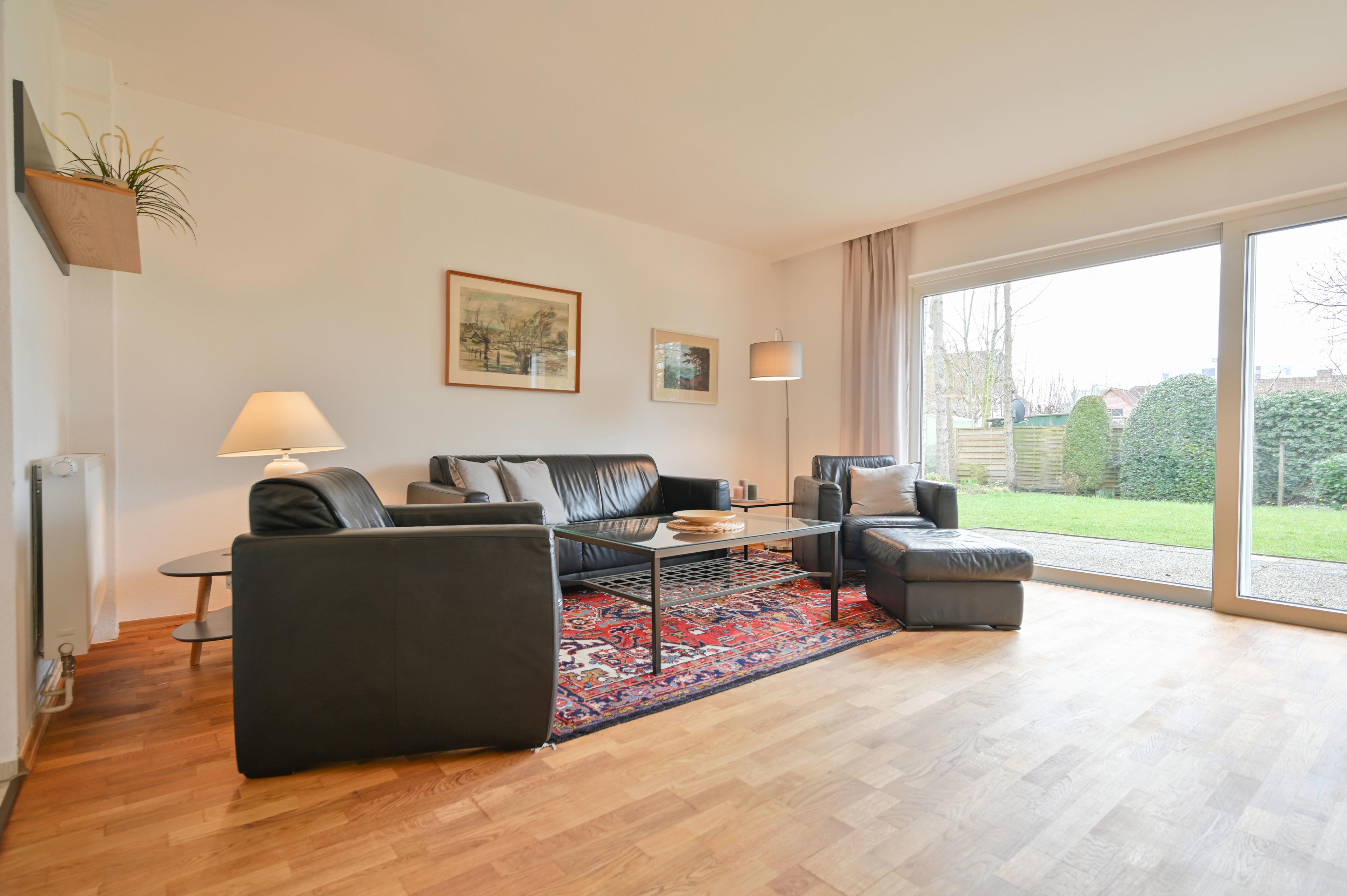Der komfortable, helle Wohnbereich ist großzügig angelegt und mit einer Sofalandschaft eingerichtet. Der gemauerte Kamin sorgt auch in der kühlen Jahreszeit für gemütliche Stunden. Vom Sofa aus können sie durch die großen Fensterelemente den wunderbaren Blick in den Garten genießen.