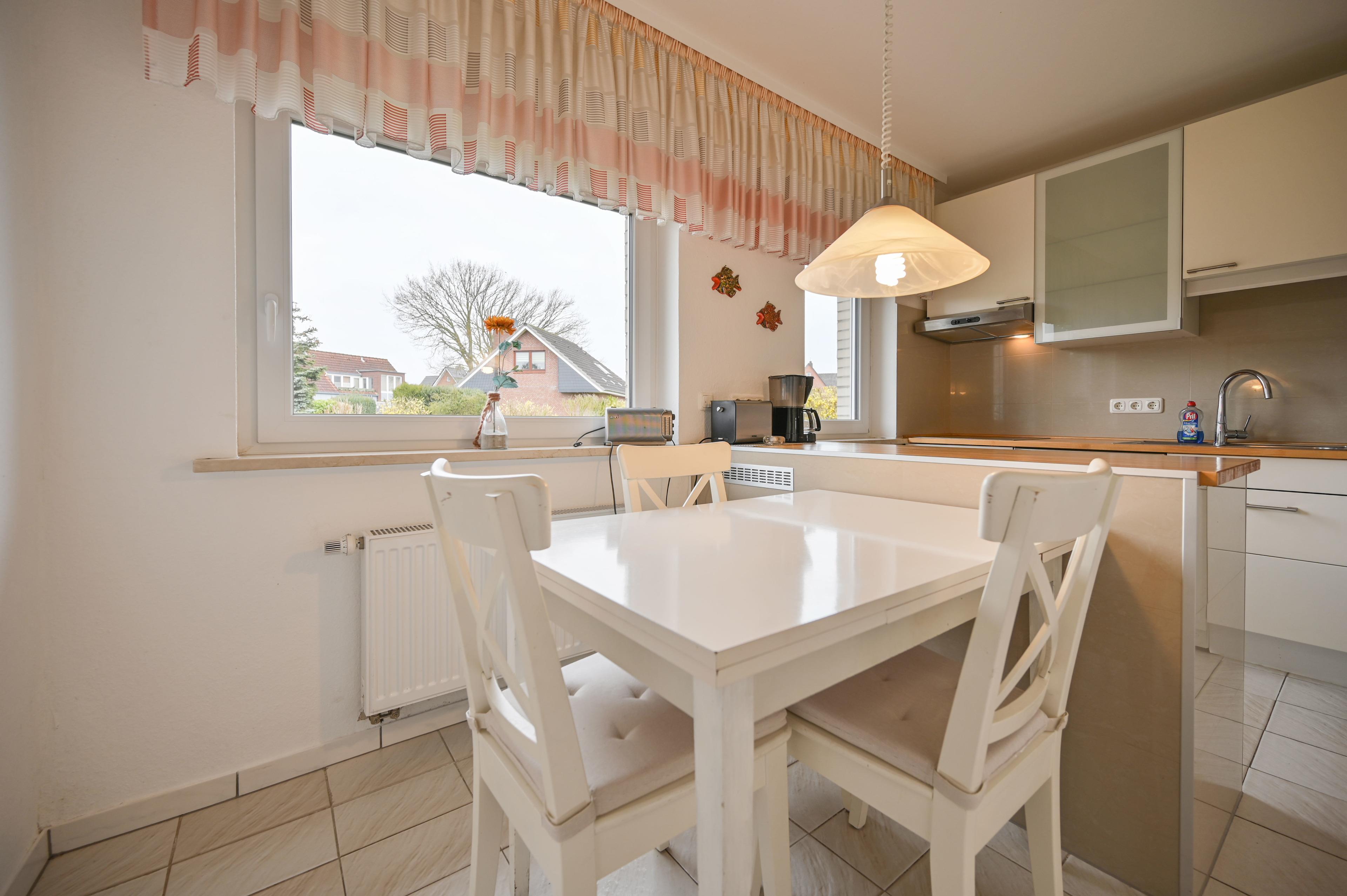 Die Küche mit Essplatz verfügt über eine gute Ausstattung inkl. Waschmaschine, Mikrowelle und Geschirrspülautomat.