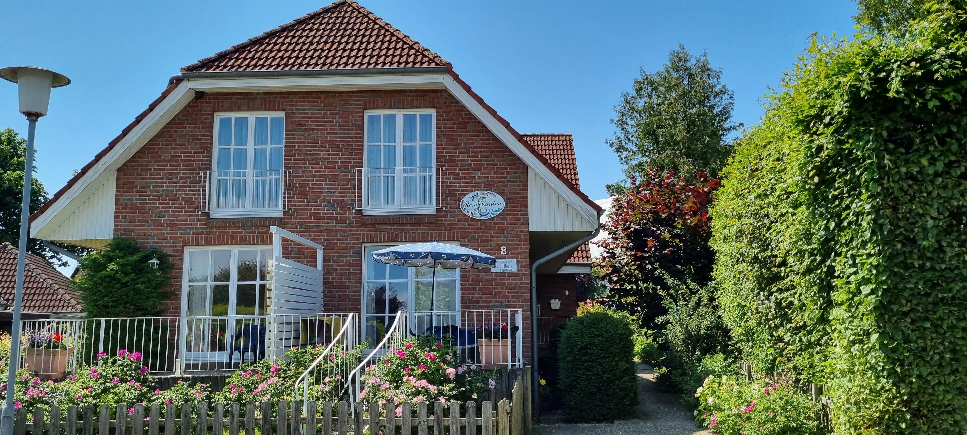 Zweizimmerwohnung (43 qm) im Erdgeschoss mit Terrasse, ca. 300 m vom Meer entfernt, für max. 4 Personen Schlafraum mit Doppelbett (kleines Kinderbett möglich), Wohnzimmer mit Doppelschlafgelegenheit, Duschbad, Bad, Küche mit Geschirrspüler, Kühlschrank mit Gefrierfach, Herd mit Ceranfeld und Backofen. Auf Wunsch stellen wir Ihnen eine Mikrowelle, Kinderbett und Hochstuhl unentgeltlich zur Verfügung. Waschmaschine und Trockner werden über einen Münzautomaten abgerechnet. Über WLAN haben Sie kostenlosen Internetzugang. Unseren Garten können Sie zum Spielen und Entspannen nutzen, Sandkasten und Schaukelgerät, Liegestühle und sonstige Gartenmöbel stehen Ihnen zur Verfügung. Ein Haustier (Hund) ist in der Nebensaison erlaubt.