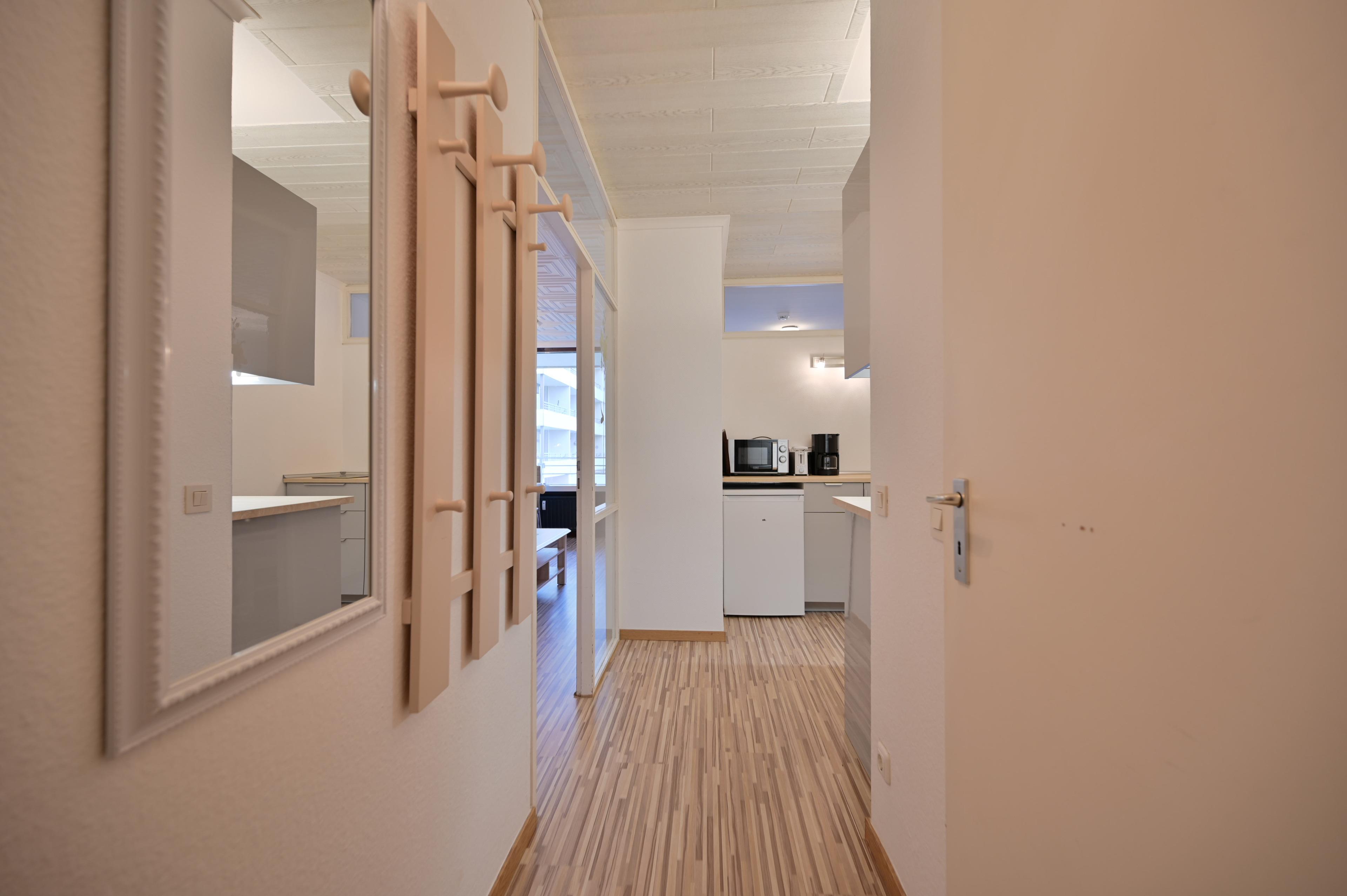 Die seperate Küche mit allen alltäglichen Geräten vervollständigt das Angebot. Außerdem gibt es ein Badezimmer mit Dusche und einen geräumigen Flur.