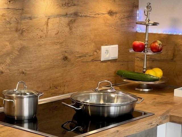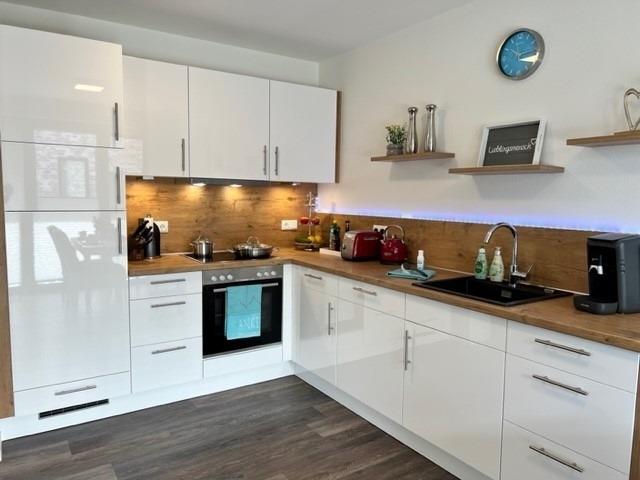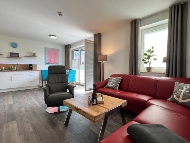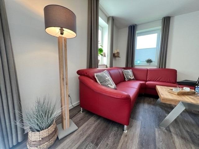 Im offen gestaltetem Wohn - Esszimmer bleiben keine Wünsche offen. Im Wohnzimmer nehmen Sie Platz auf einem roten Echtledersofa und Ledersessel. Die Küche ist modern und hochwertig ausgestattet. Toaster, Wasserkocher, Pad-Kaffeemaschine, hochwertige Töpfe und Pfannen. Es wird Ihnen in Ihrer Urlaubsküche an nichts fehlen. Das Badezimmer ist eine richtige kleine Wohlfühloase in Ihrem zu Hause auf Zeit. Eine ebenerdige Dusche und eine Sauna erwarten Sie.