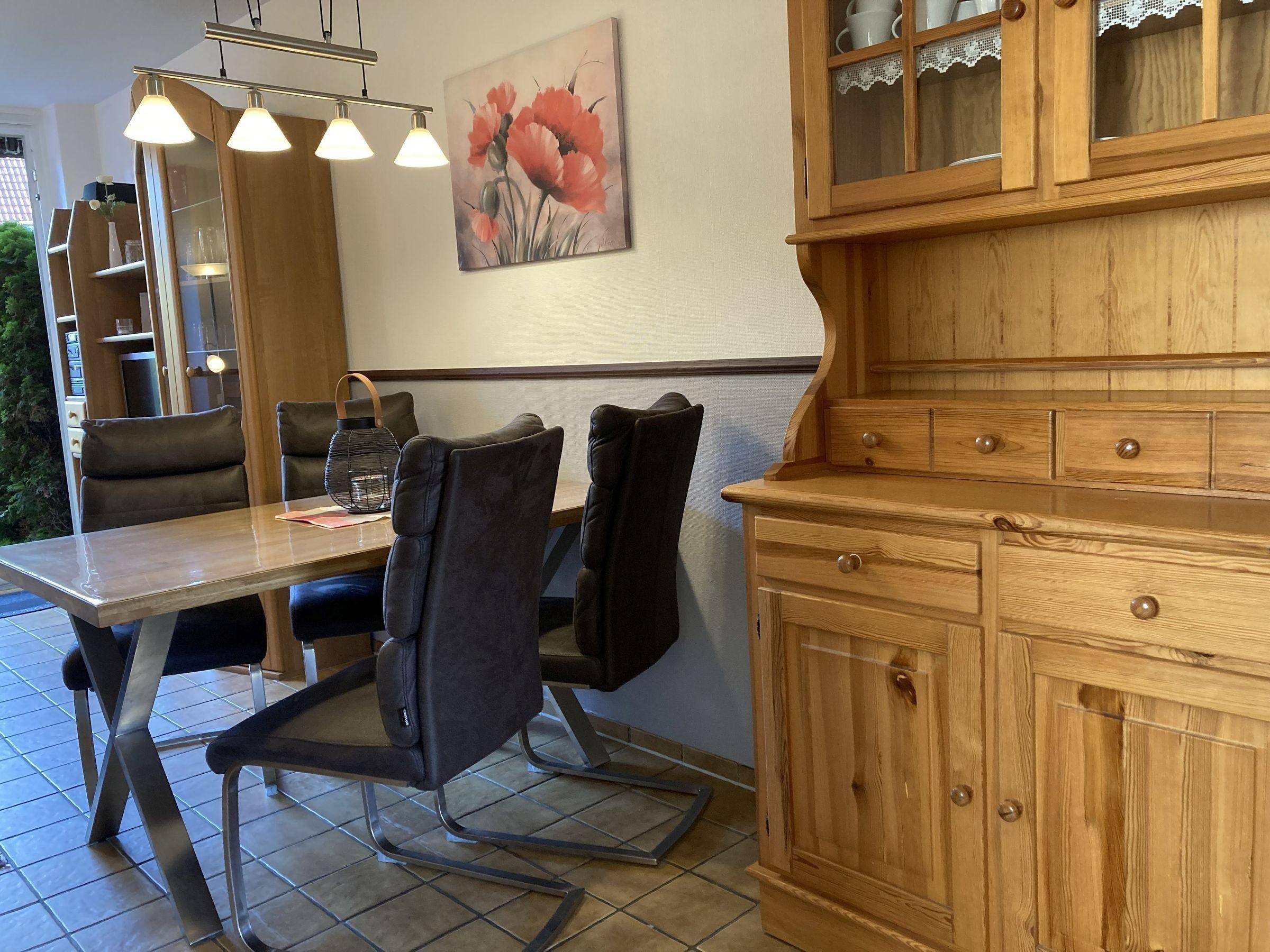 - Wohnzimmer mit Essplatz für 4 Personen und Kaminofen;