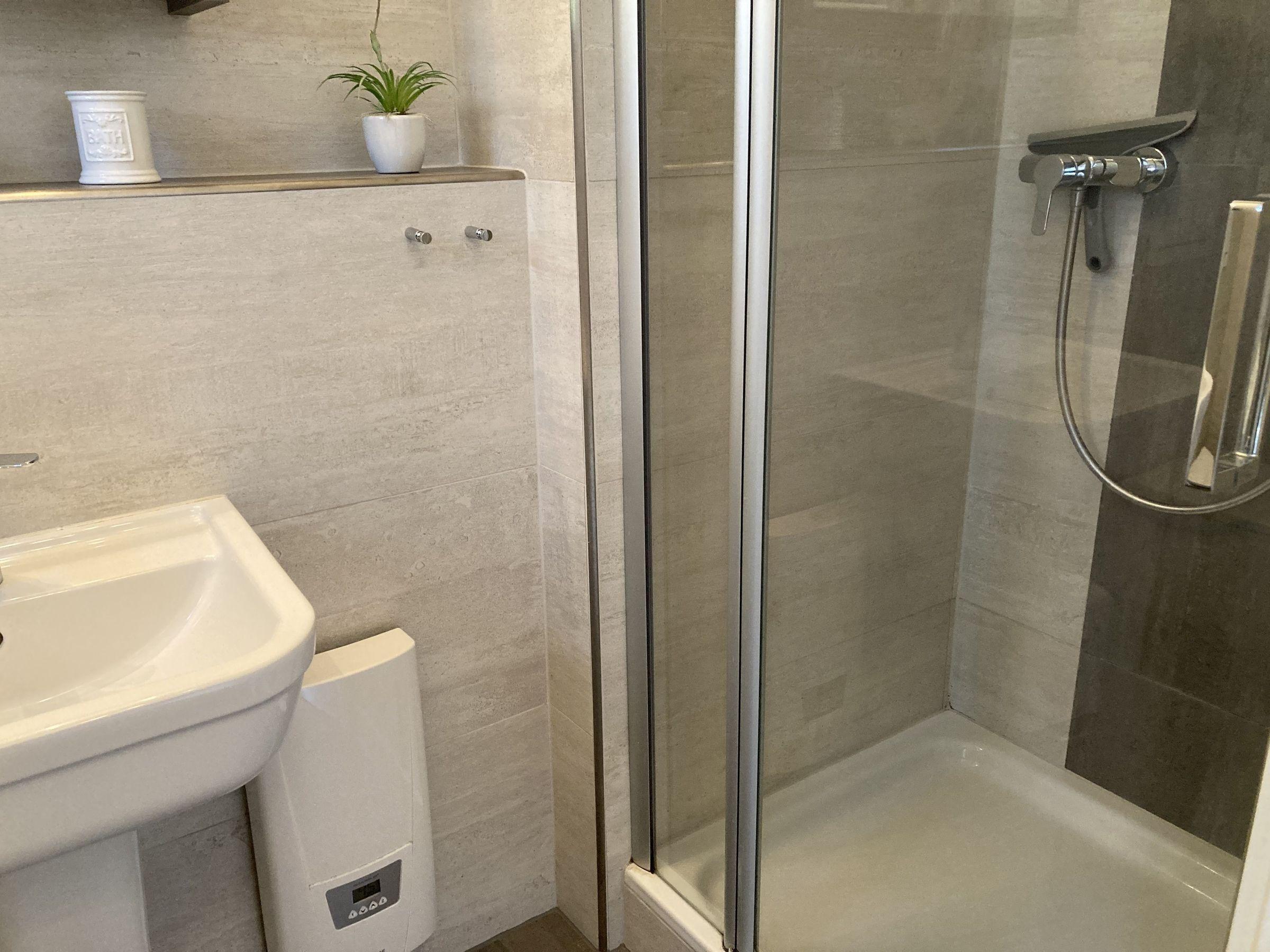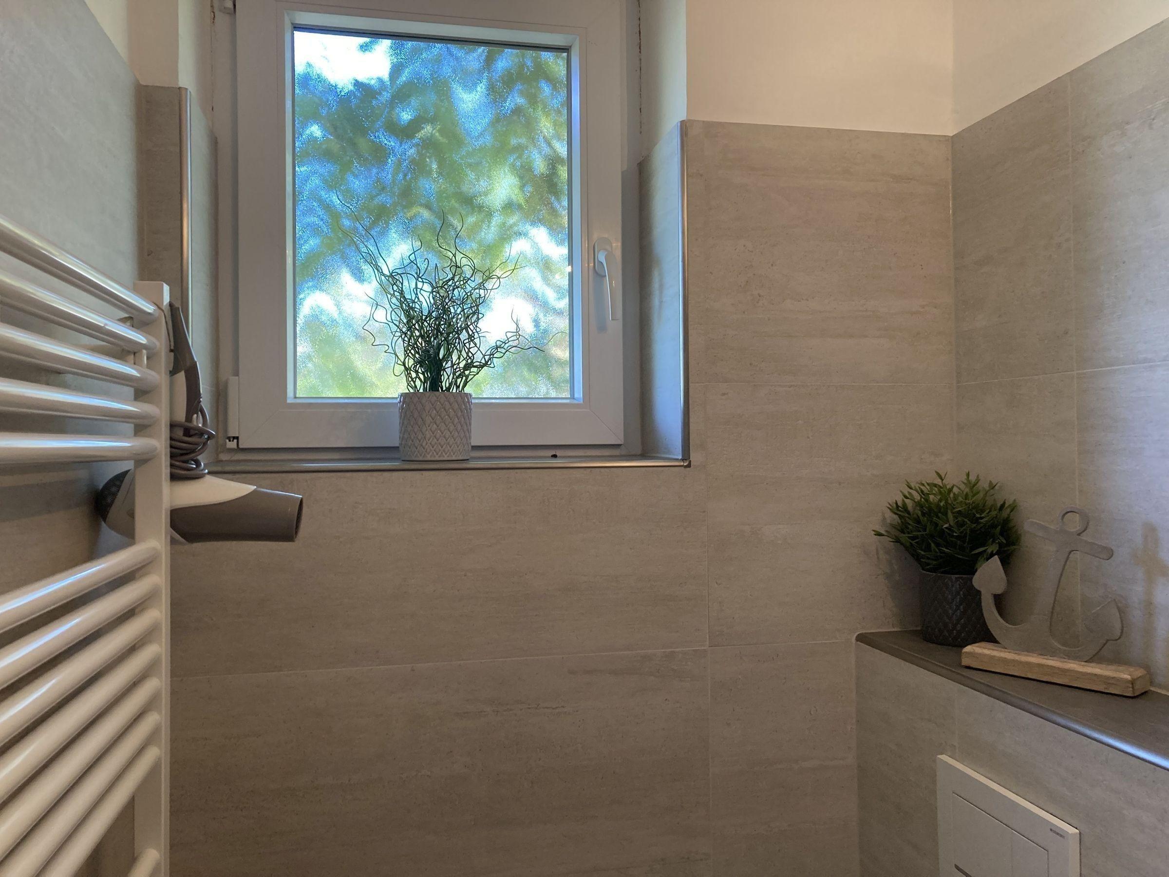 - Eingangsbereich mit Garderobe, Badezimmer mit Fenster, WC und Dusche;