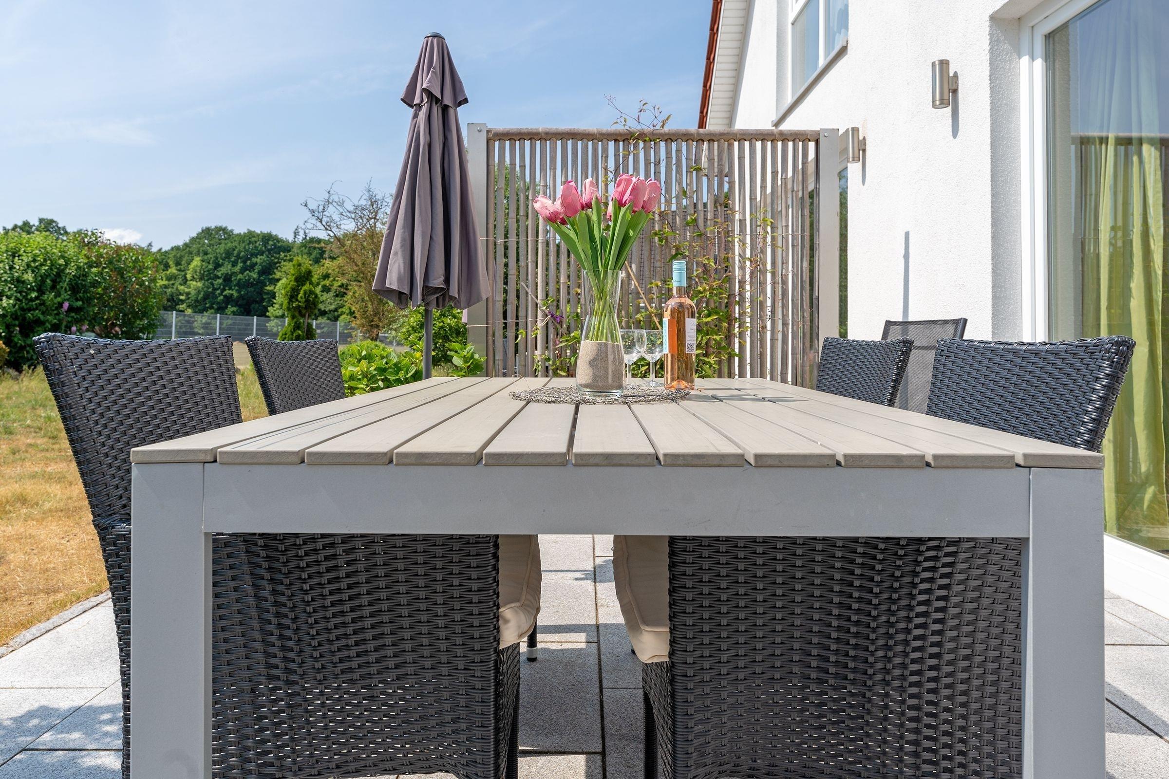 Großzügige 3-Zimmer-Doppelhaushälfte mit 2 separaten Schlafzimmern, Süd-Terrasse und Gemeinschaftsgarten in Kellenhusen in schöner Waldnähe. Auf einer Wohnfläche von ca. 69 m² finden hier bis zu 4 Erwachsene und 1 Kind wunderbare Erholung.
