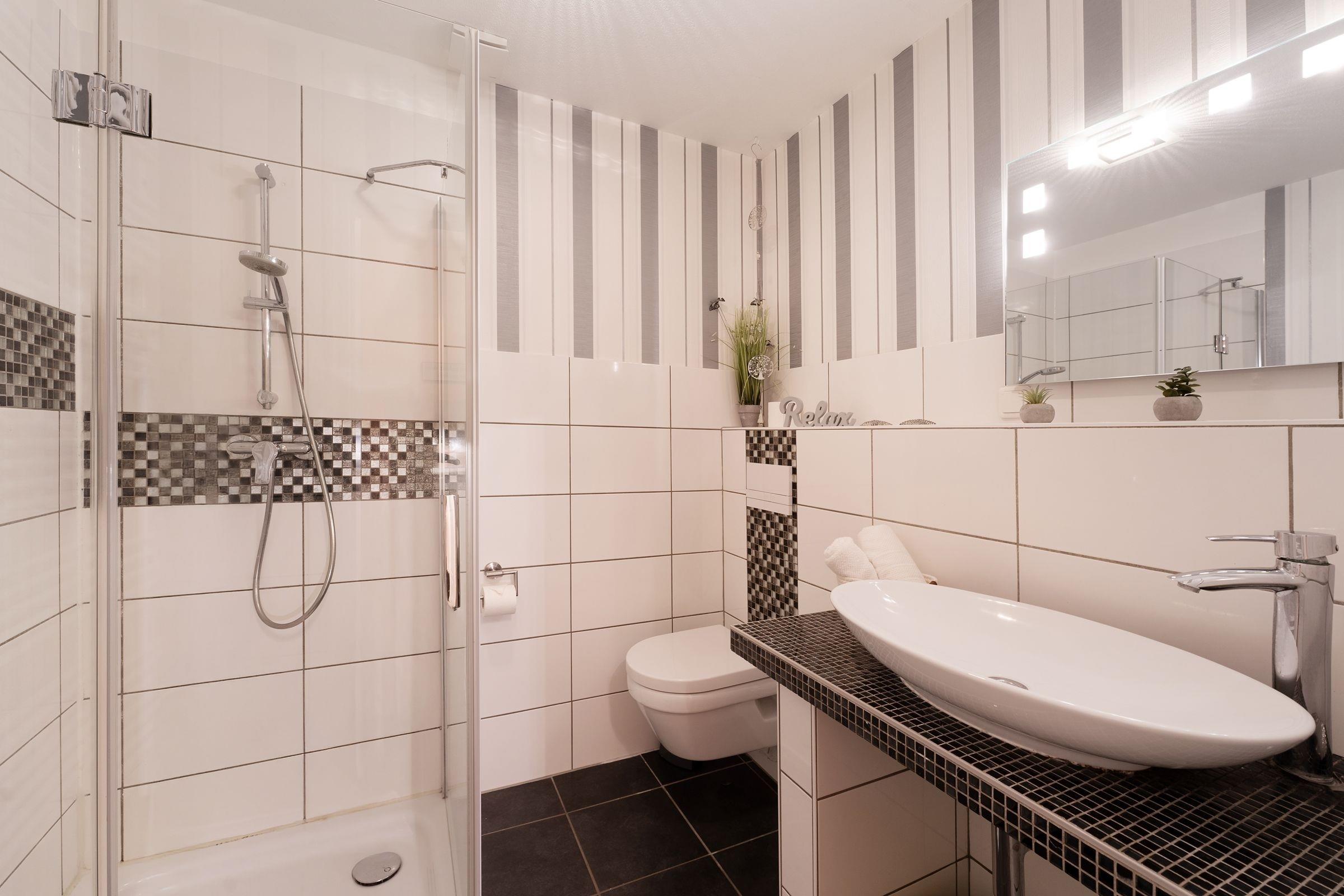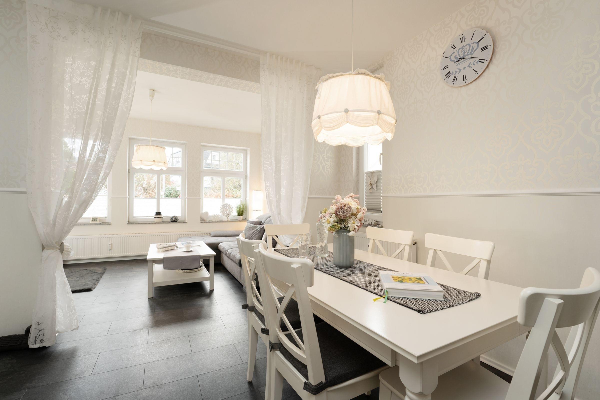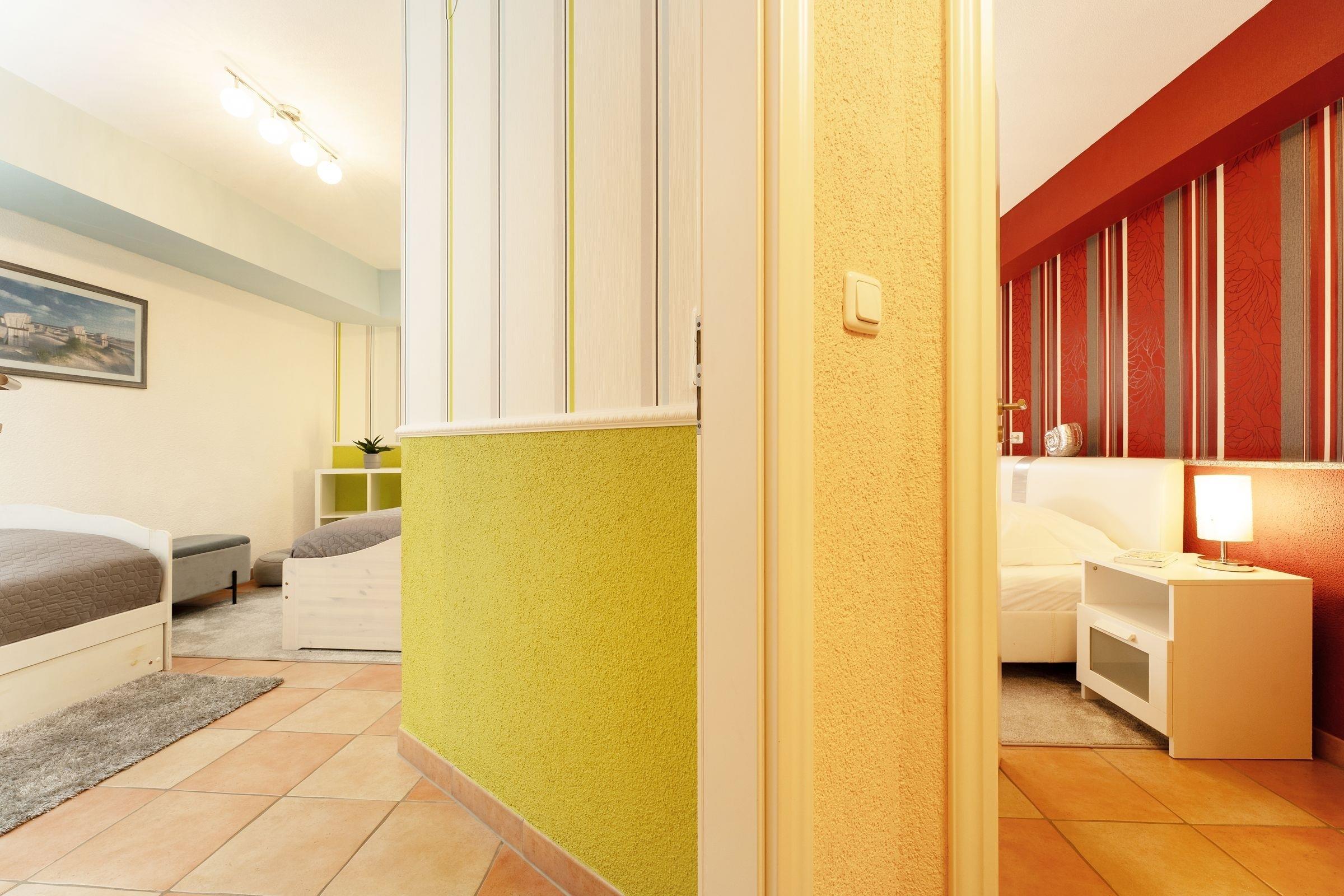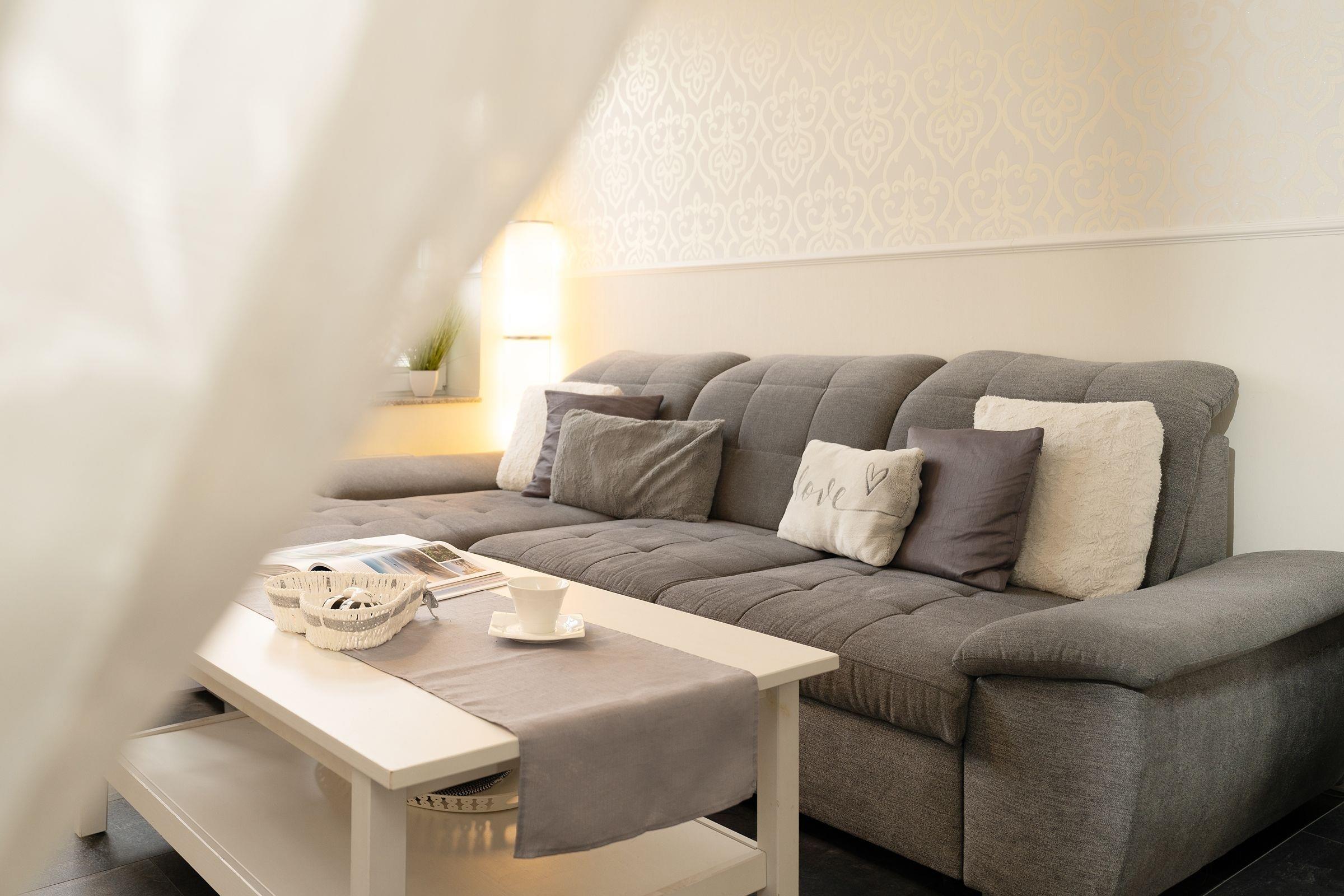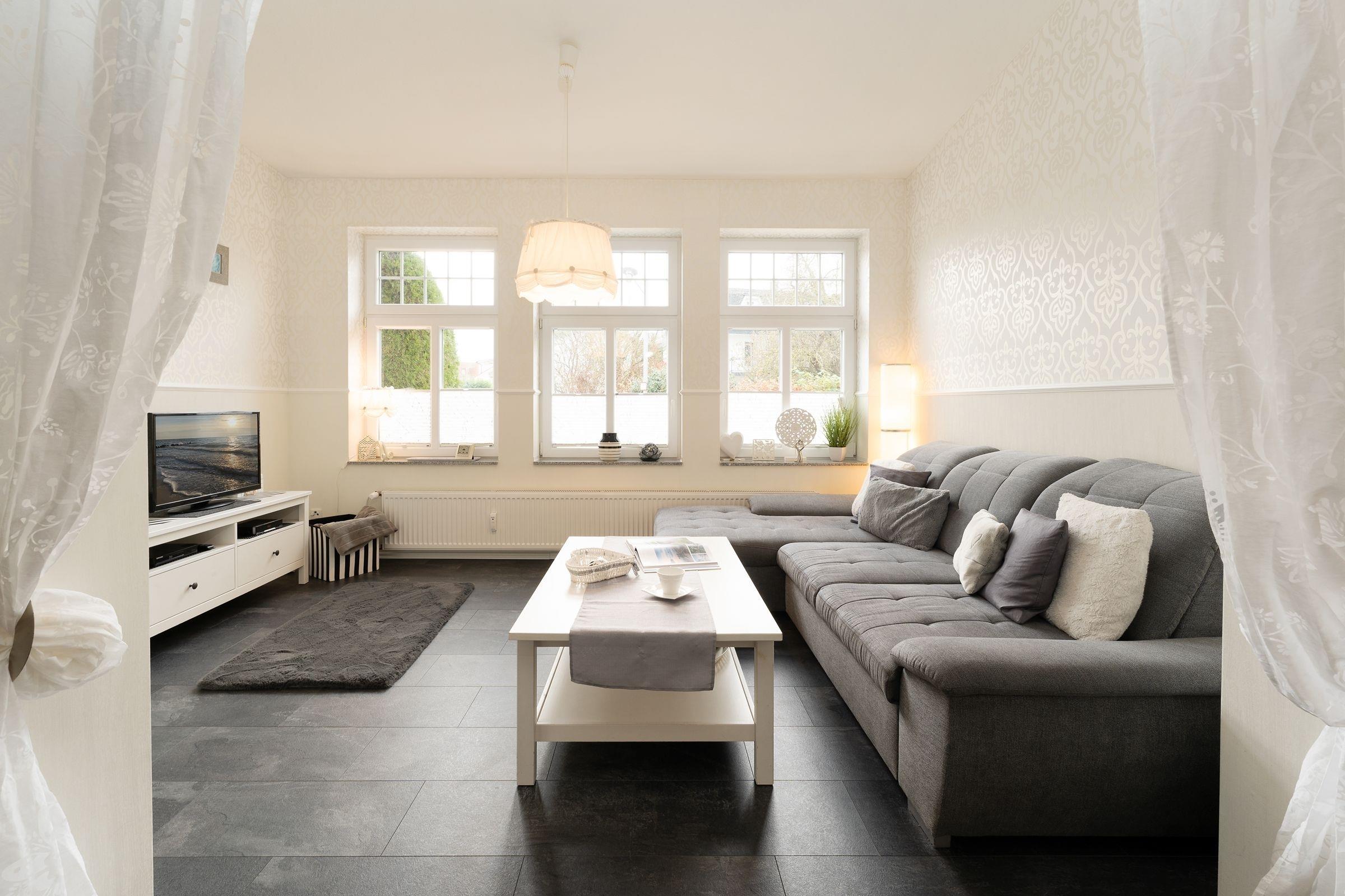 Eine Traumwohnung zum Wohlfühlen. Dieses wunderschöne Objekt befindet sich in der gepflegten Wohnanlage Villa Hoffnung und bietet Ihnen auf 2 Ebenen alles, was das Urlaubs-Herz begehrt. Die in grau-weiß gehaltene Einrichtung im Wohn-/Ess-Bereich wurde liebevoll ausgesucht und besticht durch ihre einzigartige Atmosphäre. Die komfortable Sofa-Landschaft verspricht entspannte Stunden vor dem TV-Gerät. Die offene Küche präsentiert sich um die Ecke in denselben Farben und bringt jeden Hobby-Koch zum Lächeln. Direkt davor steht eine gemütliche Essecke. Genießen Sie hier Ihre Speisen oder planen Sie hier Ihre Ausflüge entlang der schönen Ostseeküste. Das moderne Duschbad mit bodentiefer Dusche ist auch in grau-weiß gehalten. Sehr stilsicher. Nach einem erlebnisreichen Tag stehen Ihnen 2 Schlafräume zur Verfügung, diese erreichen Sie über 6 Treppenstufen hinunter: Ein Zimmer präsentiert sich im stylischen Rot und verfügt über ein Doppelbett. In dem anderen farbenfrohen Zimmer stehen 2 Einzelbetten. Hier werden Sie sicher wunderbar bunt träumen.