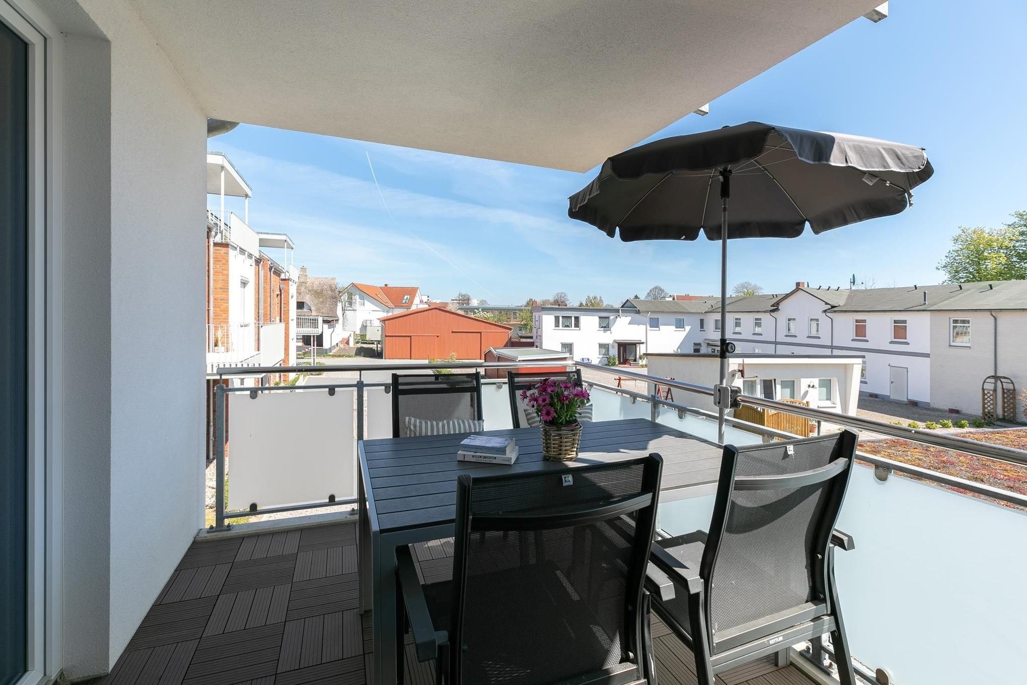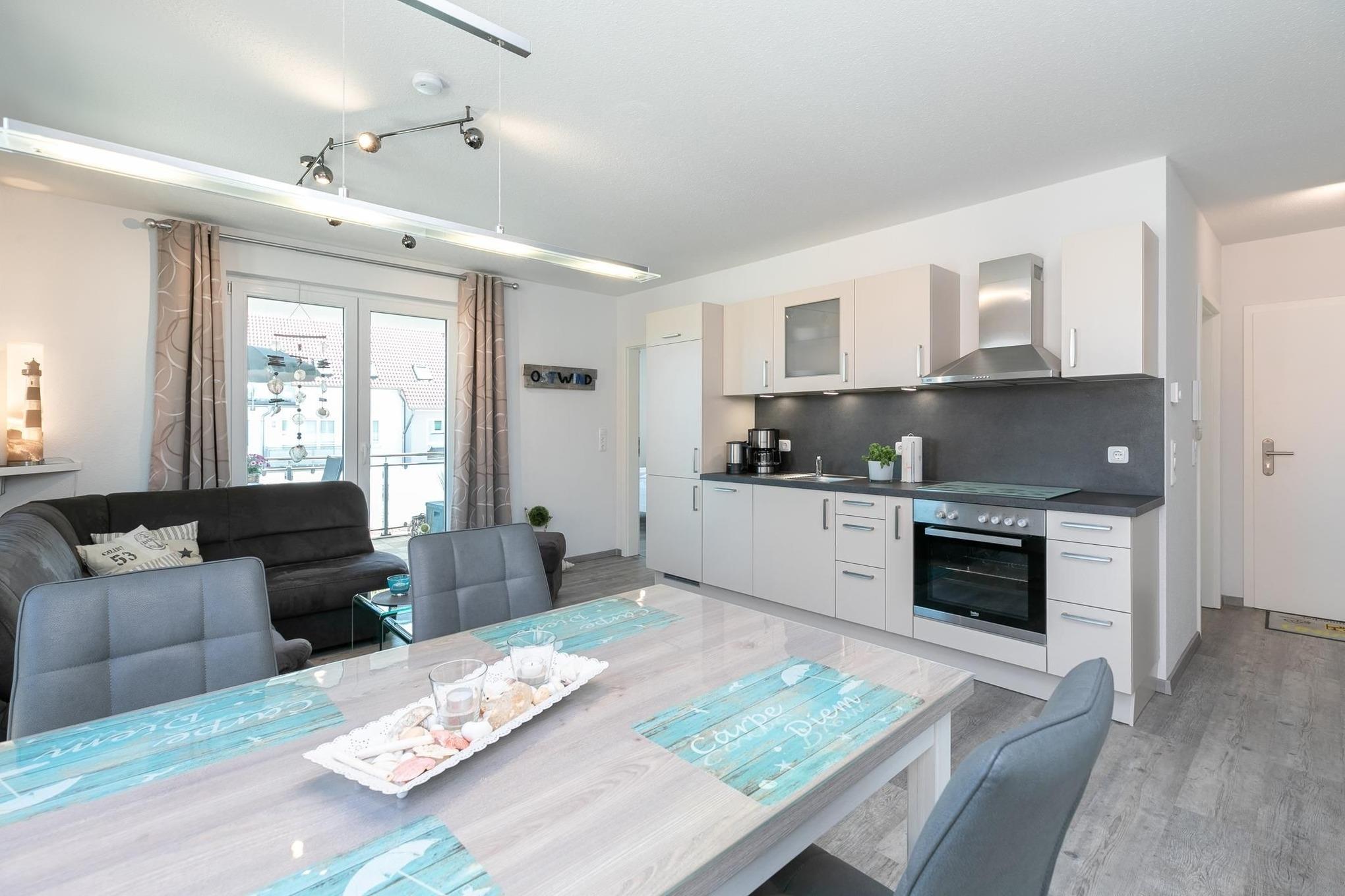 Verbringen Sie Ihren nächsten Ostseeurlaub in dieser modernen 3-Zimmer-Ferienwohnung im 1. Stock mit Balkonloggia und 2 separaten Schlafzimmern. Auf ca. 53 m² Wohnfläche können sich bis zu 4 Personen wunderbar erholen.