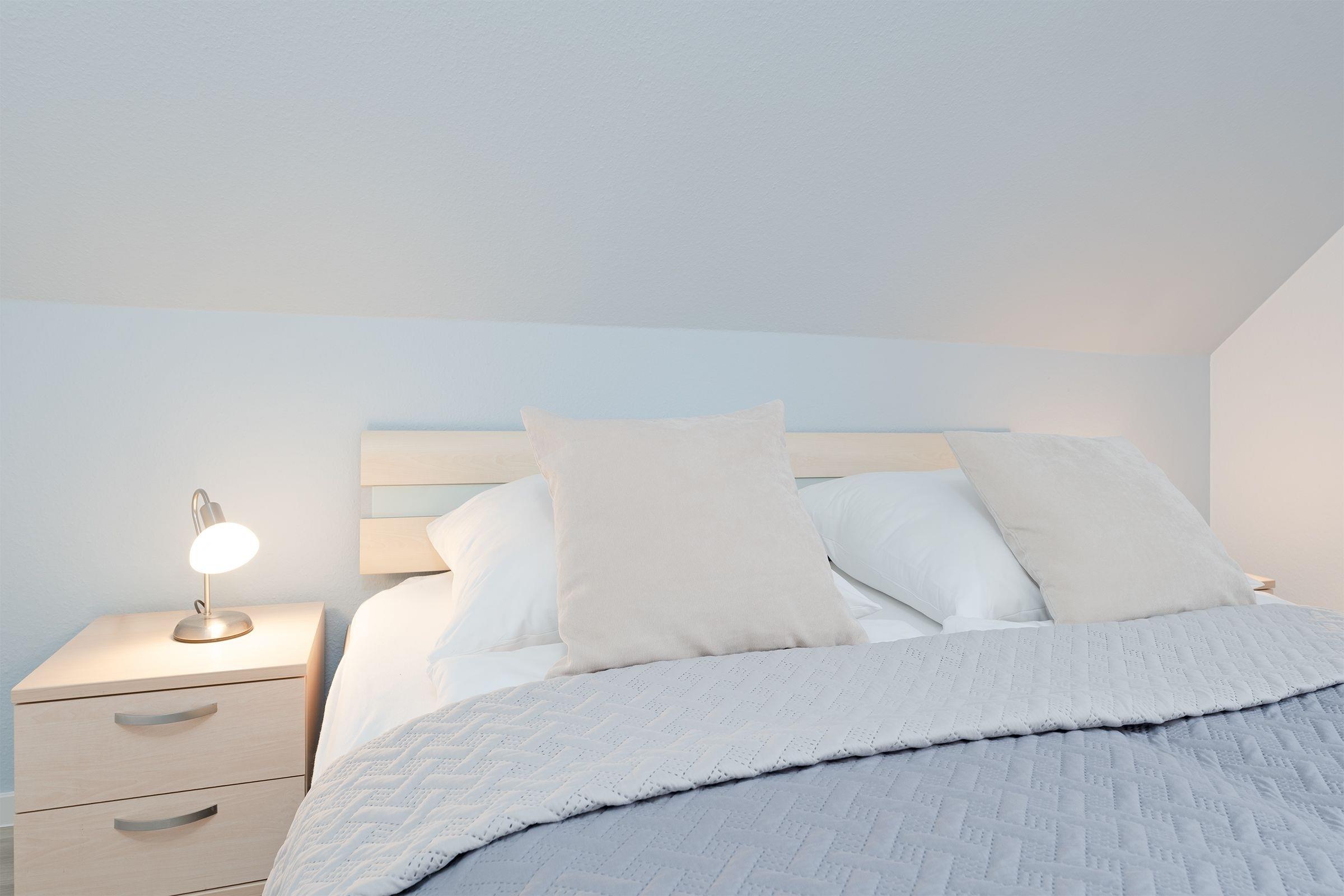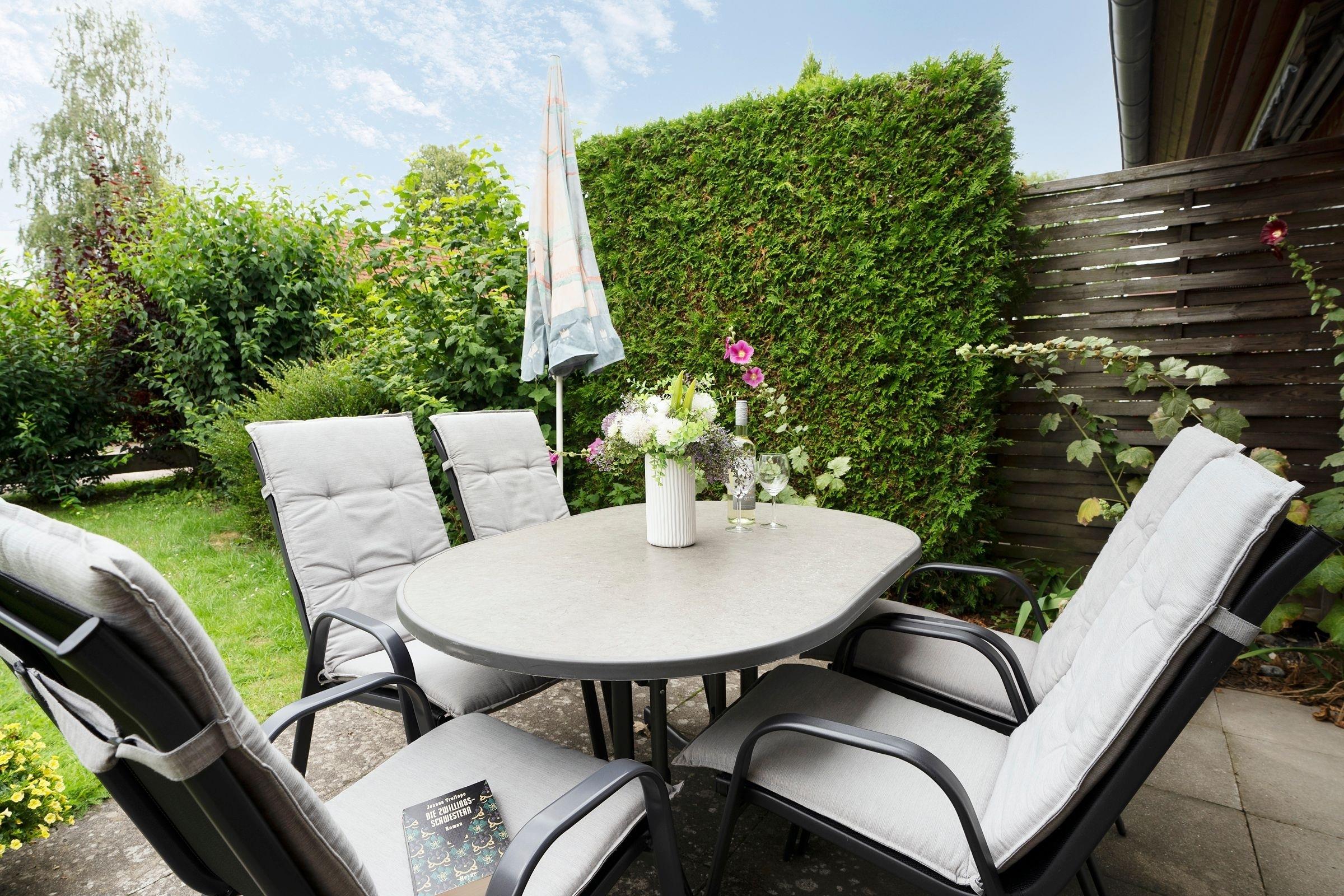 Einen abwechslungsreichen Urlaub können Sie in diesem komfortablen Feriendomizil zwischen Wald und Wellen im Heisterbusch 13d erleben. Im Erdgeschoss empfängt Sie das Wohnzimmer mit einer großzügigen Sofalandschaft. Machen Sie es sich hier gemütlich, für Unterhaltung sorgen ein TV-Gerät sowie eine Stereo-Anlage. Wunderbar können Sie auch auf der sonnigen, möblierten Terrasse entspannen. Wie wäre es am Nachmittag mit einer Runde Federball im eingezäunten Garten? Auch kann man hier abends herrlich Grillen. Die separate Küche mit Spülmaschine bietet sämtliche Annehmlichkeiten, um sich im Urlaub wunderbar selbst zu versorgen. Weiterhin befinden sich im Erdgeschoss ein Duschbad. Im Dachgeschoss stehen Ihnen zwei Schlafräume zur Verfügung: In dem einen Zimmer steht ein Doppelbett (2x 90x200 cm), das andere Zimmer ist mit drei getrennt stehenden Betten (je 90x200 cm) ausgestattet. Auch in diesem Stockwerk gibt es ein Duschbad.