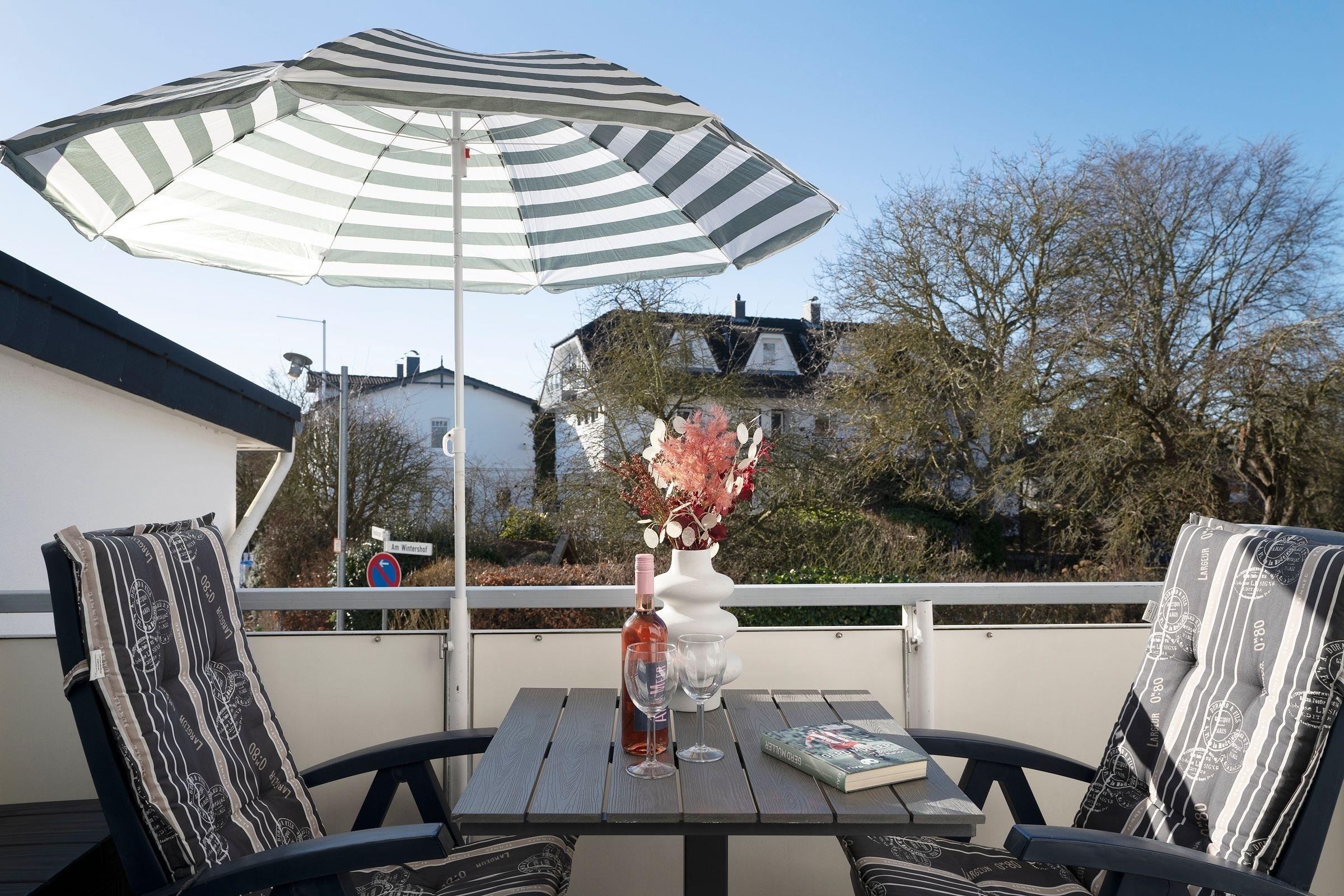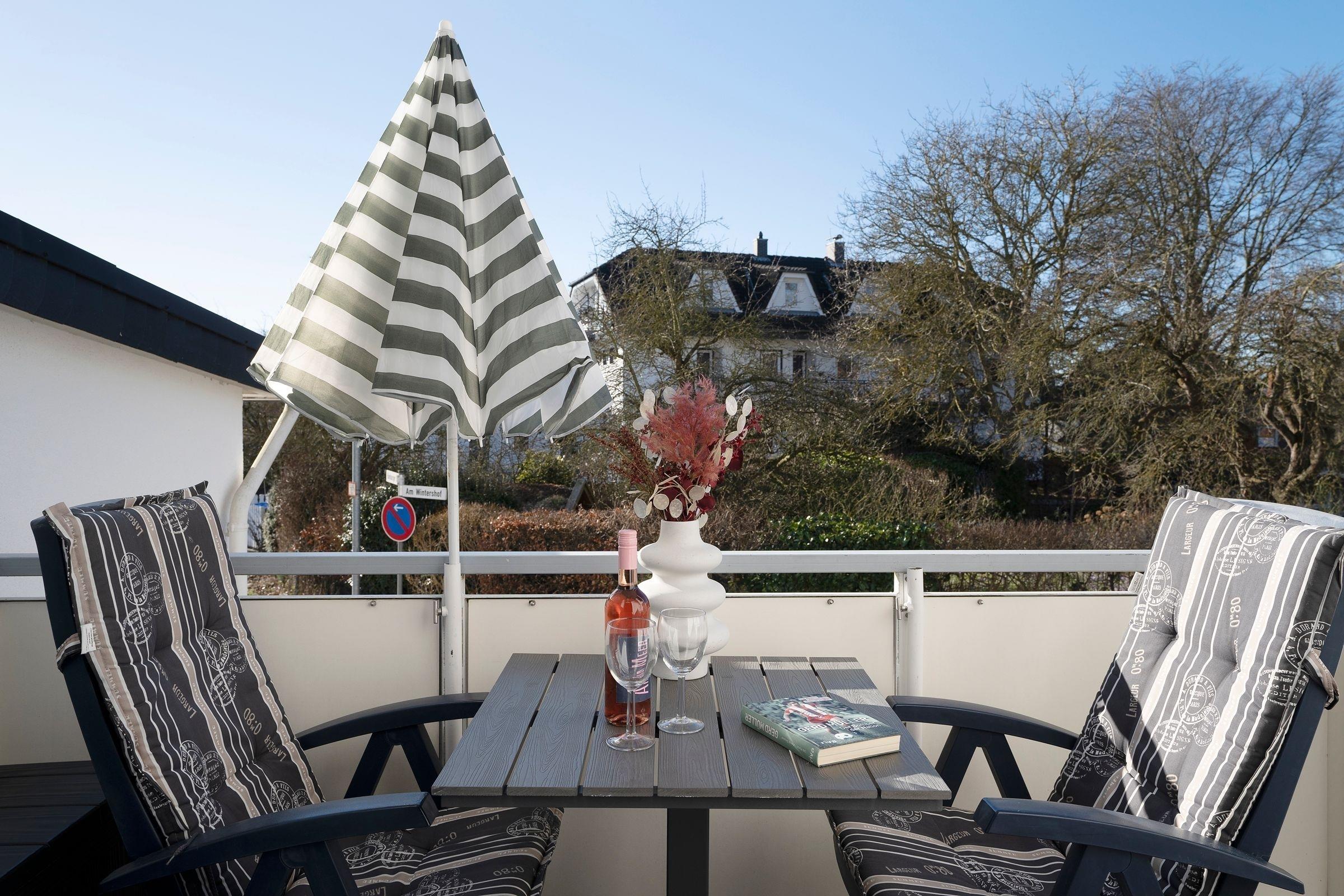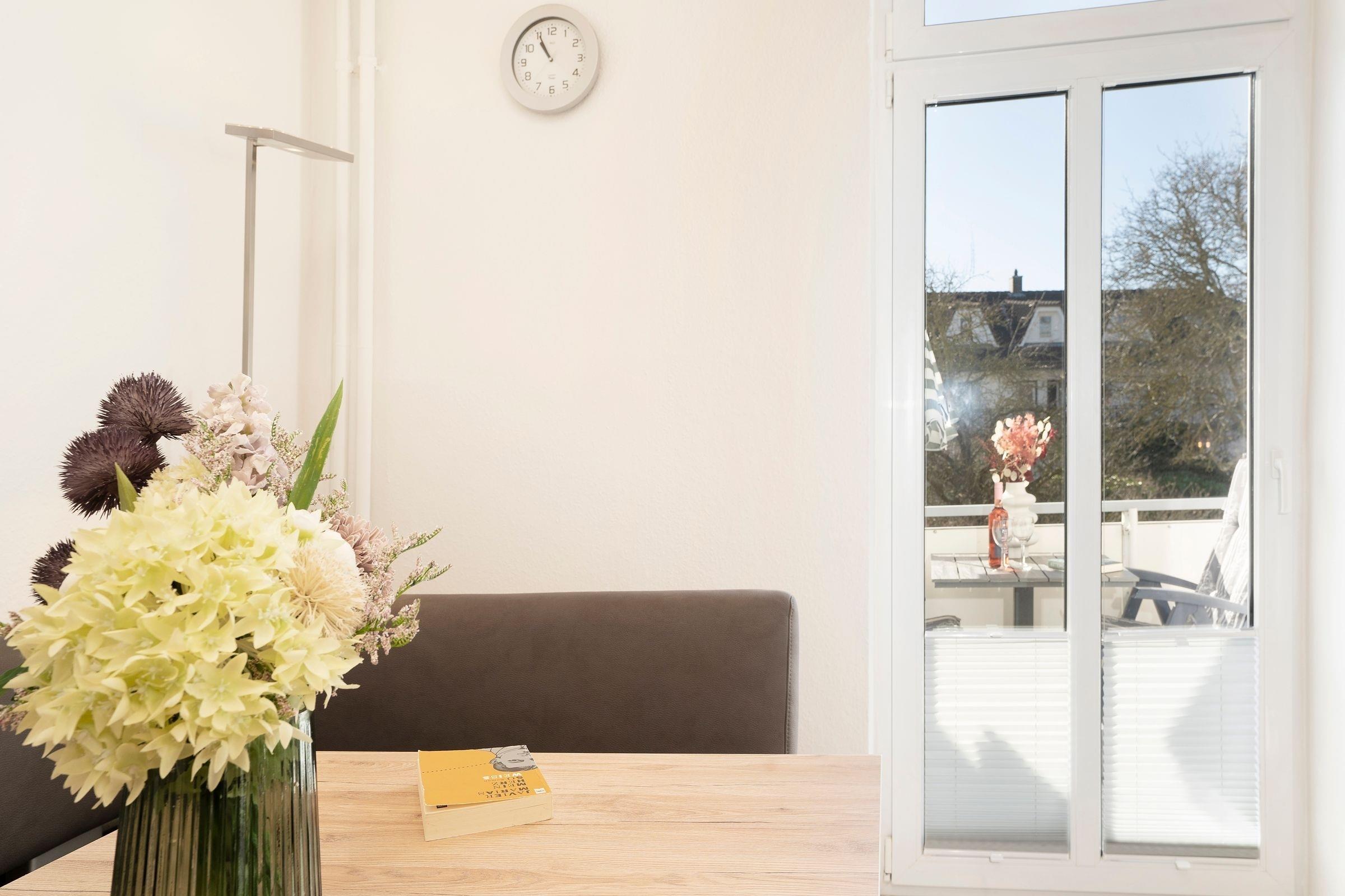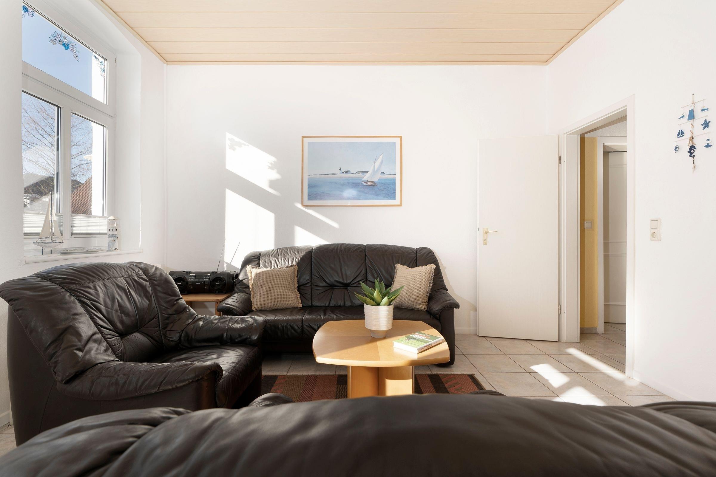 Lichtdurchflutete 3-Zimmer-Ferienwohnung im 1. Stock für bis zu 3 Personen mit 2 separaten Schlafzimmern, Balkon und einer Wohnfläche von ca. 55 m².