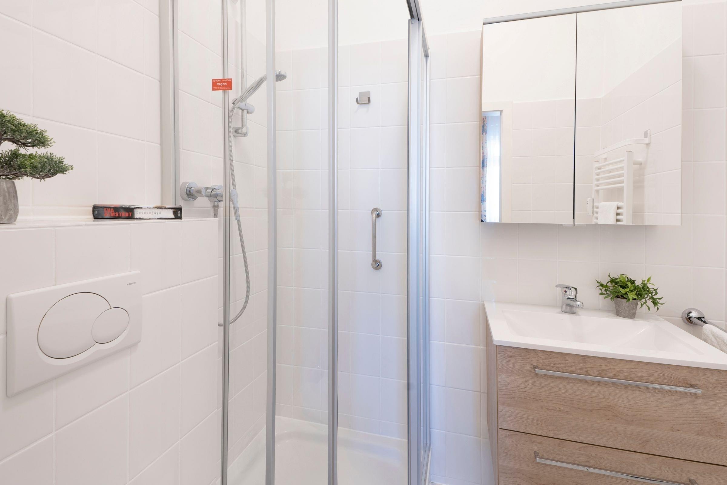 Herzlich Willkommen – ein unvergesslicher Urlaub an der Ostsee wartet auf Sie. Die moderne Ferienwohnung befindet sich in der gepflegten Wohnanlage Villa Hoffnung und empfängt Sie mit einem lichtdurchflutetet Wohn-/Ess-Bereich. Eine großzügige Polster-Garnitur mit Dreisitzer, Zweisitzer und einem Sessel lädt zu gemütlichen Abenden ein. Hier kann man sich wunderbar gegenübersitzen und gute Gespräche führen. Im hinteren Bereich befindet sich eine schicke Ess-Ecke, hinter der Sie den möblierten Süd-Balkon betreten können. Genießen Sie hier die Sonne und Ihre verdiente Ostsee-Zeit. Wie wäre es mit einem Glas Wein und einem spannenden Buch? Die offene moderne Küche mit Geschirrspüler ist in den Wohnbereich integriert. Ein kleiner Tresen dient als Raumteiler und sorgt für eine gemütliche Atmosphäre. Die gute Ausstattung der Küche wird jeden Hobby-Koch zum Lächeln bringen. Herrliche Nächte verbringen Sie in den beiden Schlafräumen: Ein Zimmer verfügt über ein bequemes Doppelbett (ca. 2x 80x200 cm), im zweiten Zimmer steht ein Einzelbett (ca. 90x200 cm) zur Verfügung. Zum Verdunkeln der Schlafräume sind Rollläden vorhanden. Das helle und freundliche Duschbad garantiert einen guten Start in den Tag.