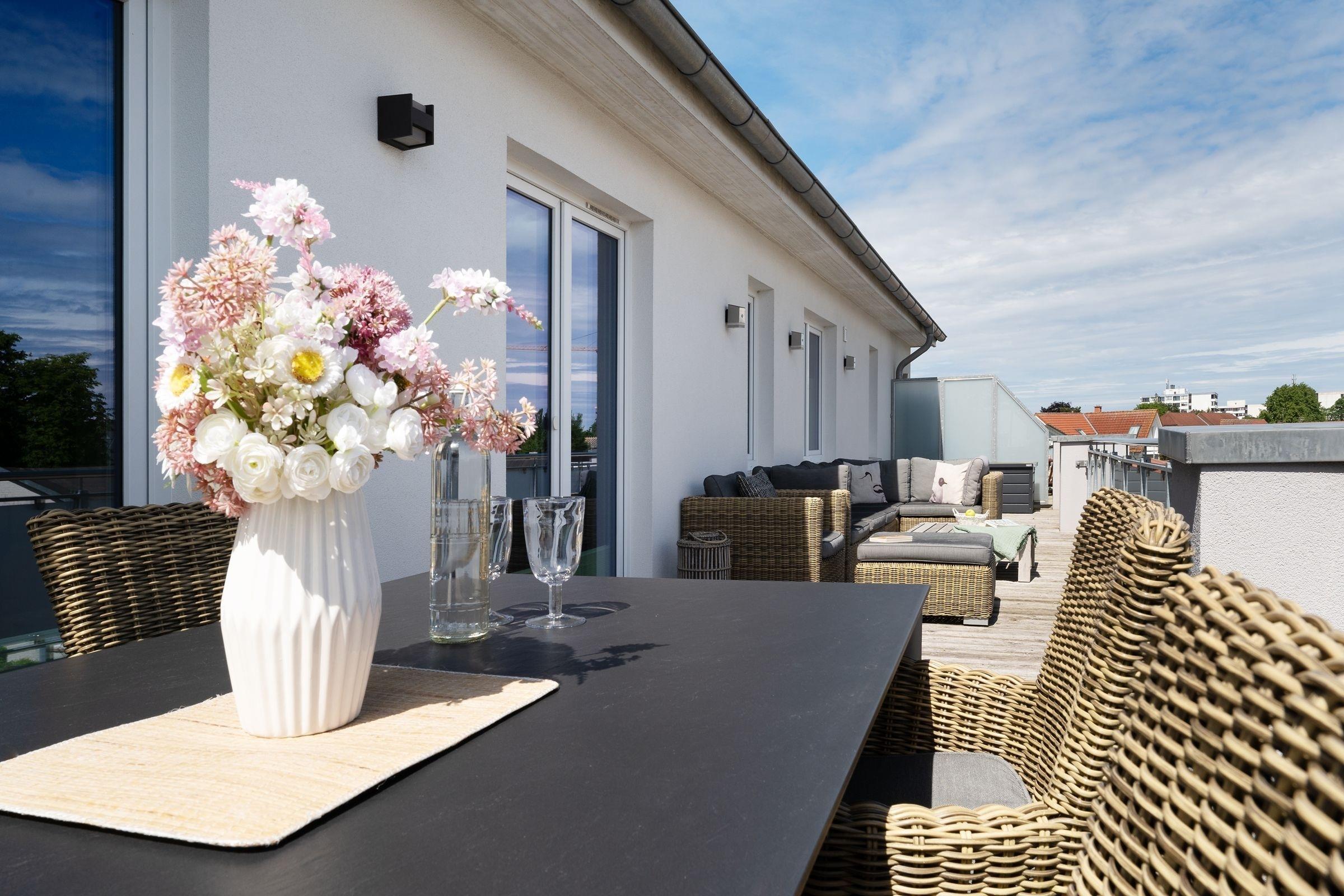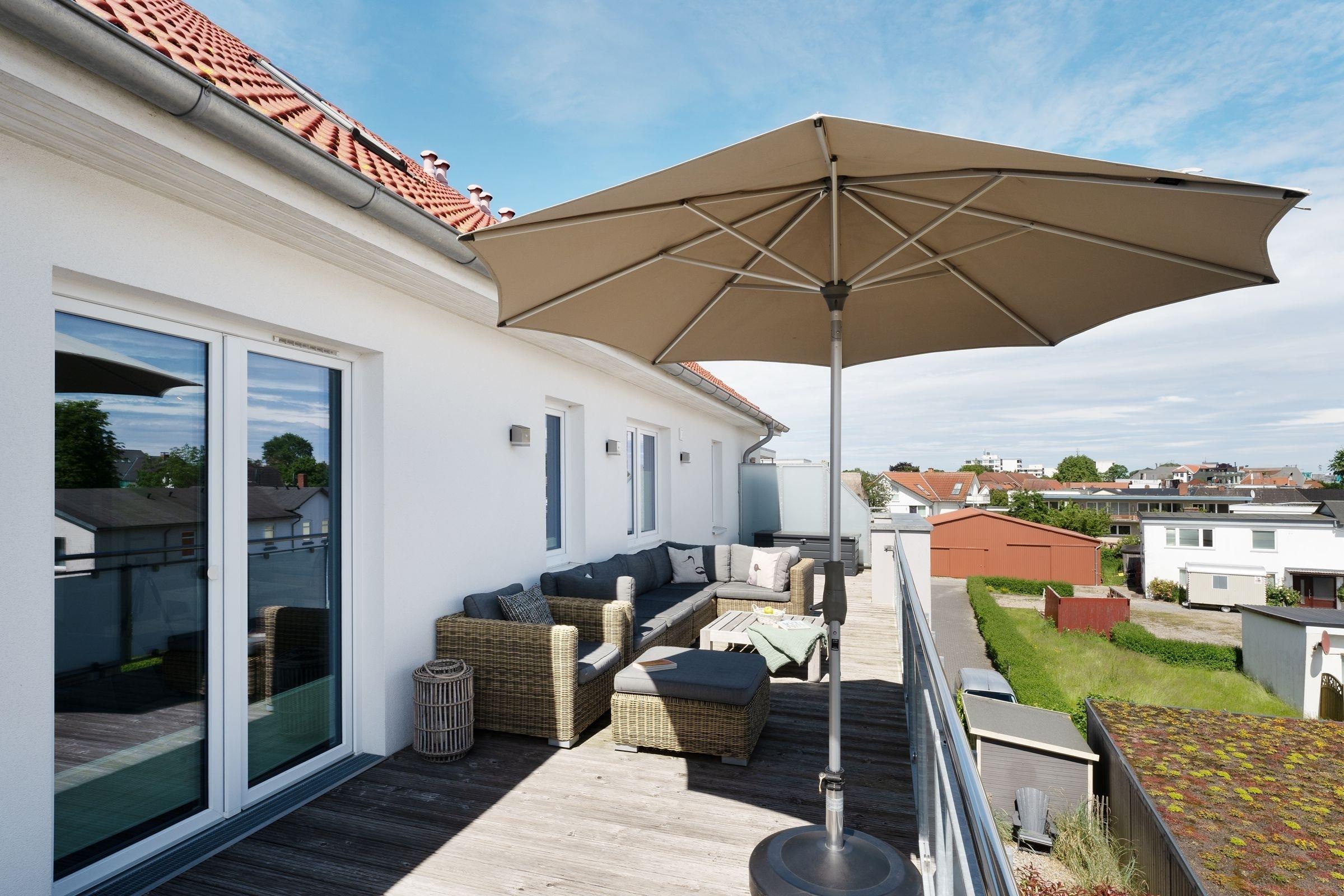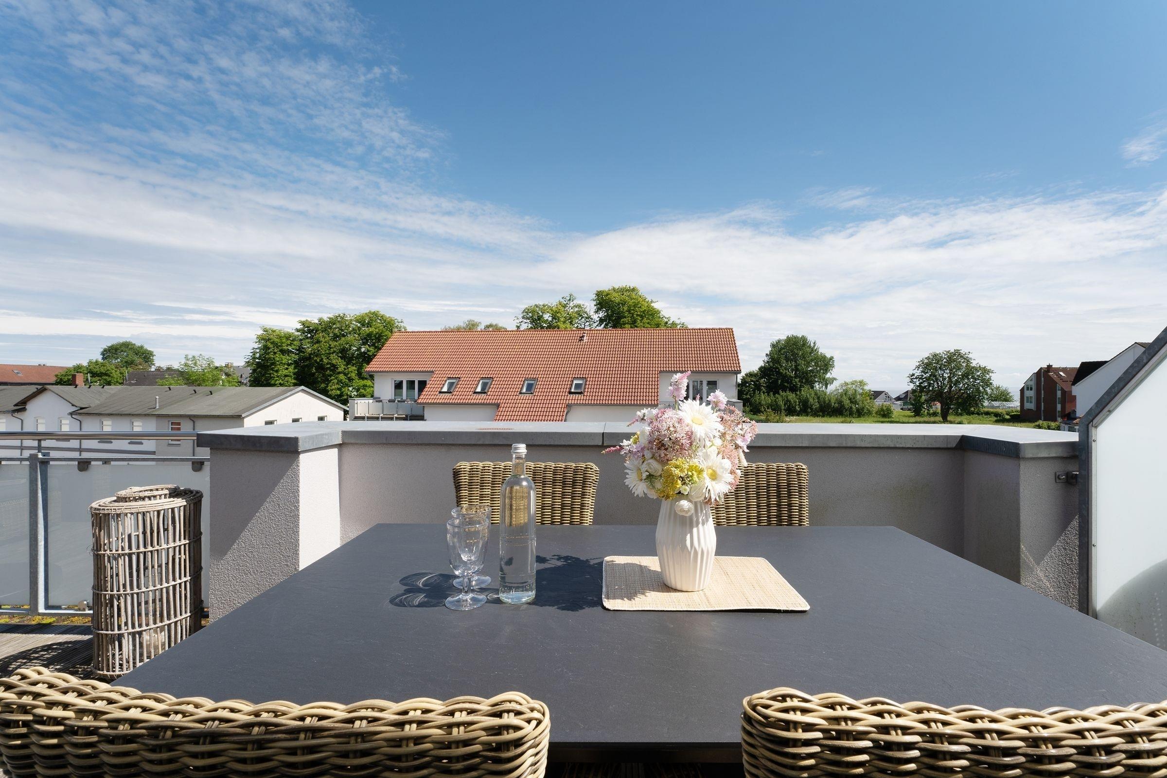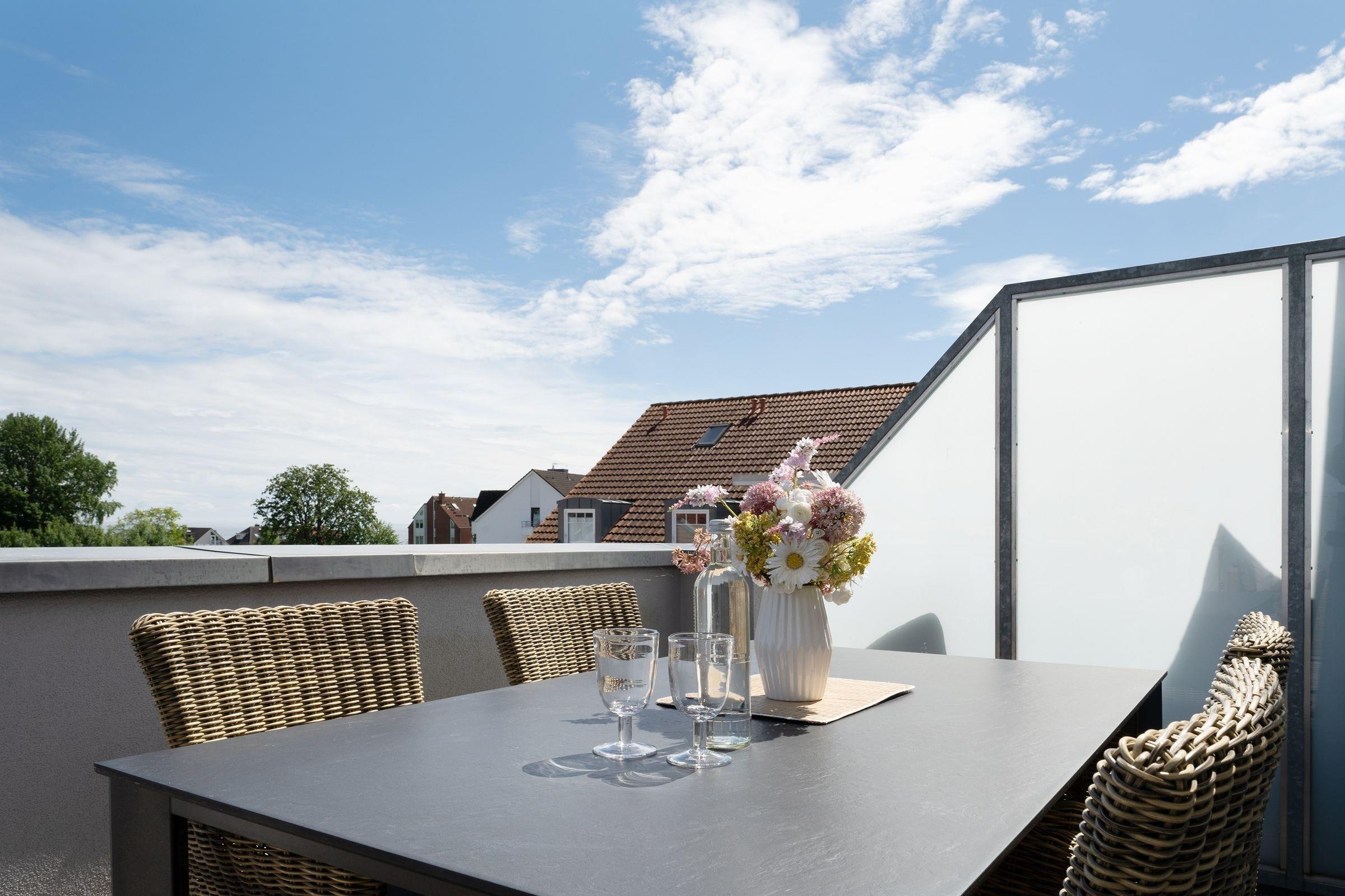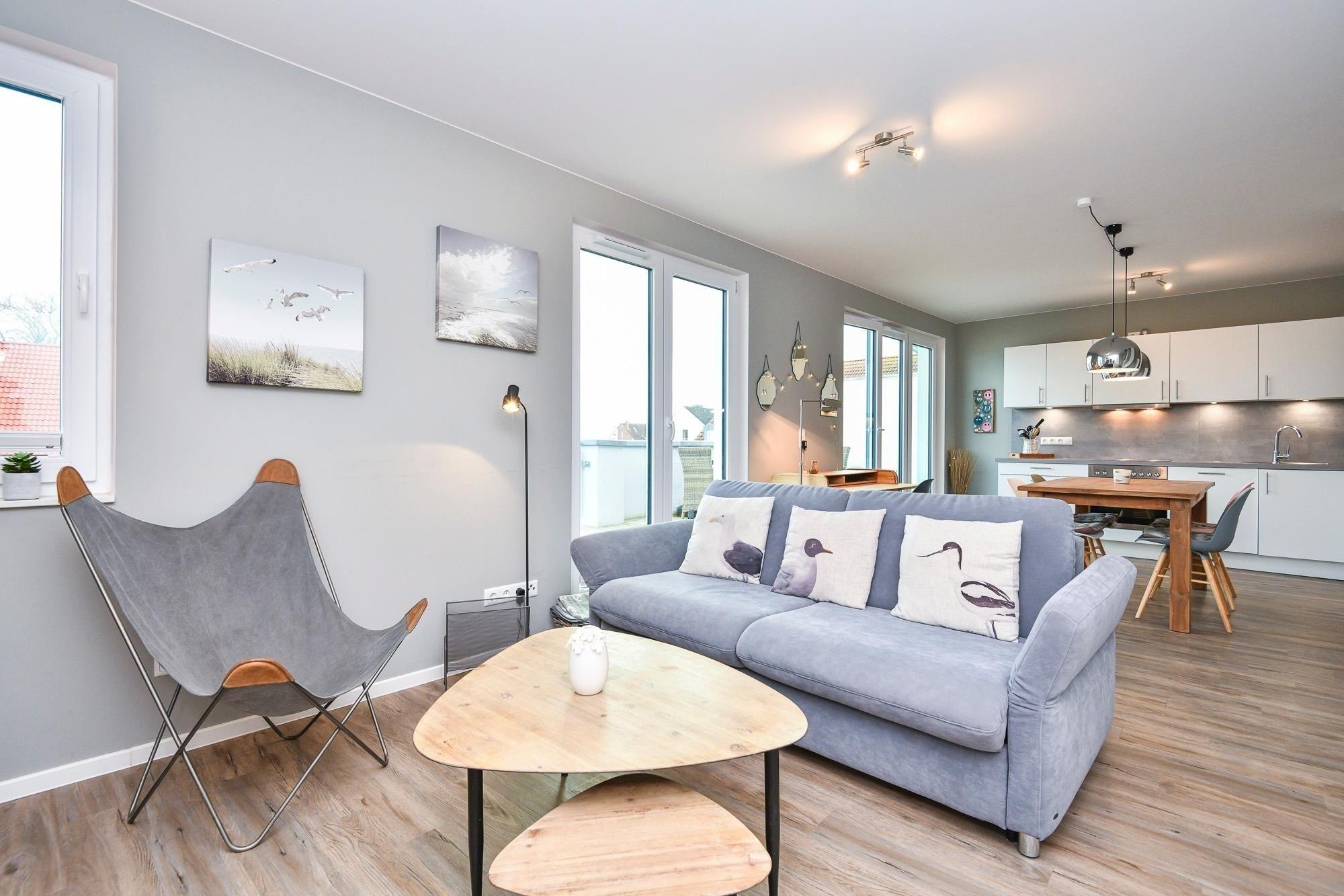 Diese exklusive 3-Zimmer-Ferienwohnung über 2 Etagen umfasst eine Wohnfläche von ca. 50 m² und bietet mit einer großen Balkonterrasse mit saisonalem Ostseeblick ausreichend Platz und Komfort für bis zu 5 Personen.