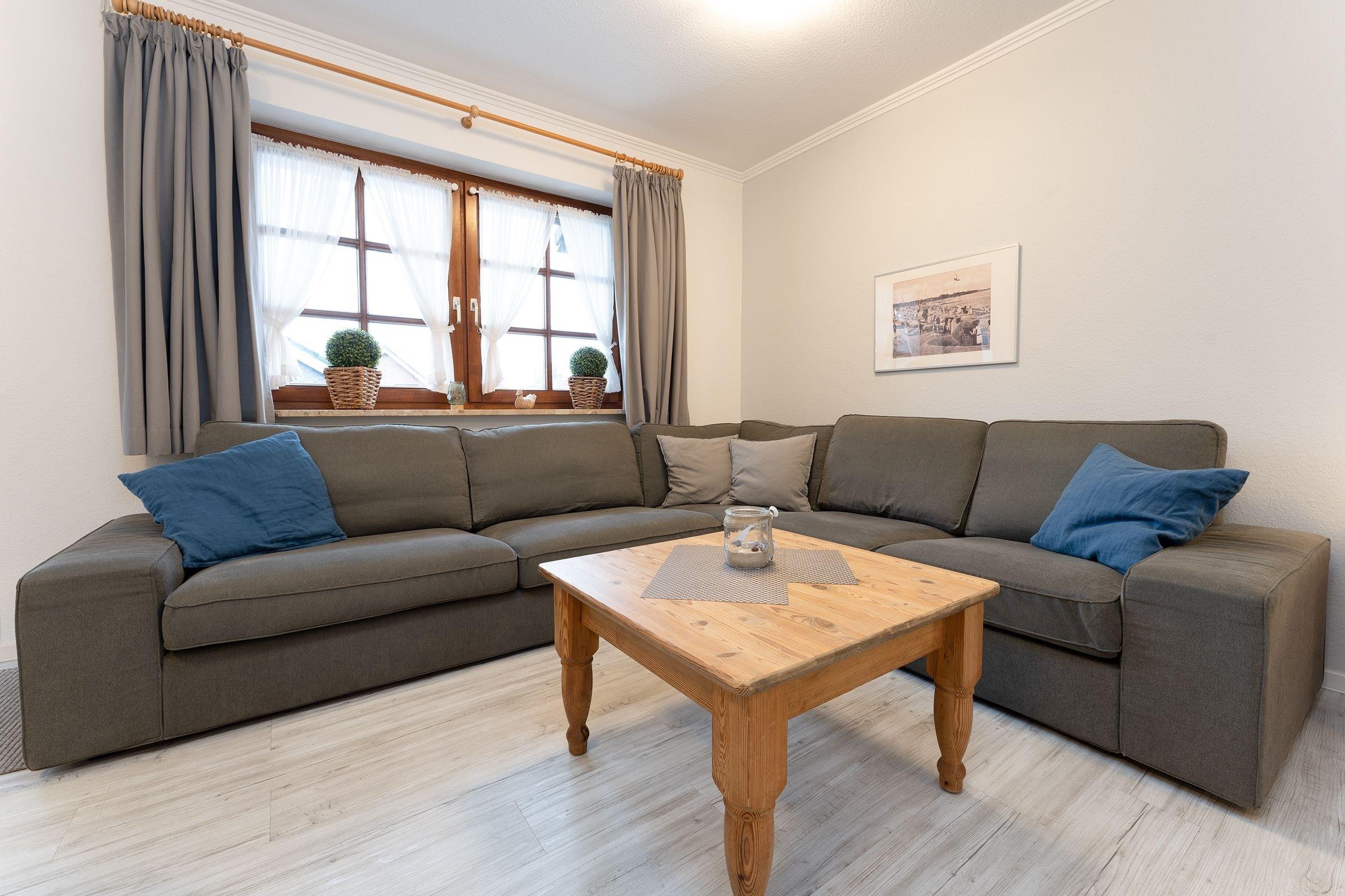 Modern, gemütlich und hochwertig – so präsentiert sich diese liebevoll eingerichtete Ferienwohnung. Im Wohnbereich können Sie herrlich auf der großen Sofalandschaft entspannen oder bequem in der Essecke verweilen. Auch der möblierte Südbalkon lädt zum Relaxen ein, genießen Sie hier Ihre Auszeit in der Sonne. Die moderne Küche mit Spülmaschine ist zum Wohnbereich hin offen gestaltet und gut ausgestattet. Hier können Sie nach Herzenslust Ihre Speisen zubereiten und anschließend genießen. Eine wundervolle Nacht versprechen die beiden Schlafzimmer: Eins ist mit einem Doppelbett (180x200 cm) und einem Kleiderschrank ausgestattet. Das andere verfügt über zwei Einzelbetten (90x200 cm und 90x170 cm) und einen Kleiderschrank. Das gepflegte Bad ist hell gefliest.