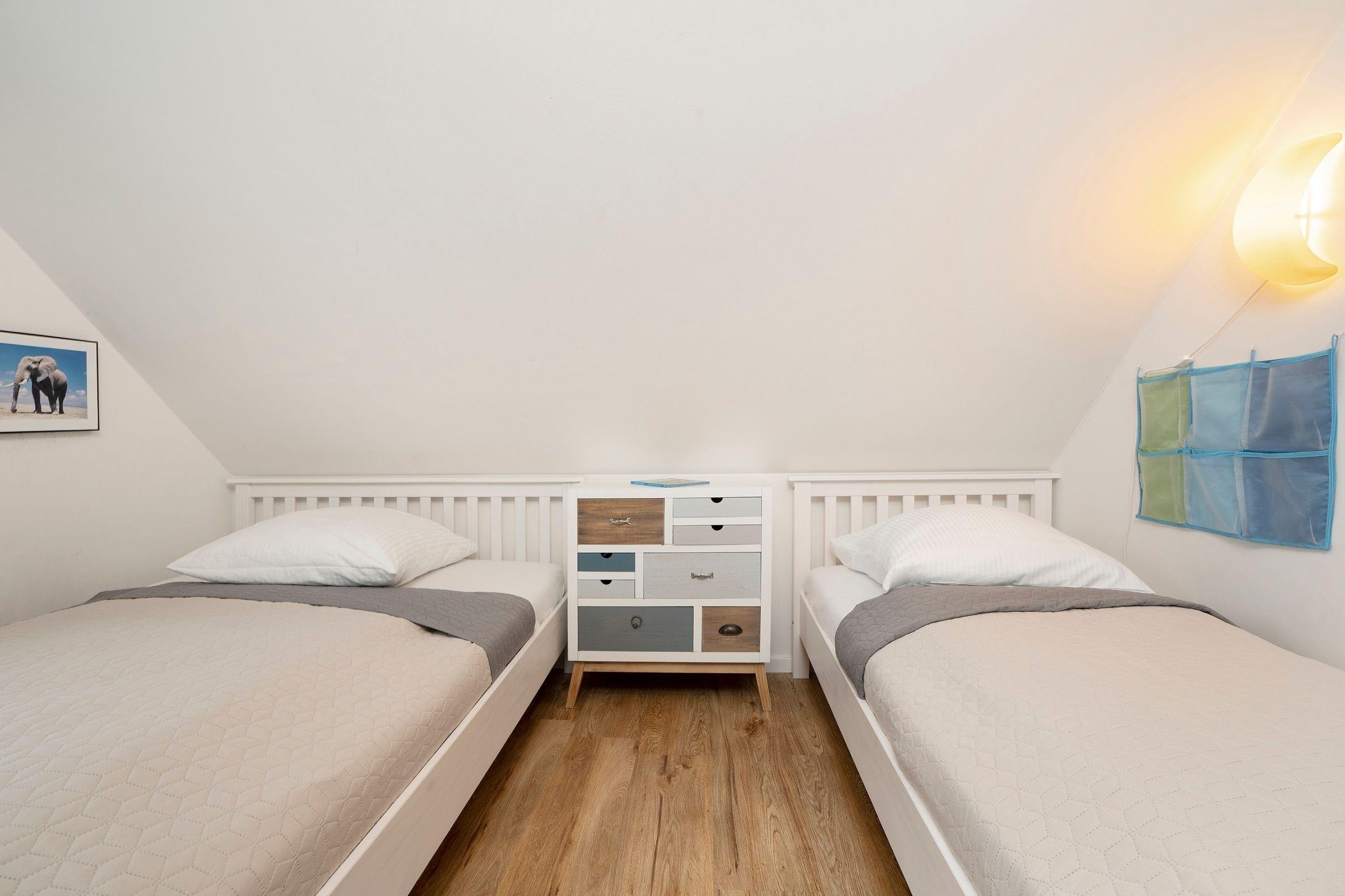 Schlafzimmer 2: 1 kleines Doppelbett (140x200 cm), 1 Einzelbett (90x200cm), Verdunkelungsmöglichkeit