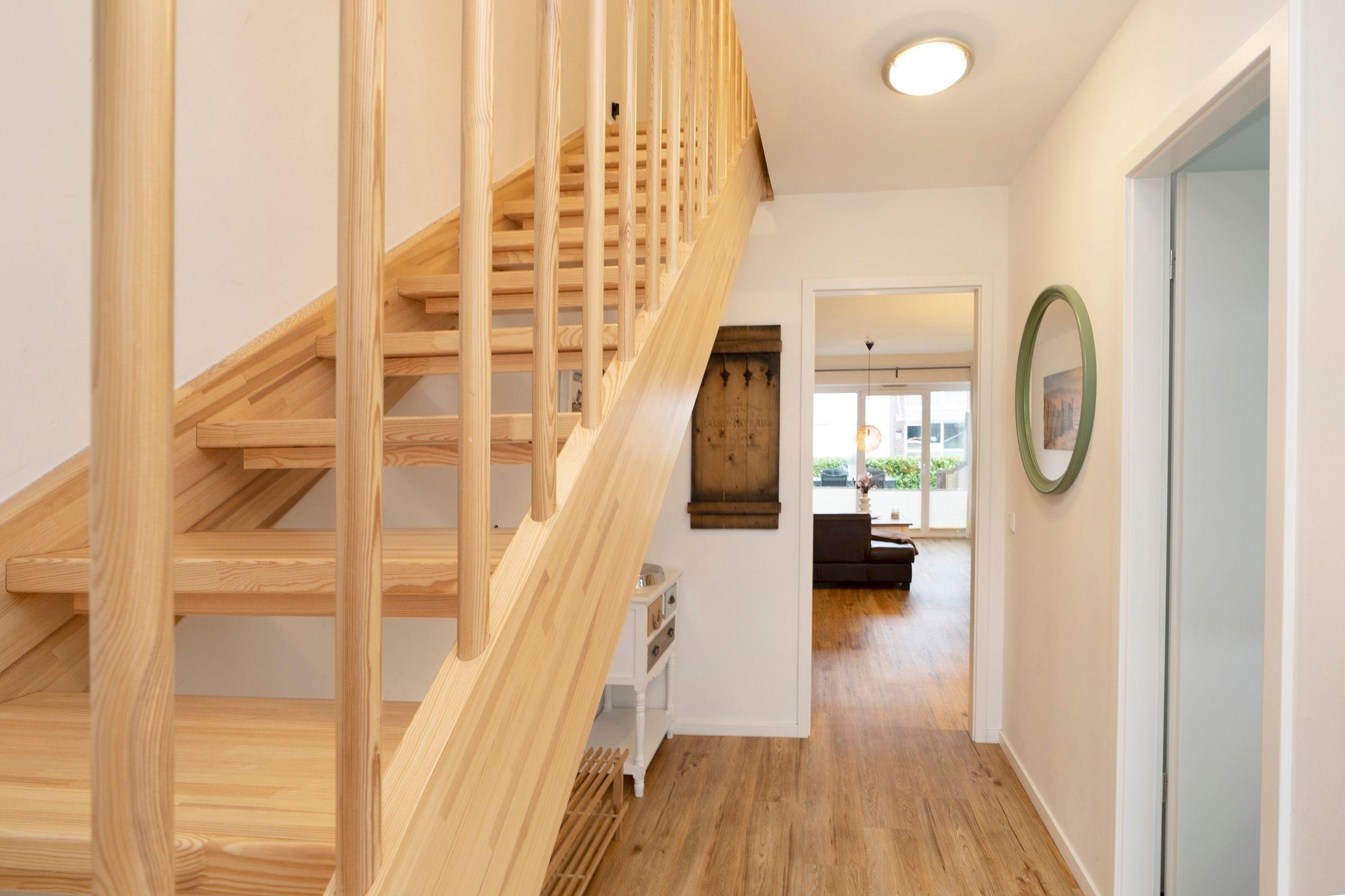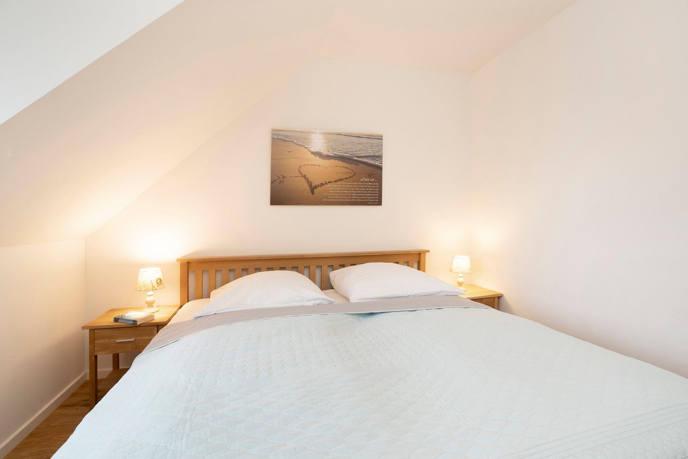 Die Doppelhaushälfte liegt in der 2. Reihe zur Waldstraße und bietet Ihnen im Erdgeschoss ein lichtdurchflutetes Wohnzimmer inklusive gemütlichem Essbereich und integrierter Küche mit Backofen, 4-Platten-Ceranfeld, Mikrowelle, Geschirrspüler, Kühlschrank, Kaffeemaschine, Toaster etc. Zur weiteren Ausstattung gehören Flachbild-TV/DVD-Player/Soundanlage (Mp3, CD, Radio - Iphone, Ipad, Smartphone geeignet), kostenloses WLAN. Genießen Sie Ihre Urlaubsstunden auf der großen Südterrasse mit Strandkorb. Ein geräumiger Flur mit Garderobe, ein Gäste-WC sowie ein Abstellraum mit Waschmaschine und Trockner. Im Obergeschoss erwartet Sie ein großzügiges Schlafzimmer mit Doppelbett (ca. 180x200 cm) und TV sowie ein Kinderzimmer mit 2 Einzelbetten (Bett 1: 140x200cm, Bett 2: 90x200cm). Das Duschbad mit WC ist mit einer ebenerdigen Dusche ausgestattet. Hochstuhl, Kinderreisebettchen sowie Bollerwagen runden das Angebot ab.
